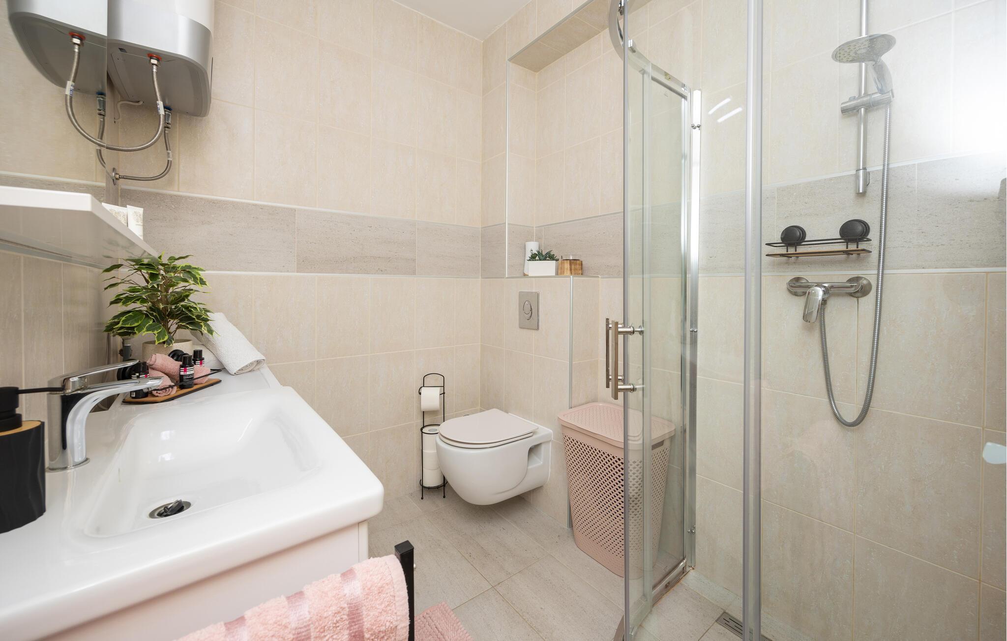 Badezimmer 4m2 (nr. 1) - WC. Warmes und kaltes Wasser. Dusche