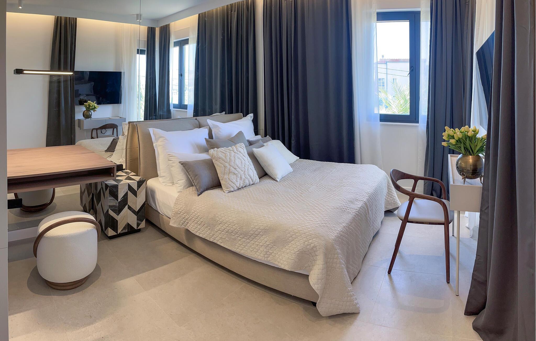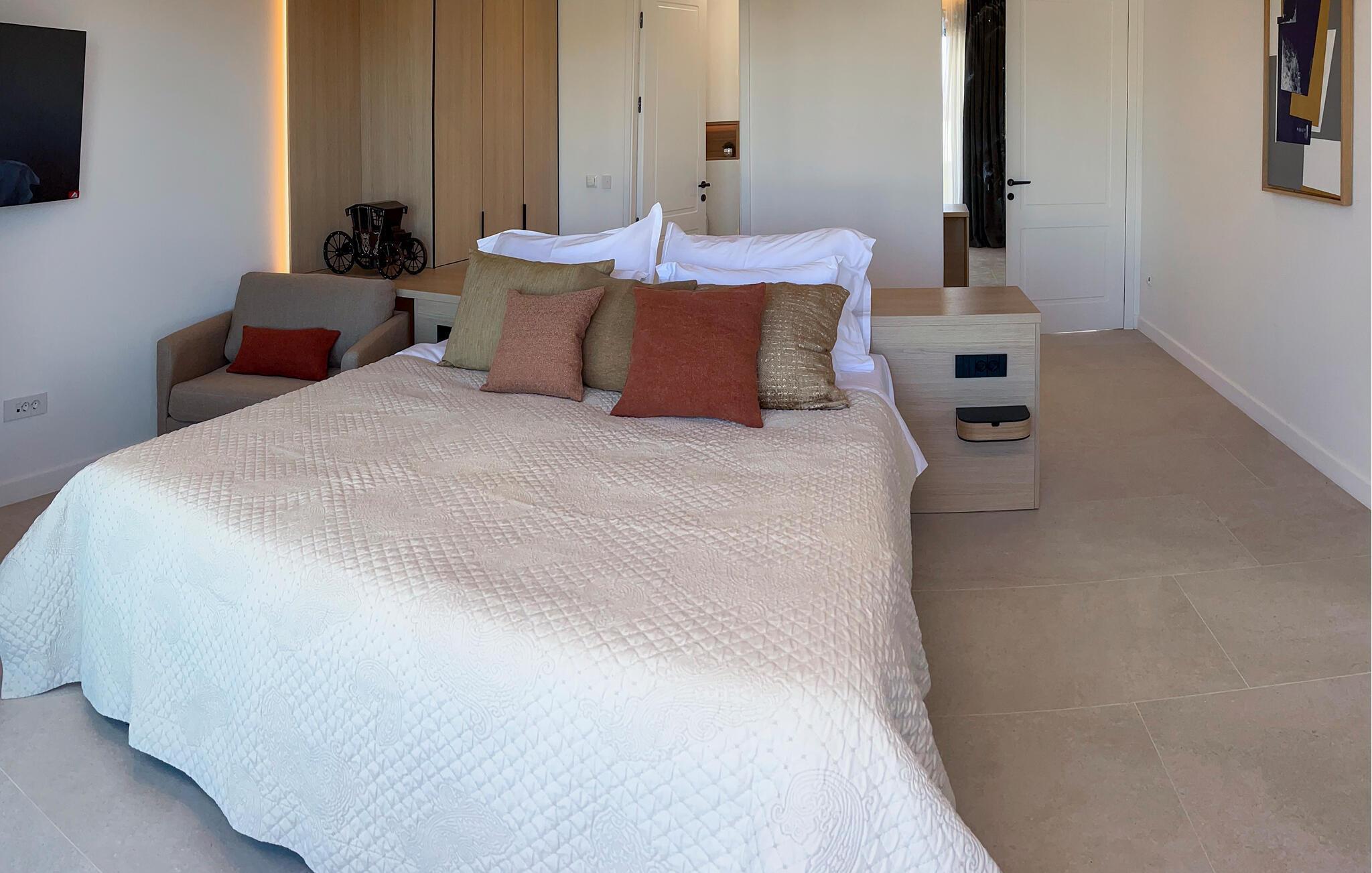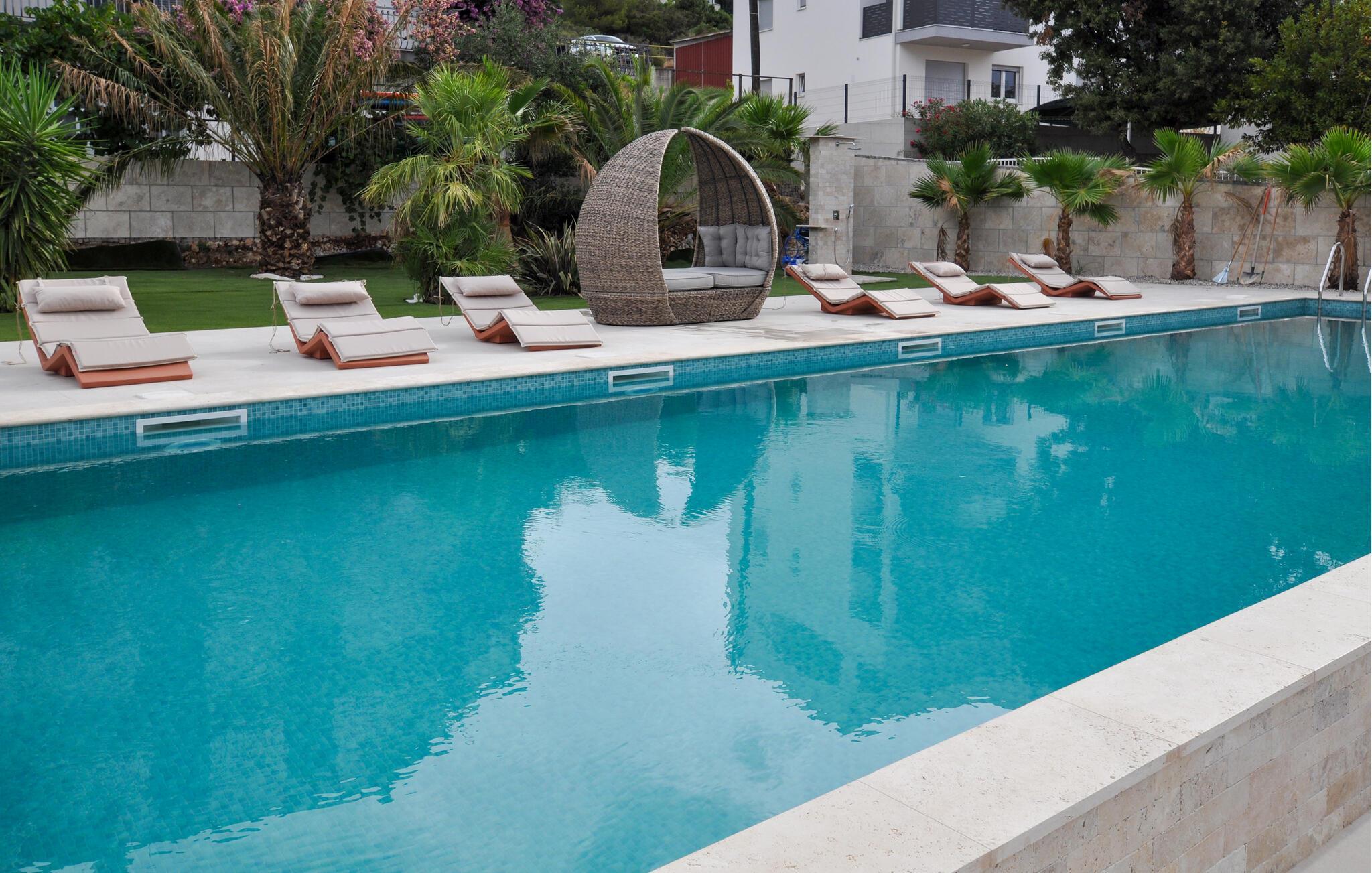 Draußen erwartet Sie ein herrlicher, sonnenverwöhnter Pool, in dem Sie morgens gemächlich Ihre Bahnen ziehen können. Lassen Sie die mediterrane Atmosphäre bei einem Festmahl auf der Terrasse auf sich wirken, gönnen Sie sich wohlige Momente im Pool und erholsame Siestas im Daybed.