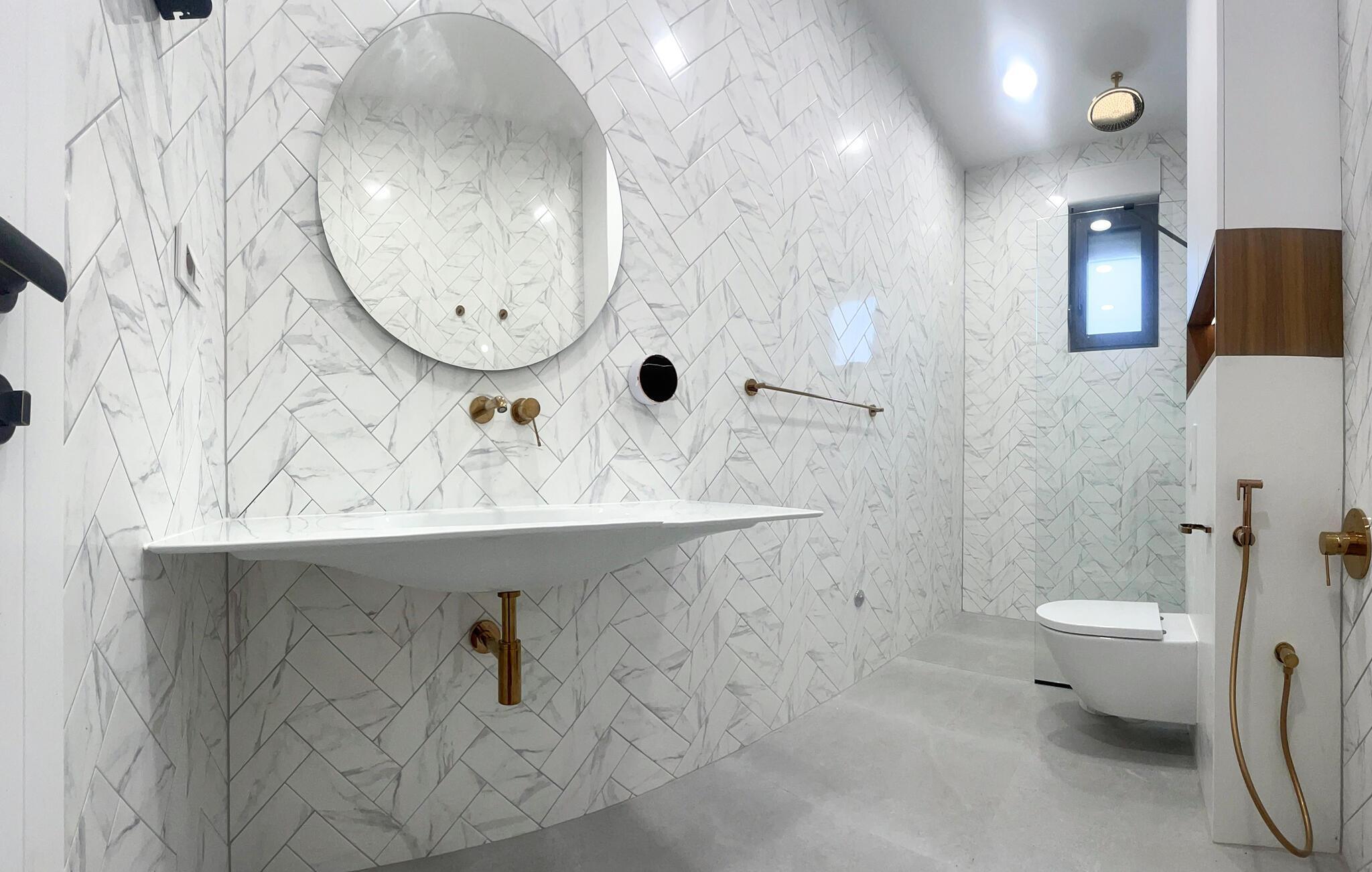 Badezimmer 6m2 (nr. 1) - WC. Warmes und kaltes Wasser. Dusche und Badewanne