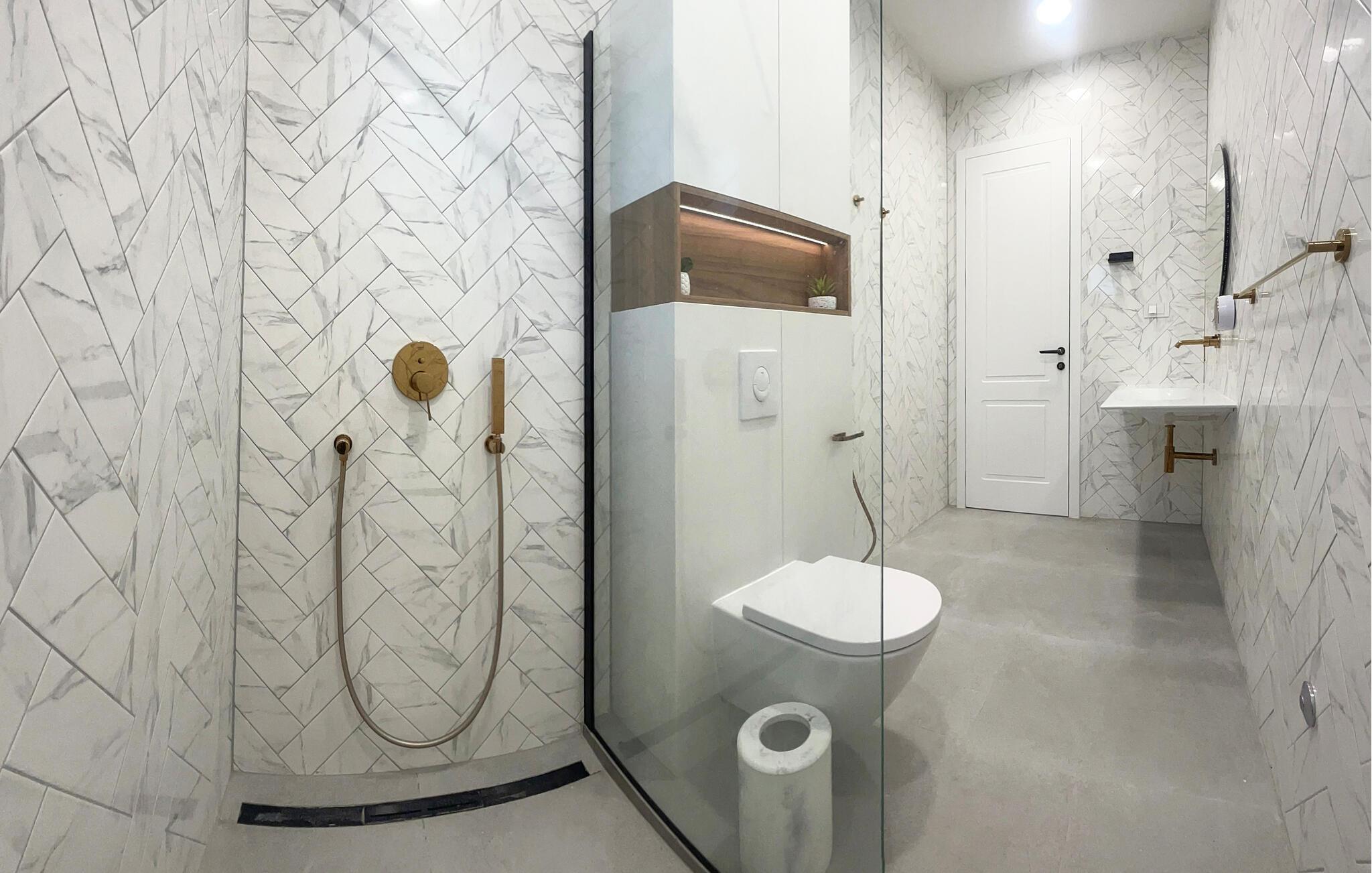 Badezimmer 7m2 (nr. 3) - WC. Warmes und kaltes Wasser. Dusche