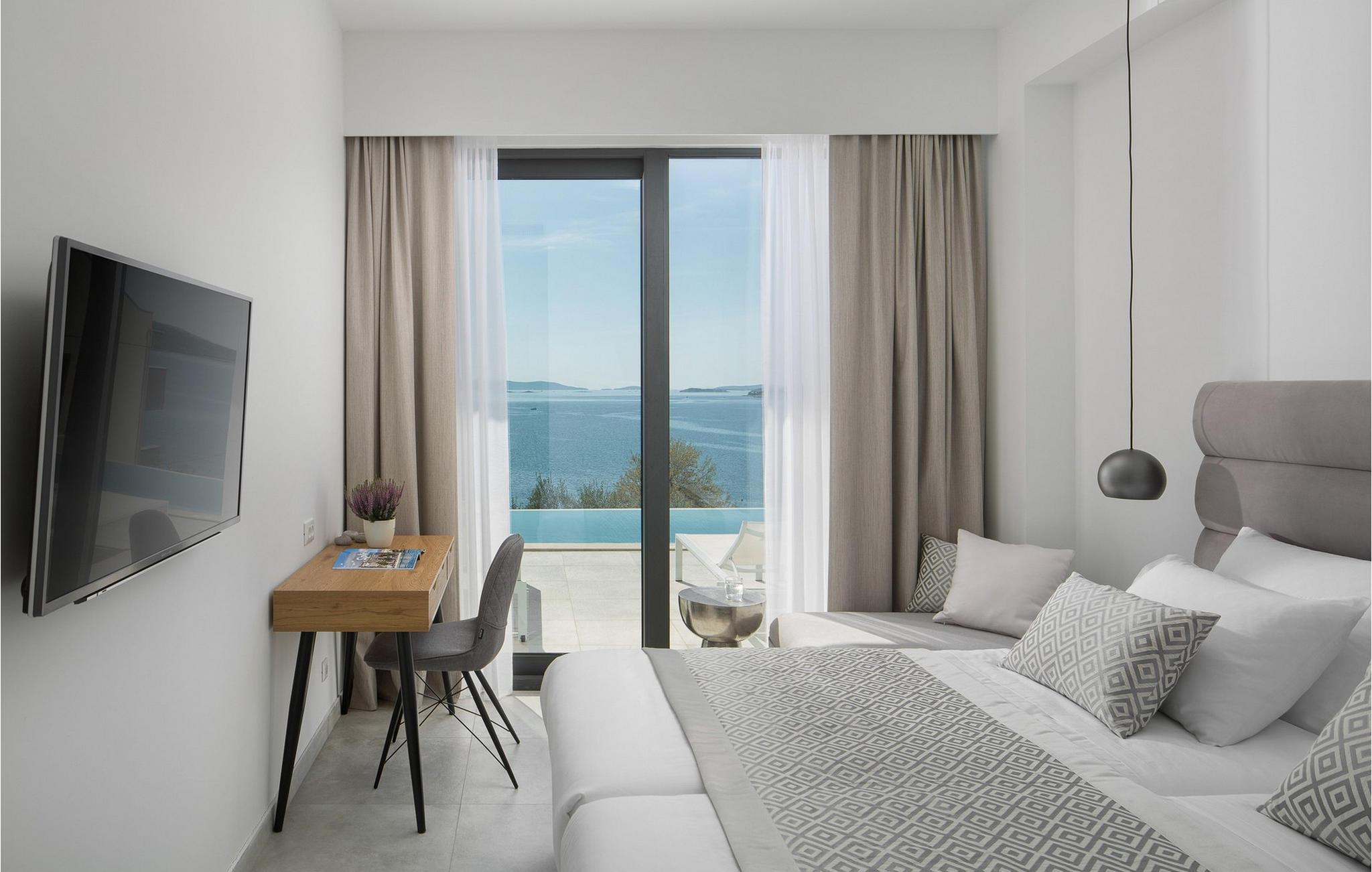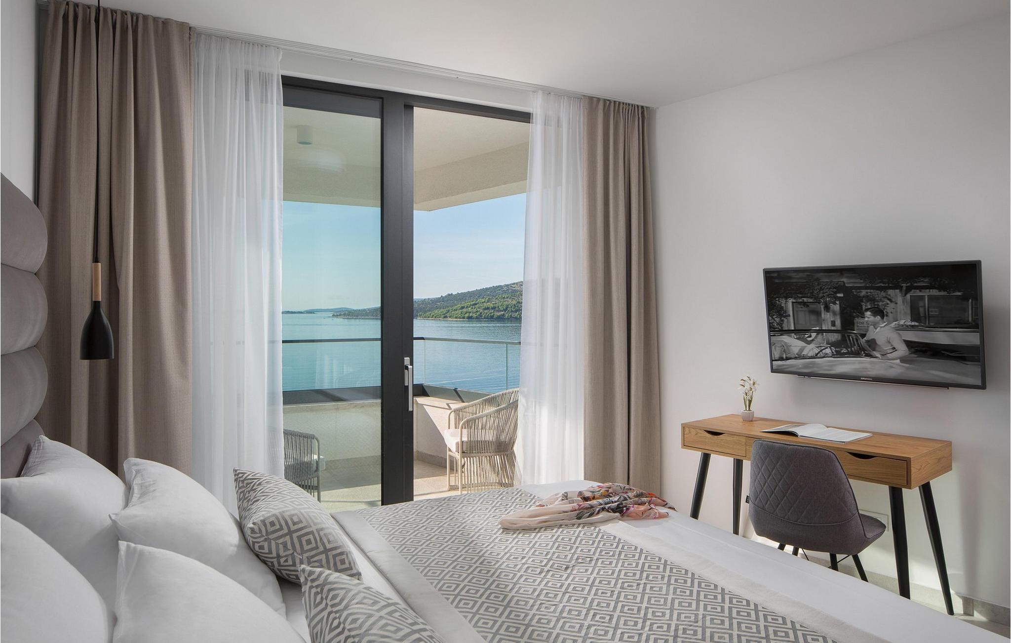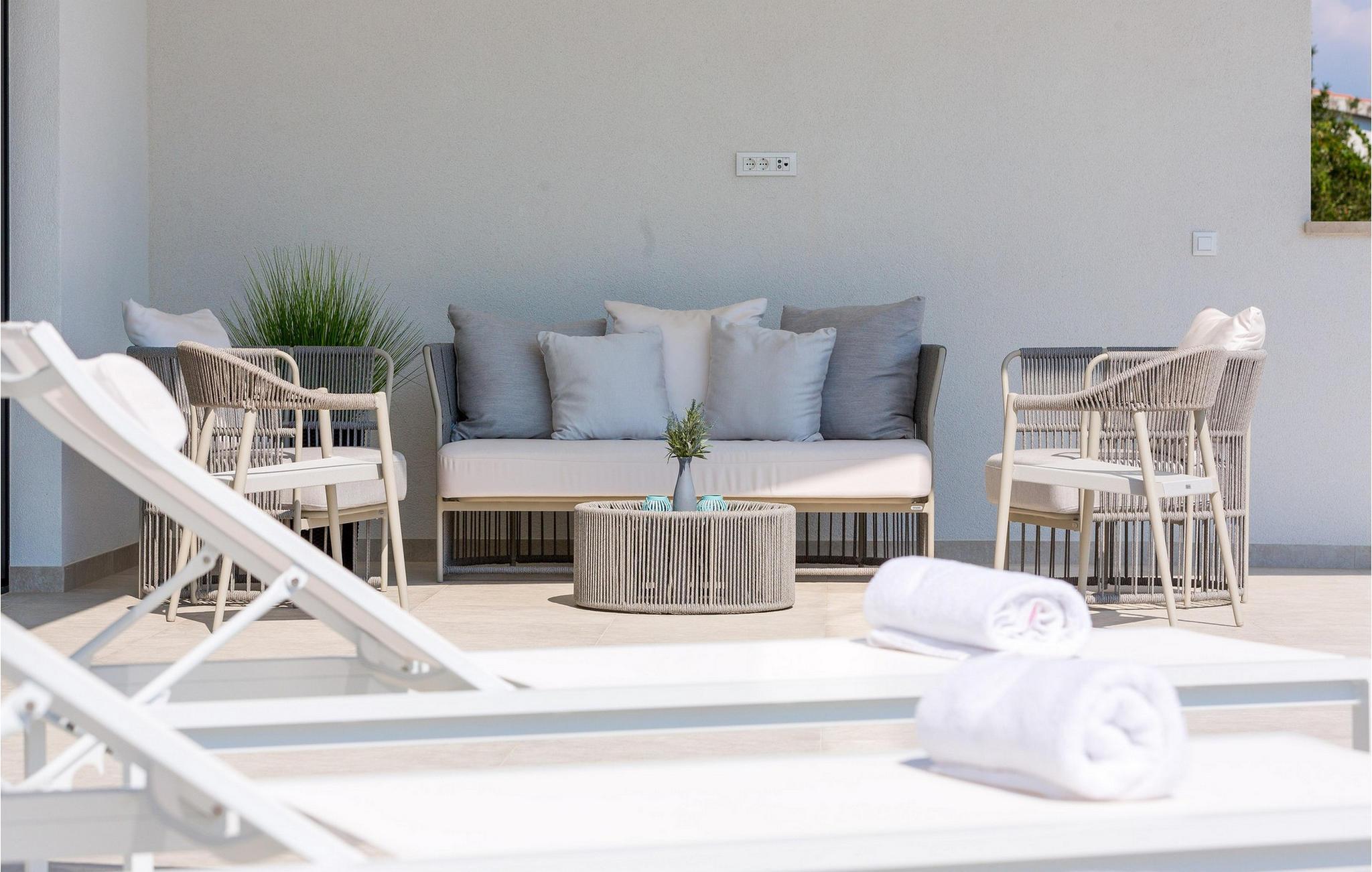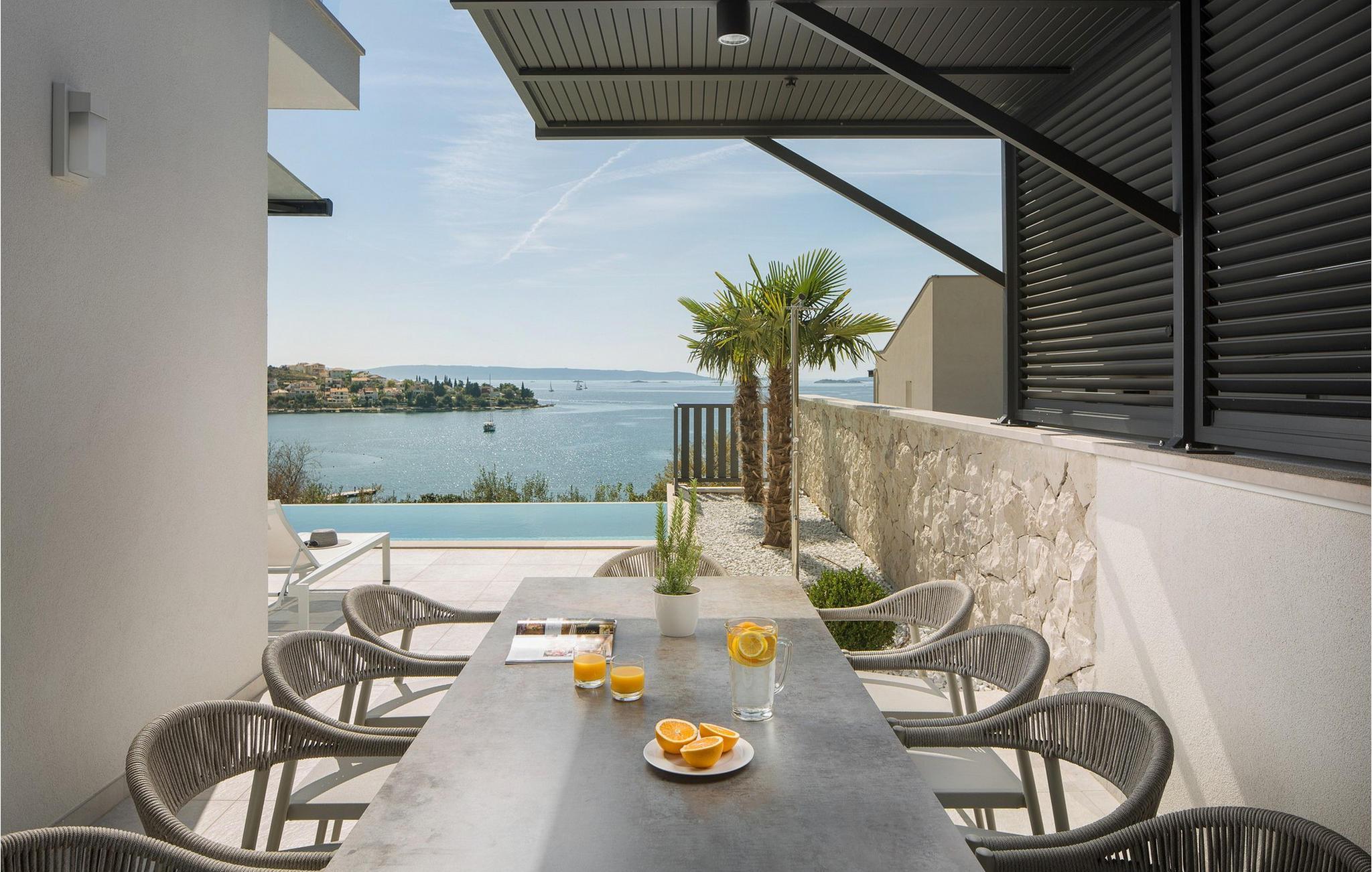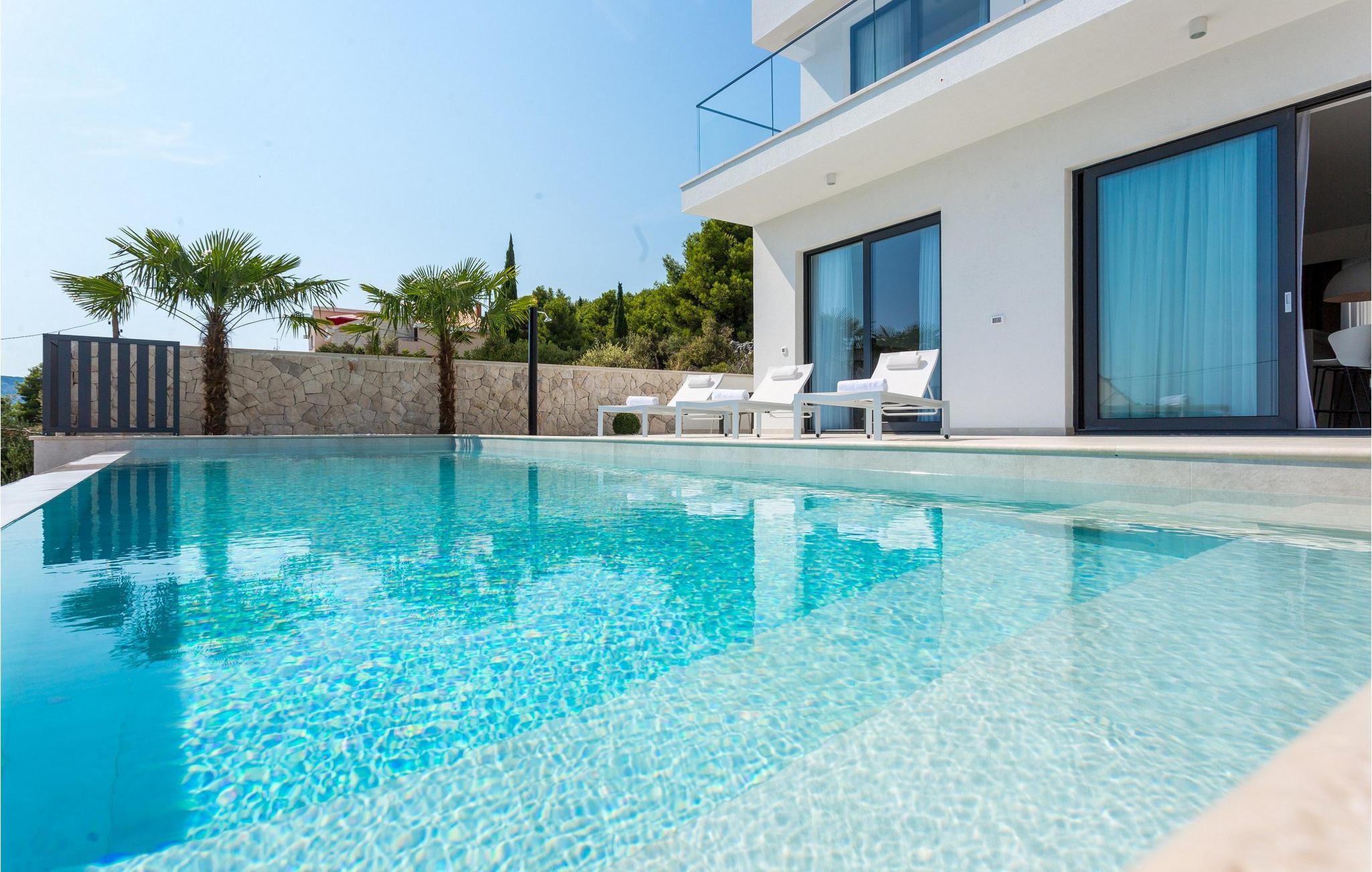 Die moderne Villa Alba Seget bietet Ihnen lichtdurchflutete Räume, eine hochwertige Küche und ein stilvoll eingerichtetes Wohnzimmer mit Blick auf das glitzernde Meer. Die geschmackvolle Einrichtung, gepaart mit modernster Ausstattung, sorgt für ein rundum gelungenes Urlaubserlebnis. Entdecken Sie auf zwei Etagen die hochwertig ausgestatteten Räume in hellen Farben. Alle Schlafzimmer verfügen über eigene Badezimmer, sodass Sie Ihre Nachtruhe und Privatsphäre genießen können. Im Gegensatz bietet Ihnen die Villa mit PlayStation sowie einem erstklassigen Fitnessbereich Unterhaltung und Aktivität.