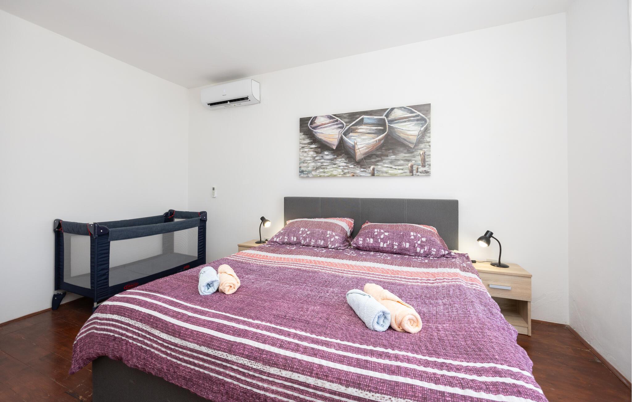 Verbringen Sie Ihren Urlaub in diesem Ferienhaus mit Swimmingpool. Es besteht aus vier Schlafzimmern, Küche, Essbereich mit Wohnzimmer, sowie zwei Badezimmern. Vom Balkon im ersten Stock haben Sie teilweise Meerblick. Die Unterkunft hat eine ruhige Lage in der Gemeinde Vinisce, wo Sie vom Vogelgezwitscher geweckt werden ungeben von Eichenbäumen. Wenn Sie kleine Kinder haben, liegt ein geeigneter Kiesstrand in etwa 300 m Entfernung. Ljubljeva ist eine kleine Bucht neben Vinisce und man kann sagen, dass es sich hier um ein kleines Paradies handelt. Wenn Sie Zivilisation wünschen, machen Sie sich auf nach Trogir. Den Ort erreichen Sie in etwa einer halbstündigen Autofahrt.