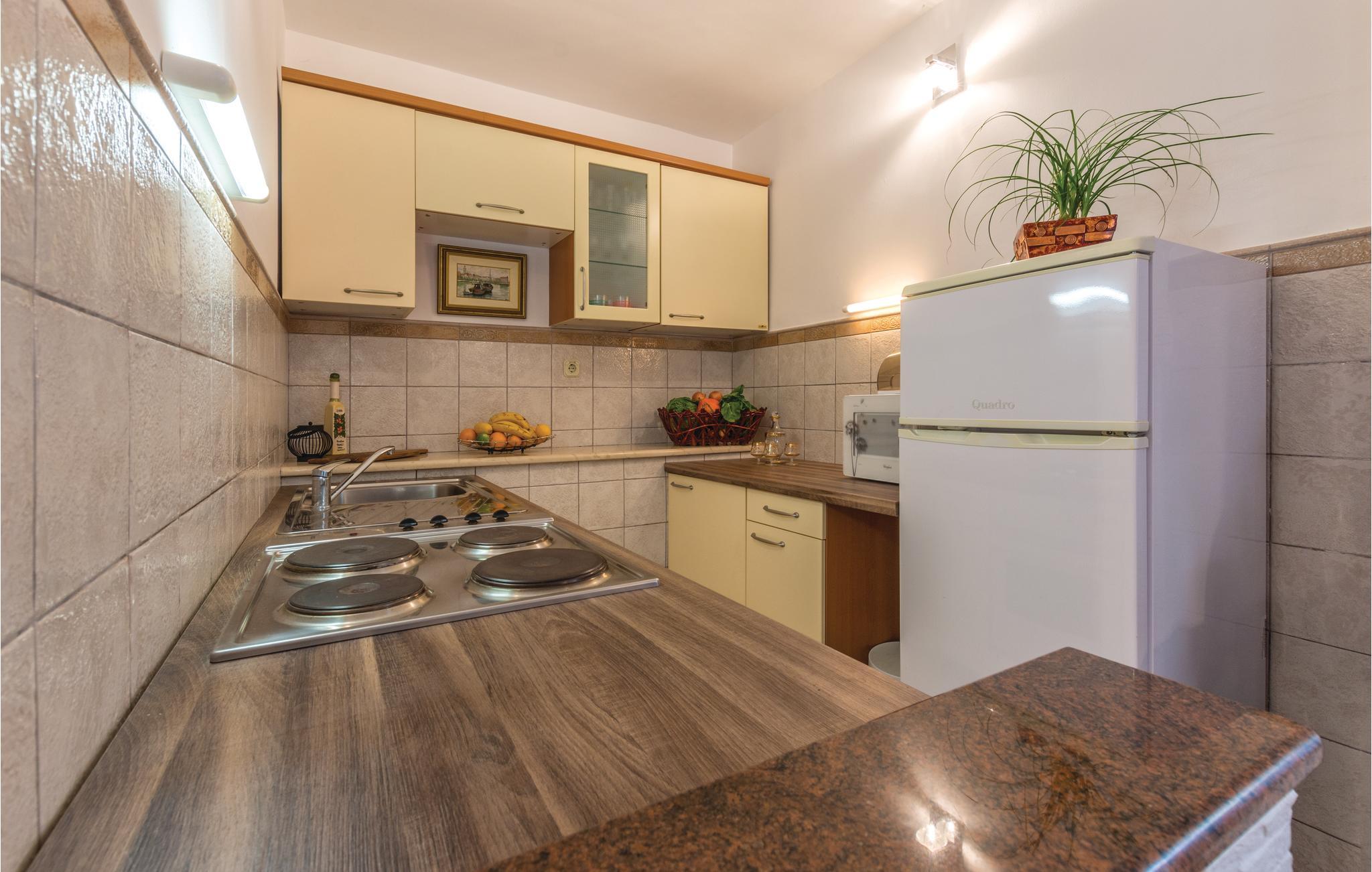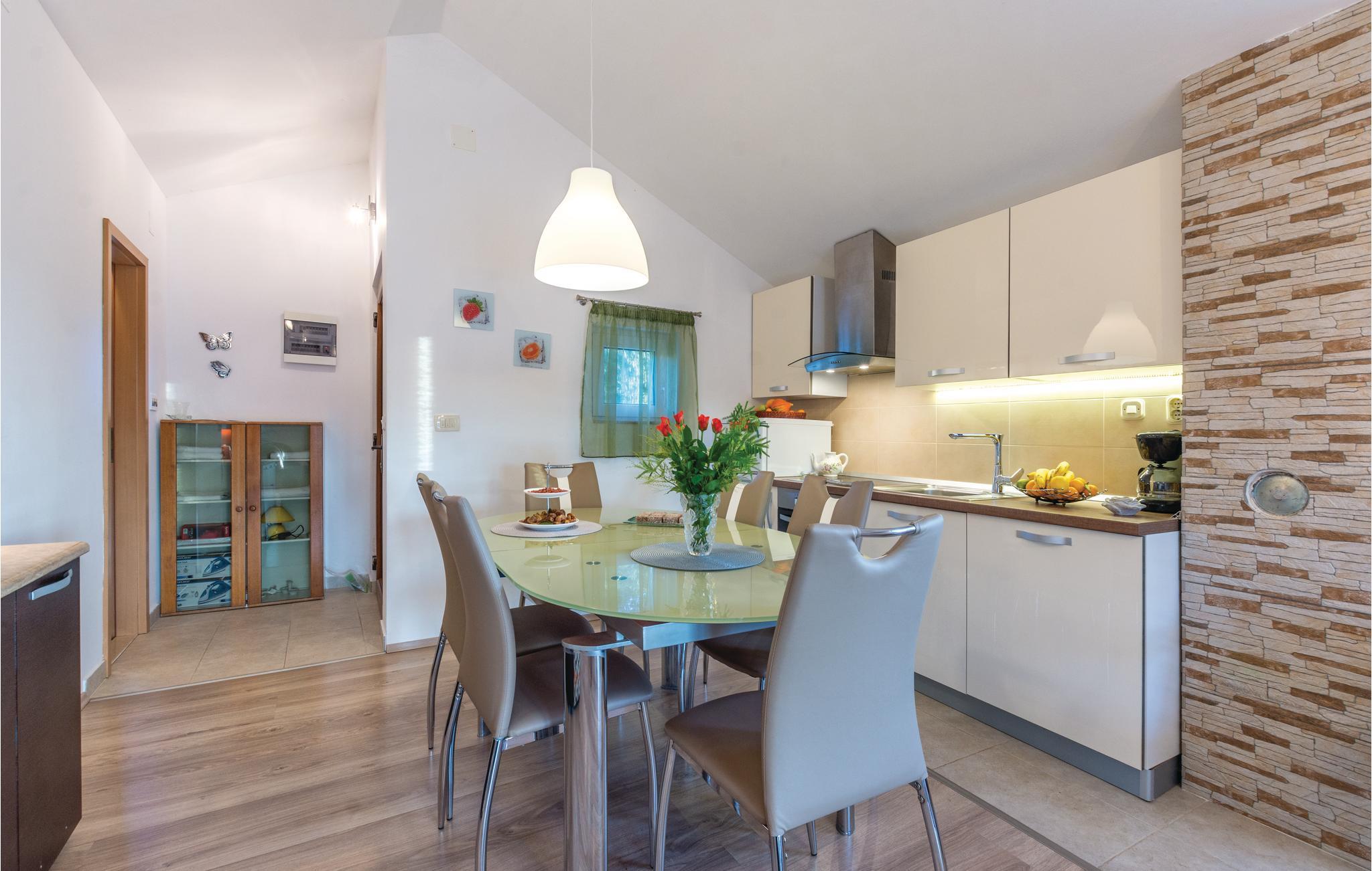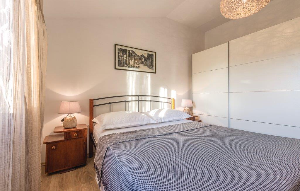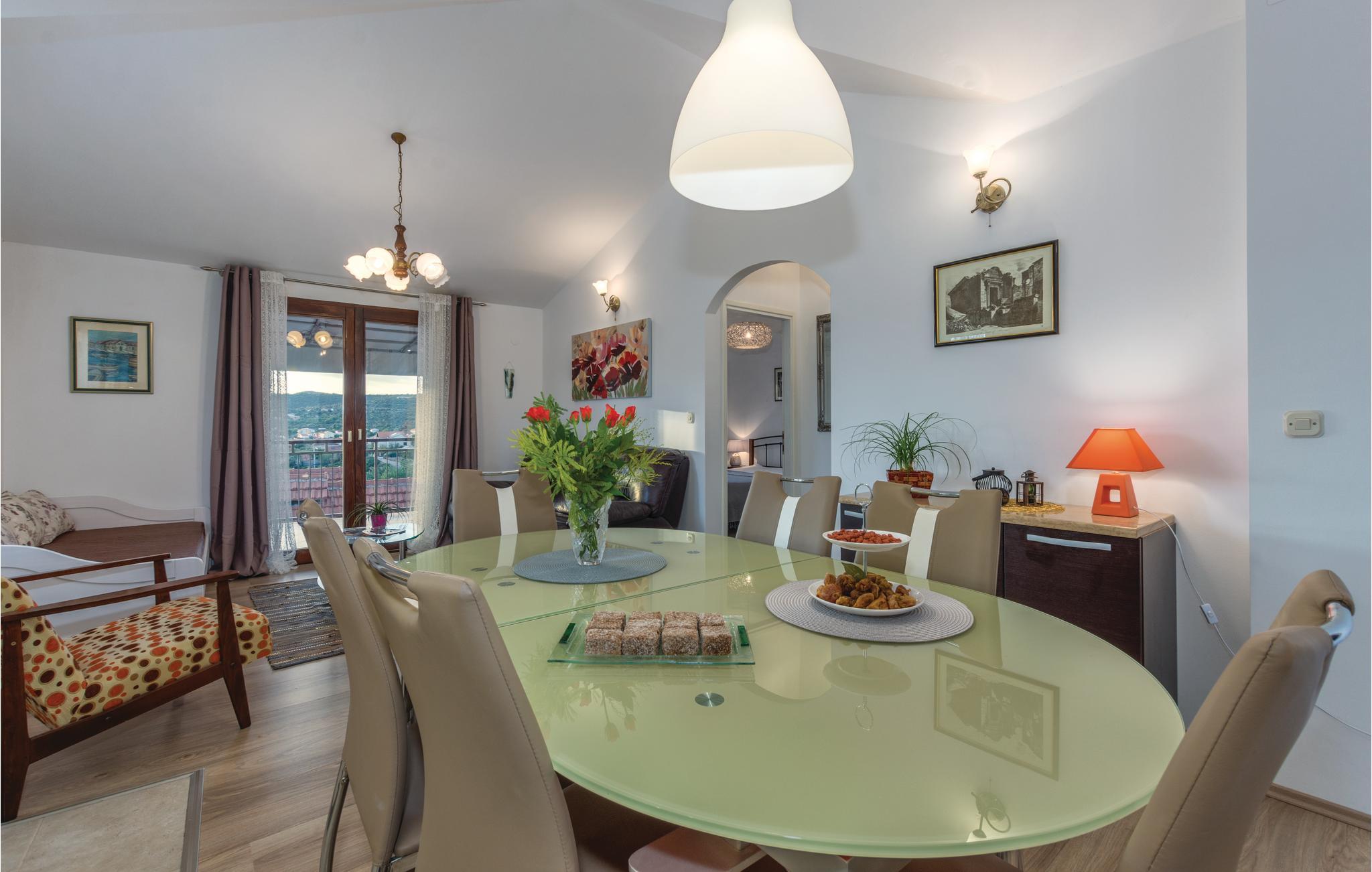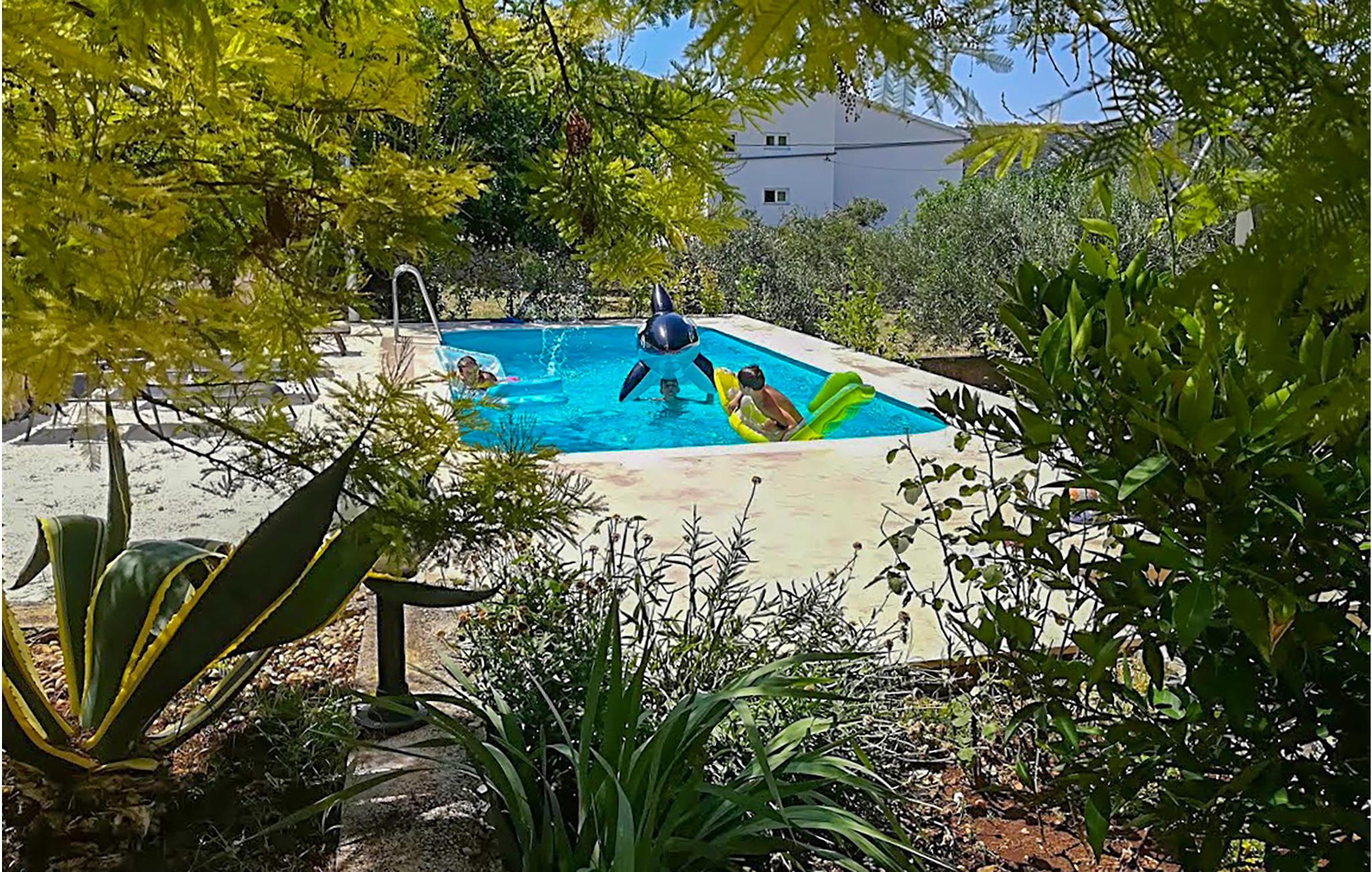 Dieses schöne Ferienhaus mit Pool besteht aus zwei Wohnung im Erd- und Obergeschoss, wobei die Obergeschosswohnung über Außentreppen erreichbar ist. Jede Wohnung verfügt über ein Wohnzimmer und Küche, ein Bad und zwei Schlafzimmer, wodurch diese Aufteilung für Familien und Paare geeignet ist, die einen erholsamen Urlaub zusammen verbringen möchten und trotzdem Ihre Privatsphäre bewahren können. Im Garten erwartet Sie eine überdachte Terrasse auf der Sie sich gemütlich von der Sommerhitze entspannen können. Der schöne Pool und die Sonnenterrasse liegen erhöht im Garten und sind über einige Stufen erreichbar. Zum Meer sowie den nächsten Kiesstrand gelangen Sie in wenigen Gehminuten. Nach ausgiebigen Schwimmen und Sonnen können Sie die Abende gemütlich in den örtlichen Restaurants und Konobas abklingen lassen. In der Umgebung lohnt sich auch ein Besuch der Altstadt von Trogir sowie ein Bummel durch die eindrucksvollen Straßen, die von historischen Gebäuden umgeben sind und die zur traumhaften Uferpromenade führen entlang der sich viele Bars und Restaurants befinden. Besonders zu empfehlen ist ein Besuch der Stadt Split, in der viele interessante Sommerveranstaltungen und Musikkonzerte stattfinden. Besichtigen Sie dabei den Diokletianpalast und die pulsierende Uferpromenade, die das Stadtzentrum bilden in dem sich ebenfalls zahlreiche Cafés, Bars und Restaurants befinden. Sehenswert sind auch die Nachbarstädte Rogoznica und Primošten.