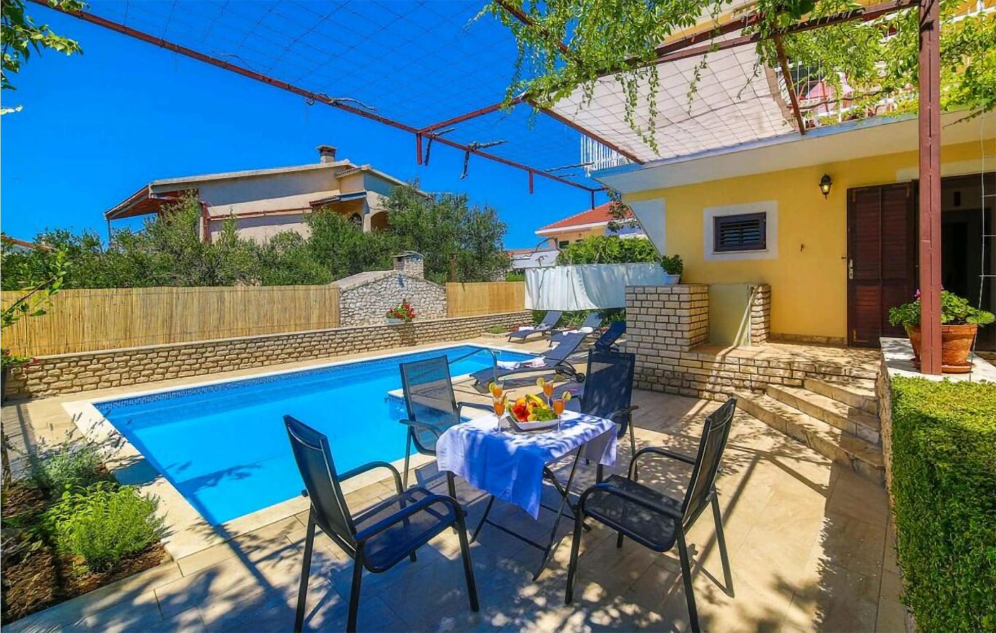 Unweit des Sandstrandes heißt Sie dieses praktische eingerichtete Ferienhaus mit Swimmingpool willkommen.