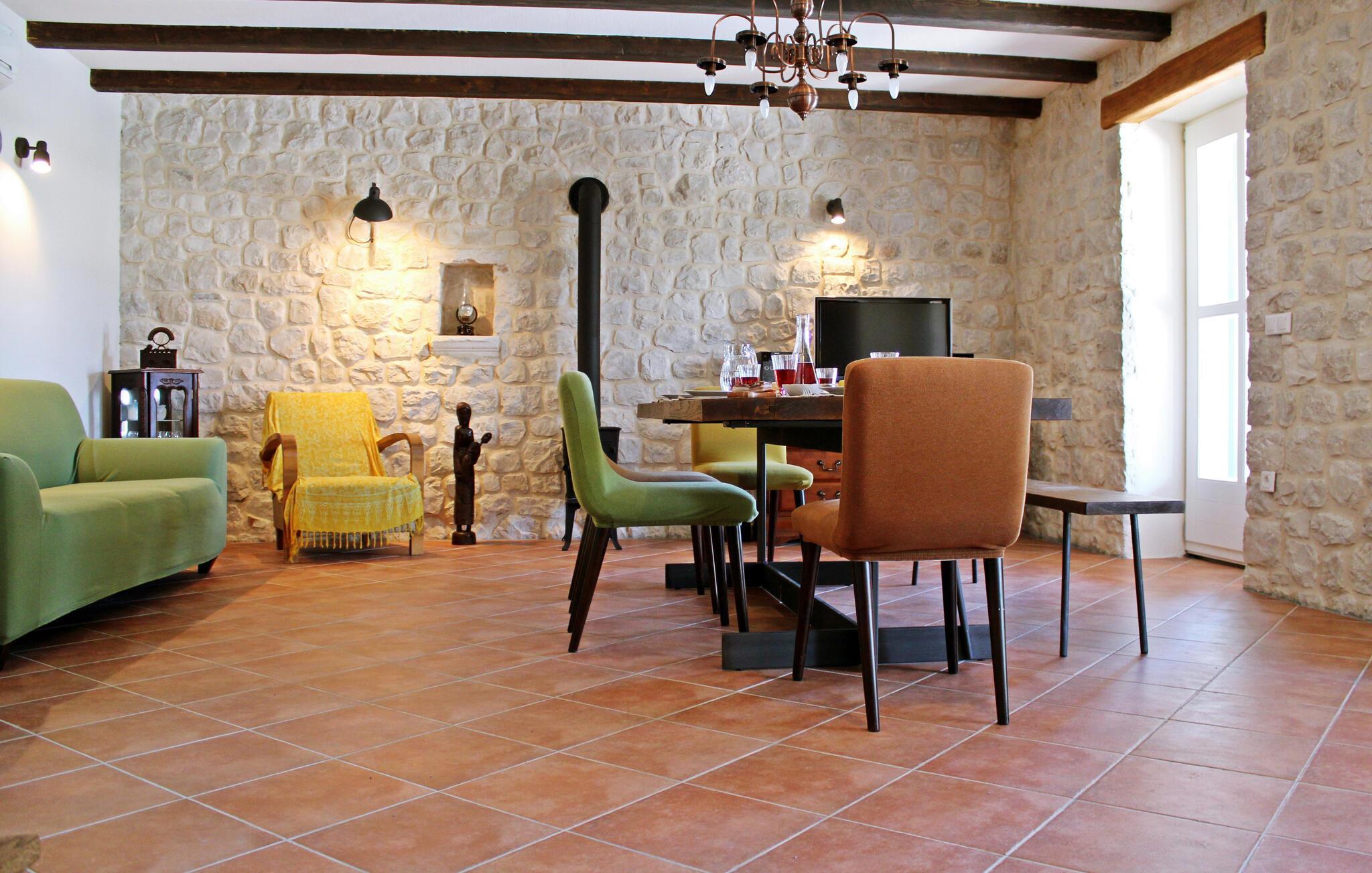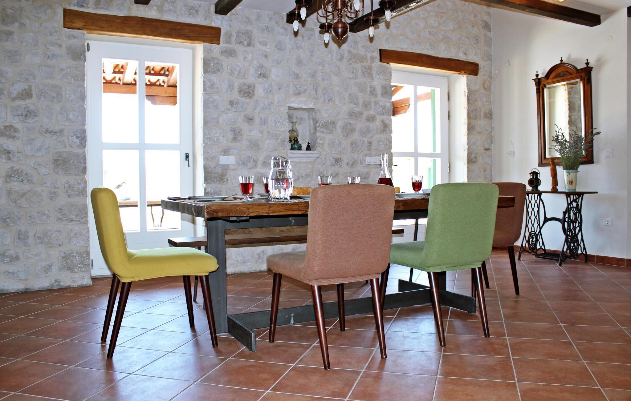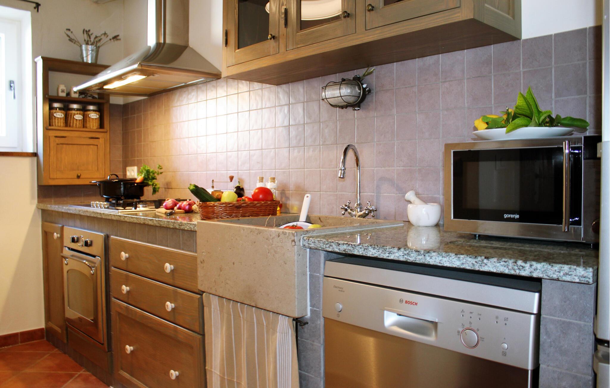 In diesem komfortablen Urlaubsdomizil schaffen Natursteinwände, Holzbalken und warme Töne eine gemütliche, rustikale Atmosphäre. Bereiten Sie in der behaglichen Landhausküche köstliche Mahlzeiten zu und genießen Sie diese am großzügigen Esstisch. Lassen Sie den Abend mit einem Buch in der gemütlichen Sitzecke ausklingen oder entspannen Sie bei einem guten Film auf dem Sofa.