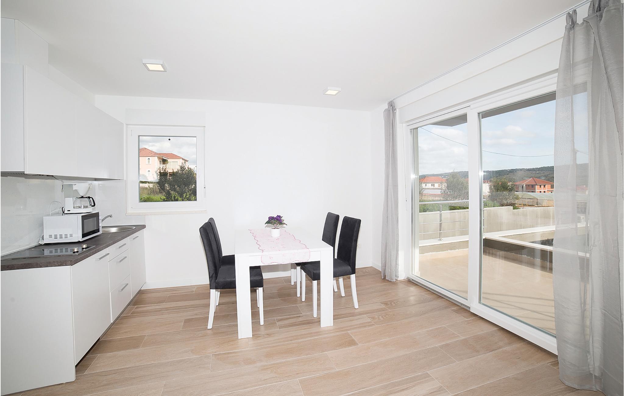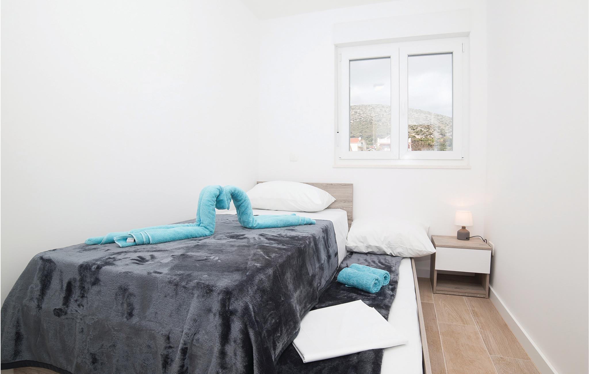 Diese geschmackvoll eingerichteten Ferienwohnungen verfügen über eigene Balkone. CDC009 und CDC012 mit zwei Schlafzimmern befinden sich im ersten Stock. CDC011 ist im Erdgeschoß mit ebenfalls zwei Schlafzimmern und die Wohnungen CDC010 und CDC013, im zweiten Stock und Dachgeschoß, verfügen jeweils über drei geräumige Schlafzimmer und zwei Bäder. Dachschräge bis auf 100 cm. Vor dem Haus ist ein gemeinsamer Grill, der im Sommer nicht fehlen darf. In etwa 15 Minuten zu Fuß erreichen Sie den Kiesstrand und das historische Altstadtzentrum von Trogir (UNESCO-Welterbe) ist etwa 950 m entfernt.