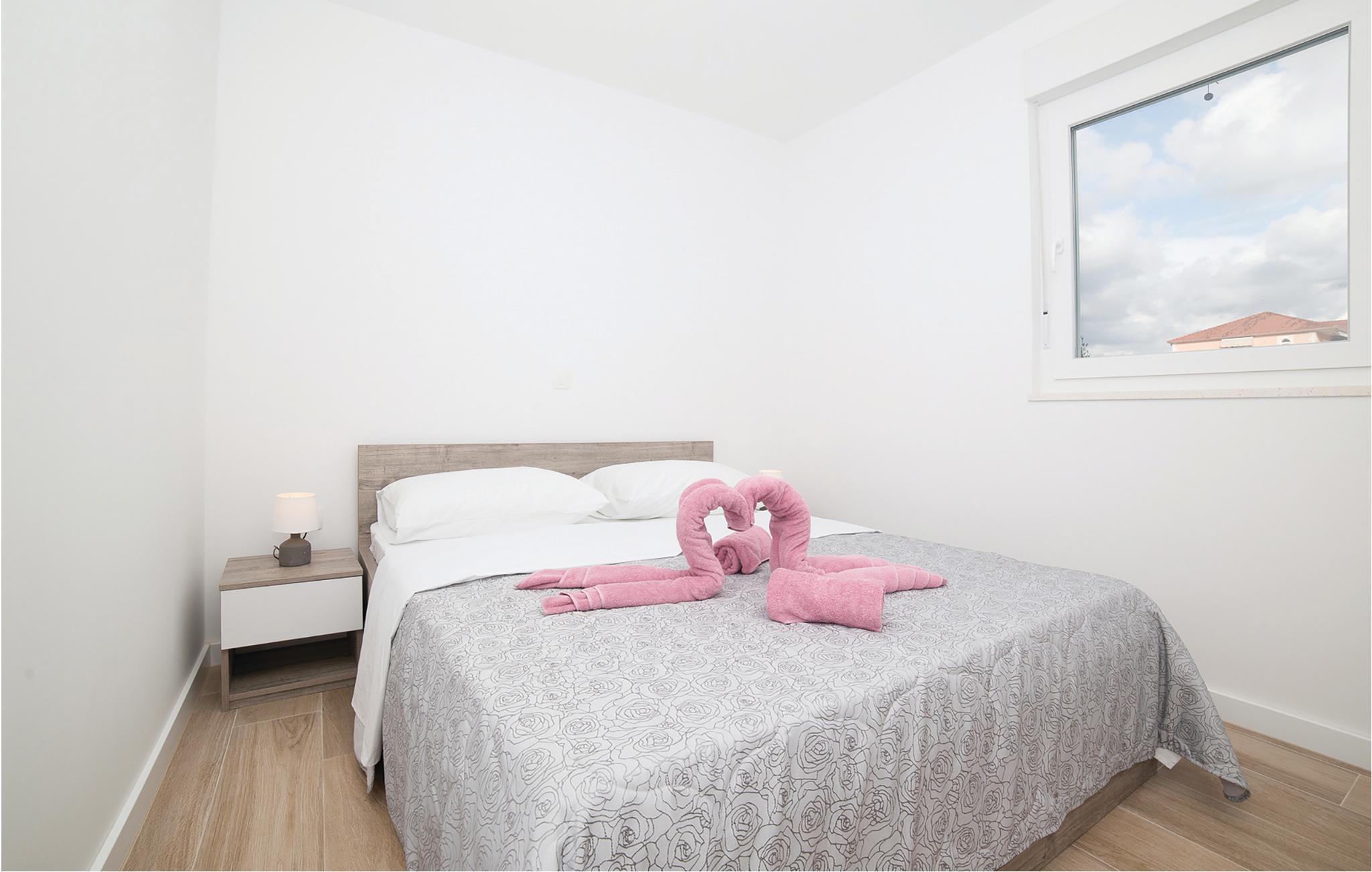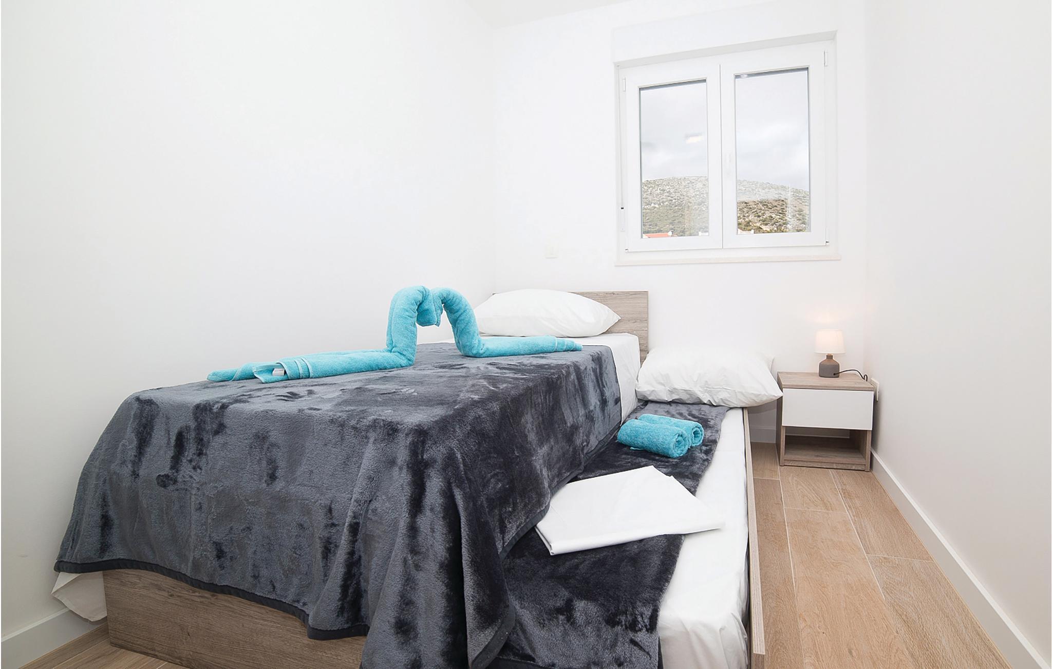 Diese geschmackvoll eingerichteten Ferienwohnungen verfügen alle über eigene Balkone. CDC009 und CDC012 mit zwei Schlafzimmern befinden sich im ersten Stock. CDC011 ist im Erdgeschoss mit ebenfalls zwei Schlafzimmern und die Wohnungen CDC010 und CDC013, die sich im zweiten Stock und Dachgeschoss befinden, verfügen jeweils über drei geräumige Schlafzimmer und zwei Bäder. Die Dachschräge reicht bis auf 100 cm. Vor dem Haus ist ein gemeinsamer Grill, der im Sommer nicht fehlen darf. In etwa 15 Minuten zu Fuß erreichen Sie den Kiesstrand und das historische Altstadtzentrum von Trogir (UNESCO-Welterbe) ist etwa 950 m entfernt.