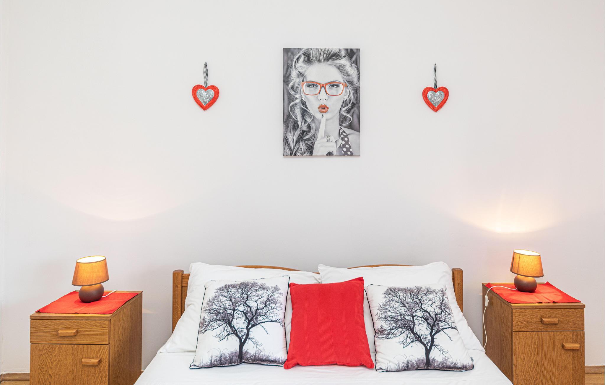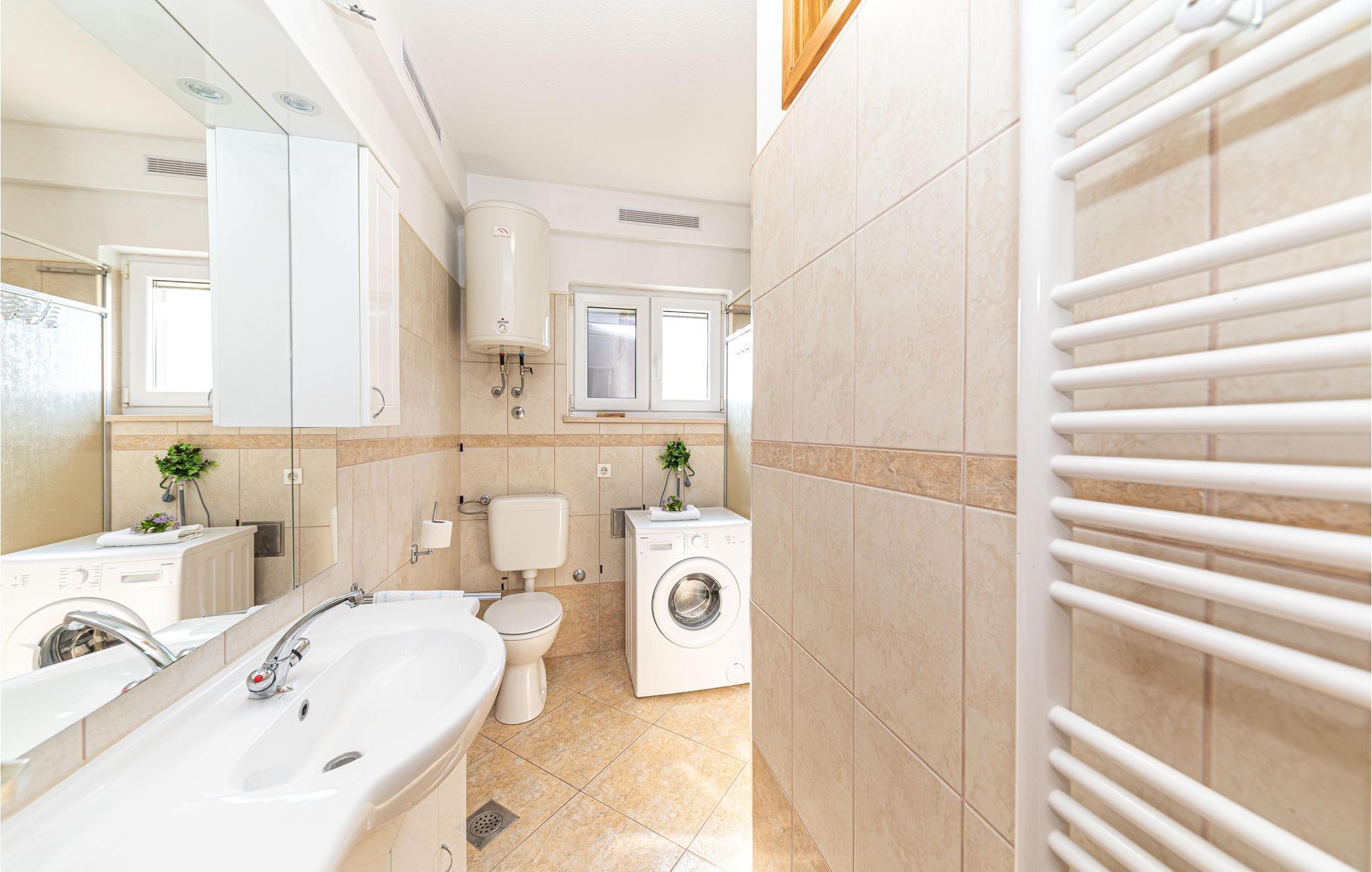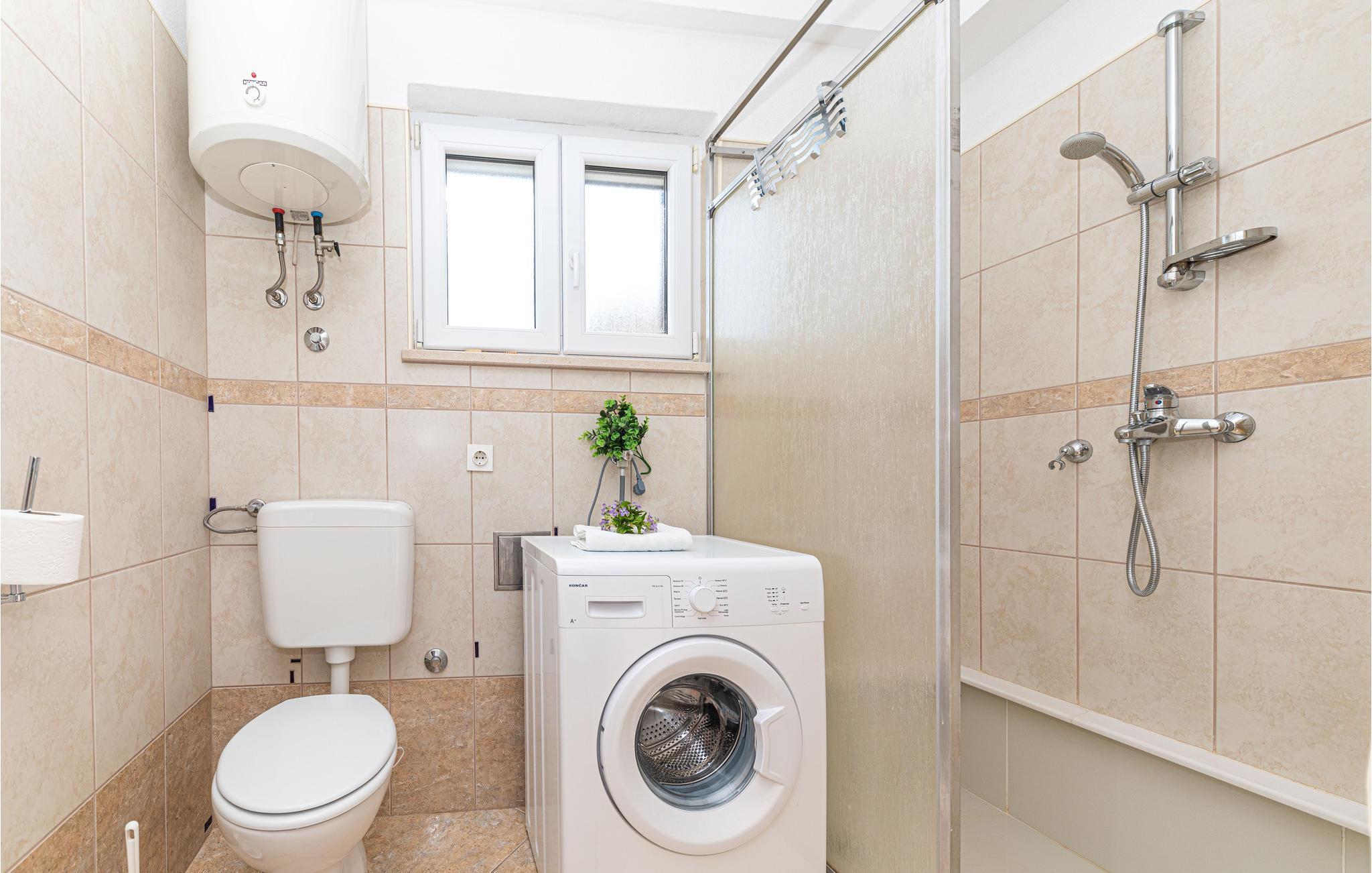 Diese Ferienwohnung befindet sich im Erdgeschoss eines Familienhauses und besteht aus Wohnzimmer, Küche, Bad, zusätzlicher Toilette und zwei Schlafzimmern. Ebenso steht Ihnen eine überdachte Terrasse mit Grill und Gartenmöbeln zu Verfügung. In wenigen Autominuten erreichen Sie den Strand sowie die sehenswerte Altstadt von Trogir, deren romantische Gassen und traumhafte Promenade zum Spazieren und ausgiebigen Bummeln einladen. Sehenswert ist ebenfalls die Altstadt von Split, in der ihre Besucher eine Zeitreise in die Vergangenheit erleben. In den Stadtzentren erwarten Sie viele Restaurants und Tavernen mit ausgezeichneten Fischspezialitäten.