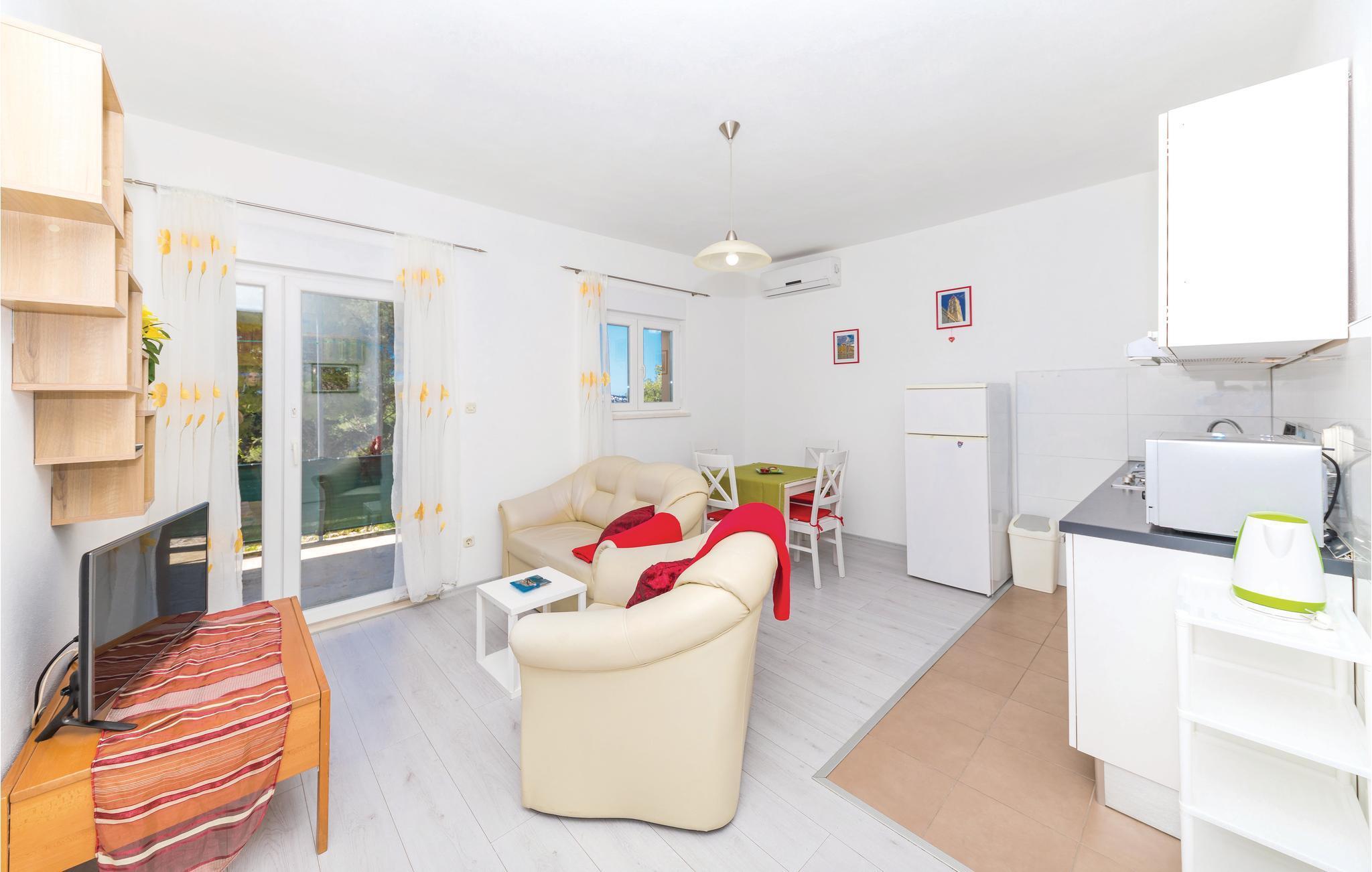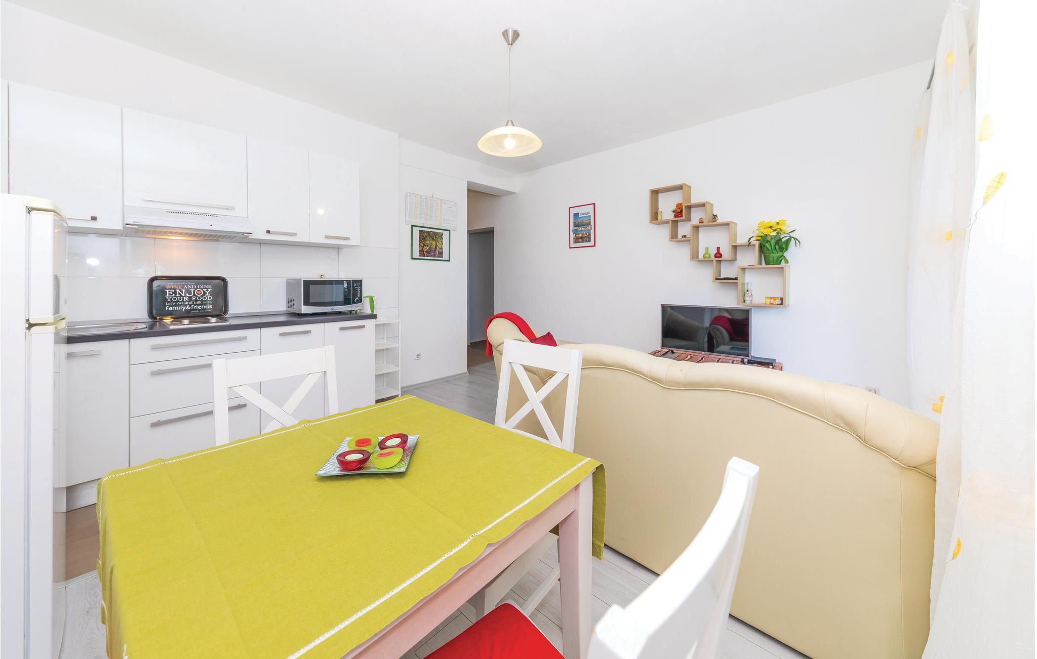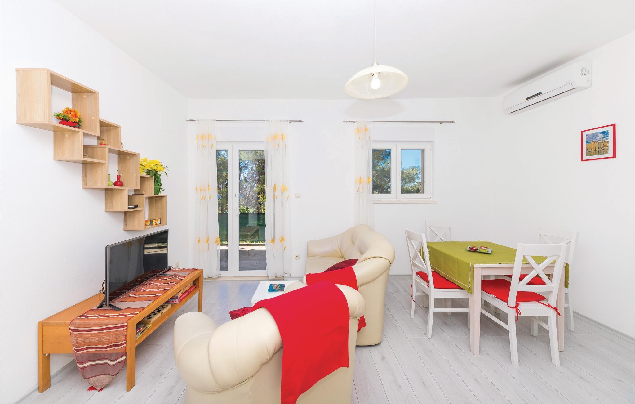 Die schöne Ferienwohnung befindet sich auf der Insel Ciovo, im Ort Saldun. Sie liegt im Erdgeschoss eines Einfamilienhauses und besteht aus zwei Schlafzimmern, einem Badezimmer sowie einer Wohnküche mit direktem Ausgang zur großen Terrasse, von der sich ein herrlicher Meerblick bietet. In der Nähe gibt es einen Betonstrand und etwas weiter einen schönen Kiesstrand. Unternehmen Sie einen Spaziergang in die Altstadt von Trogir mit ihren Kopfsteinpflastern und prächtigen Steinbauten, die die lange Geschichte der Stadt erzählen. Sehenswert sind auch die Kathedrale des Hl. Laurentius sowie die Festung Kamerlengo, in der Konzerte stattfinden.