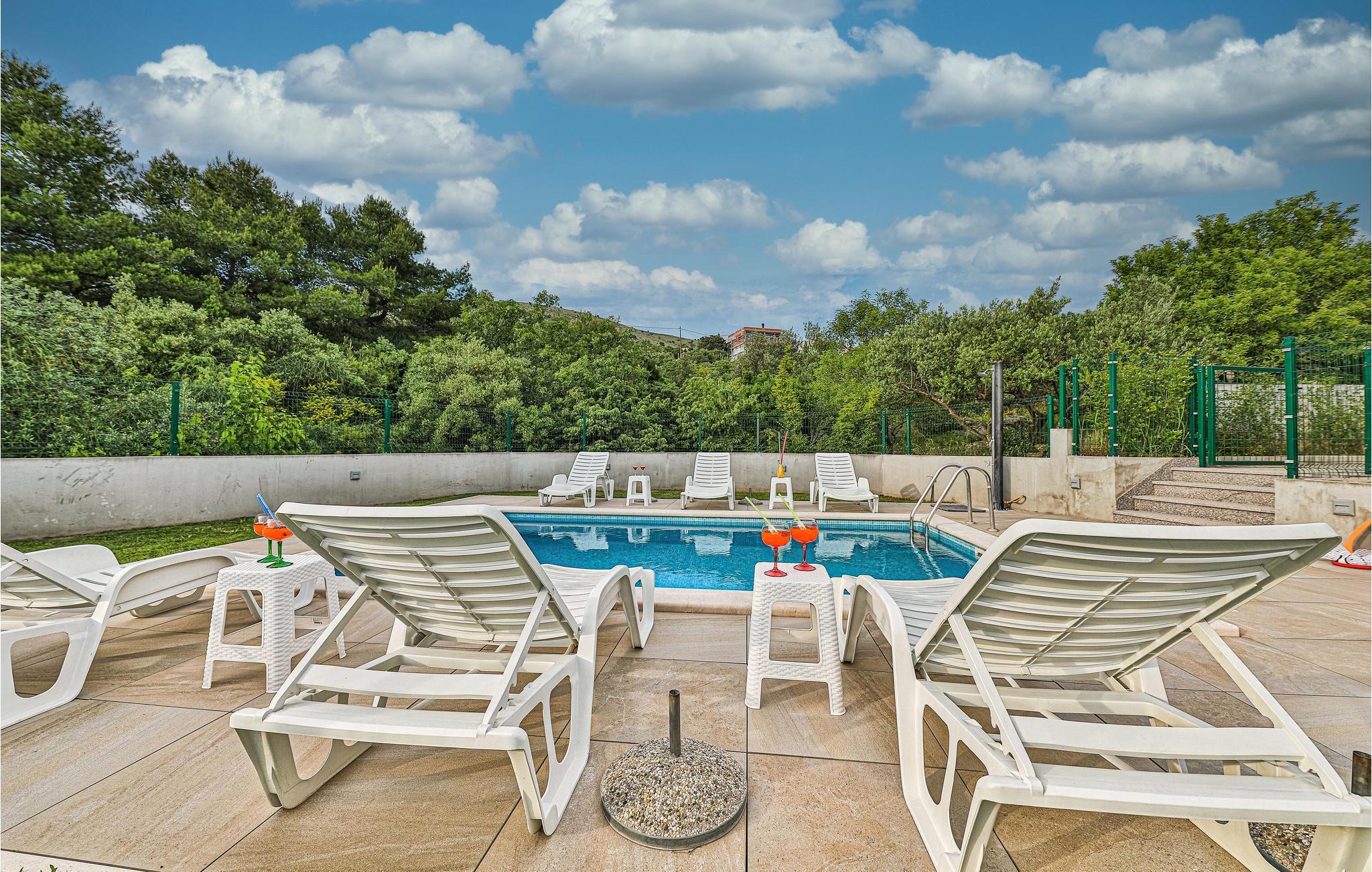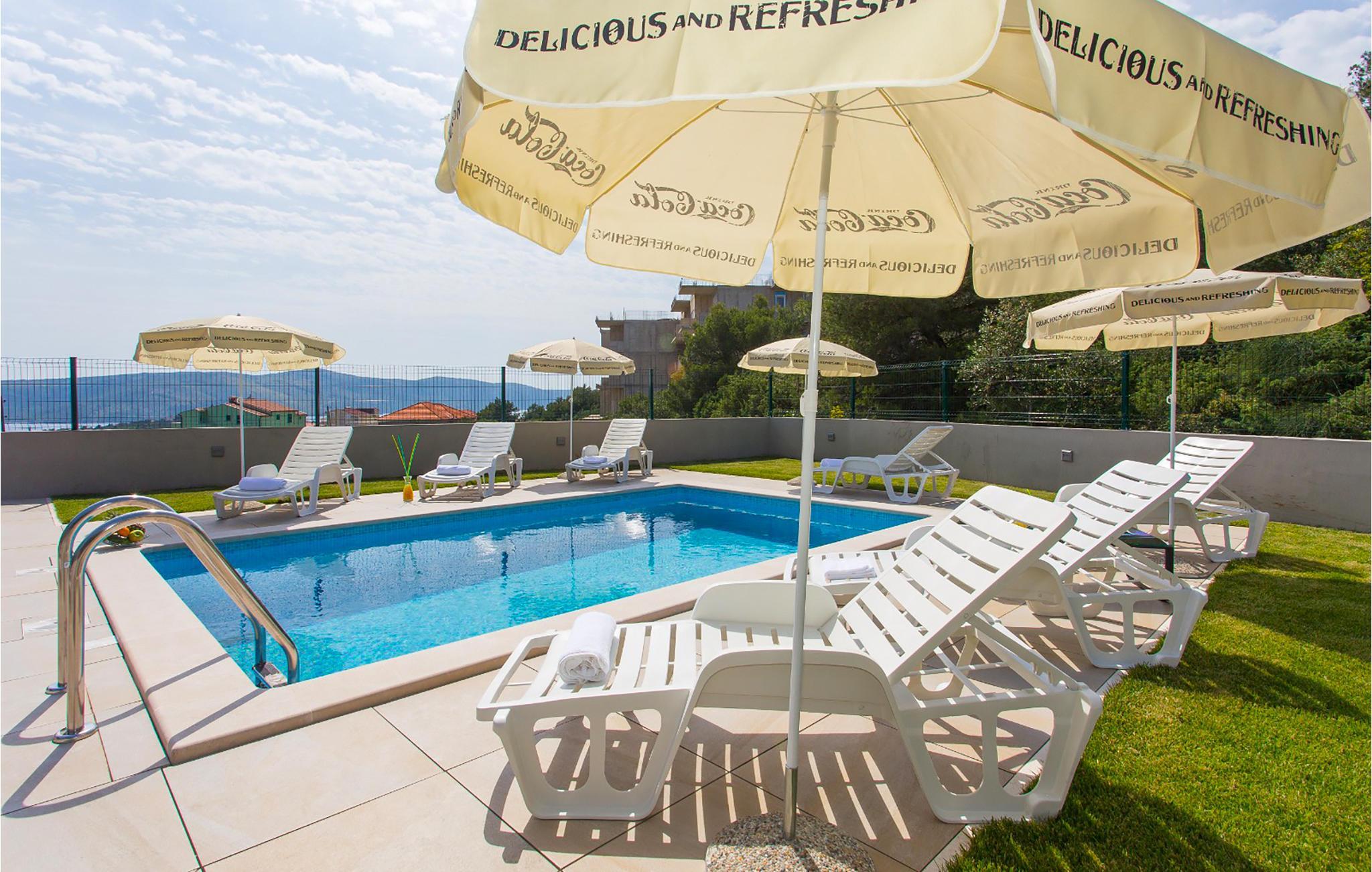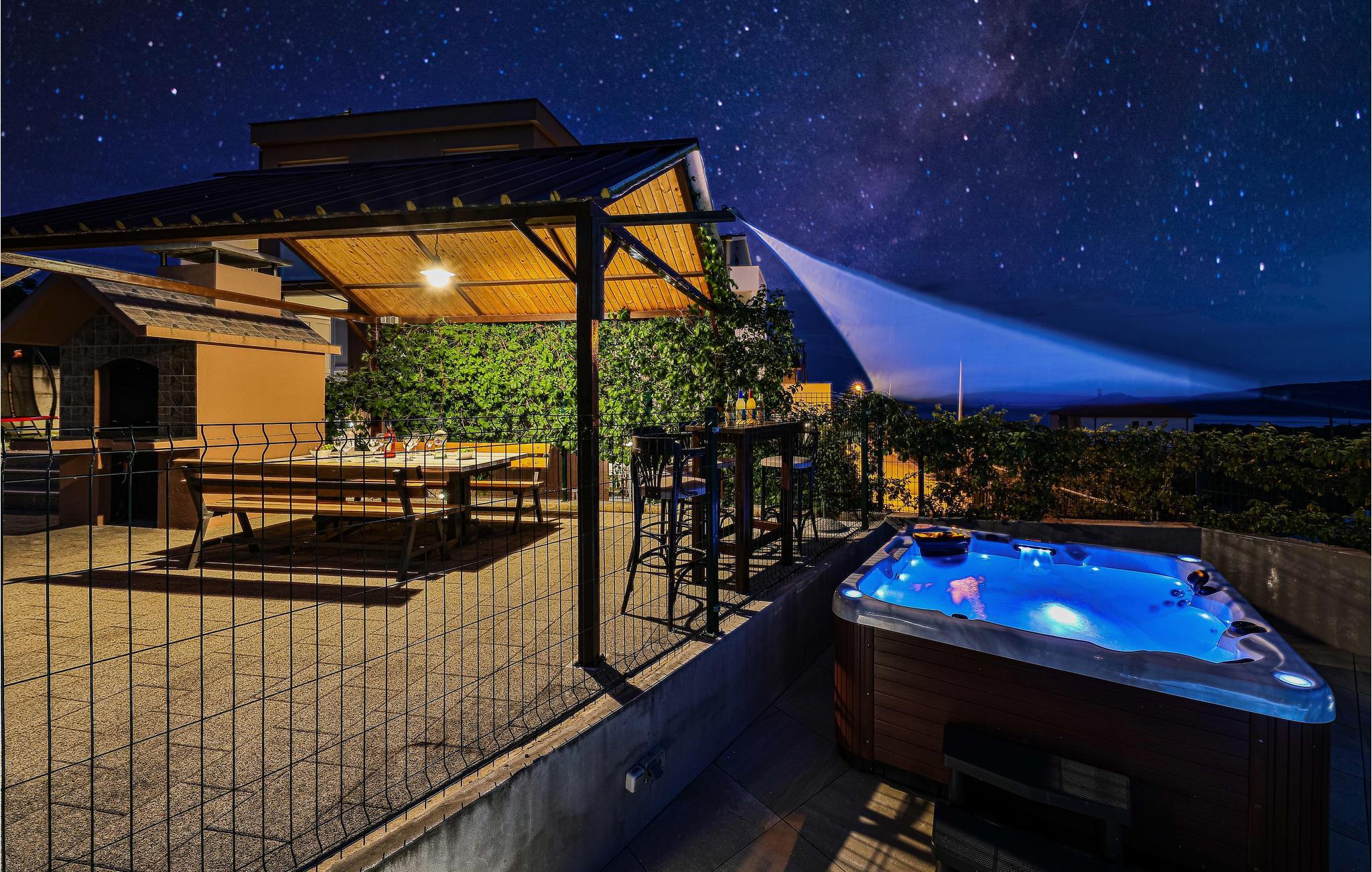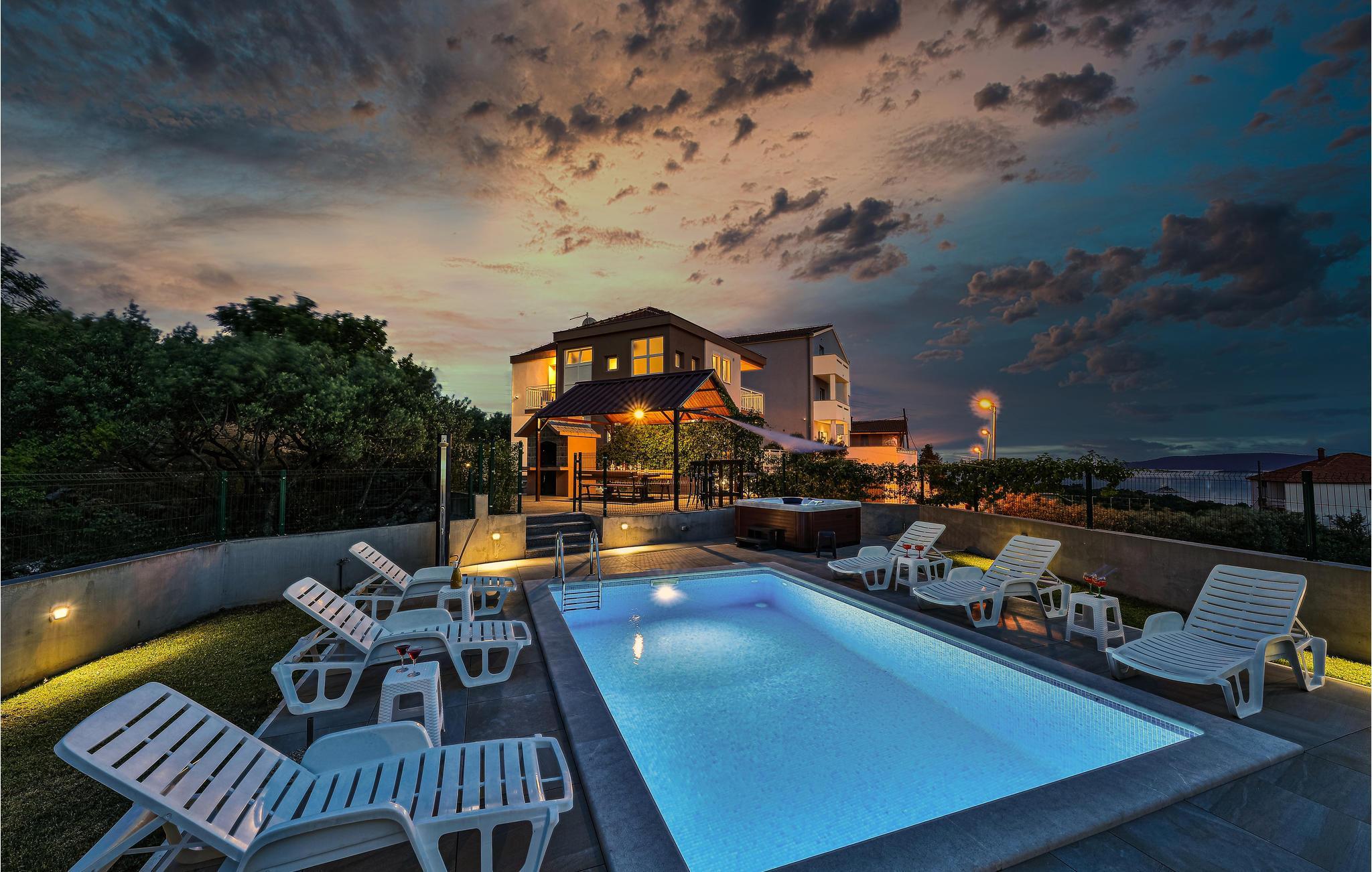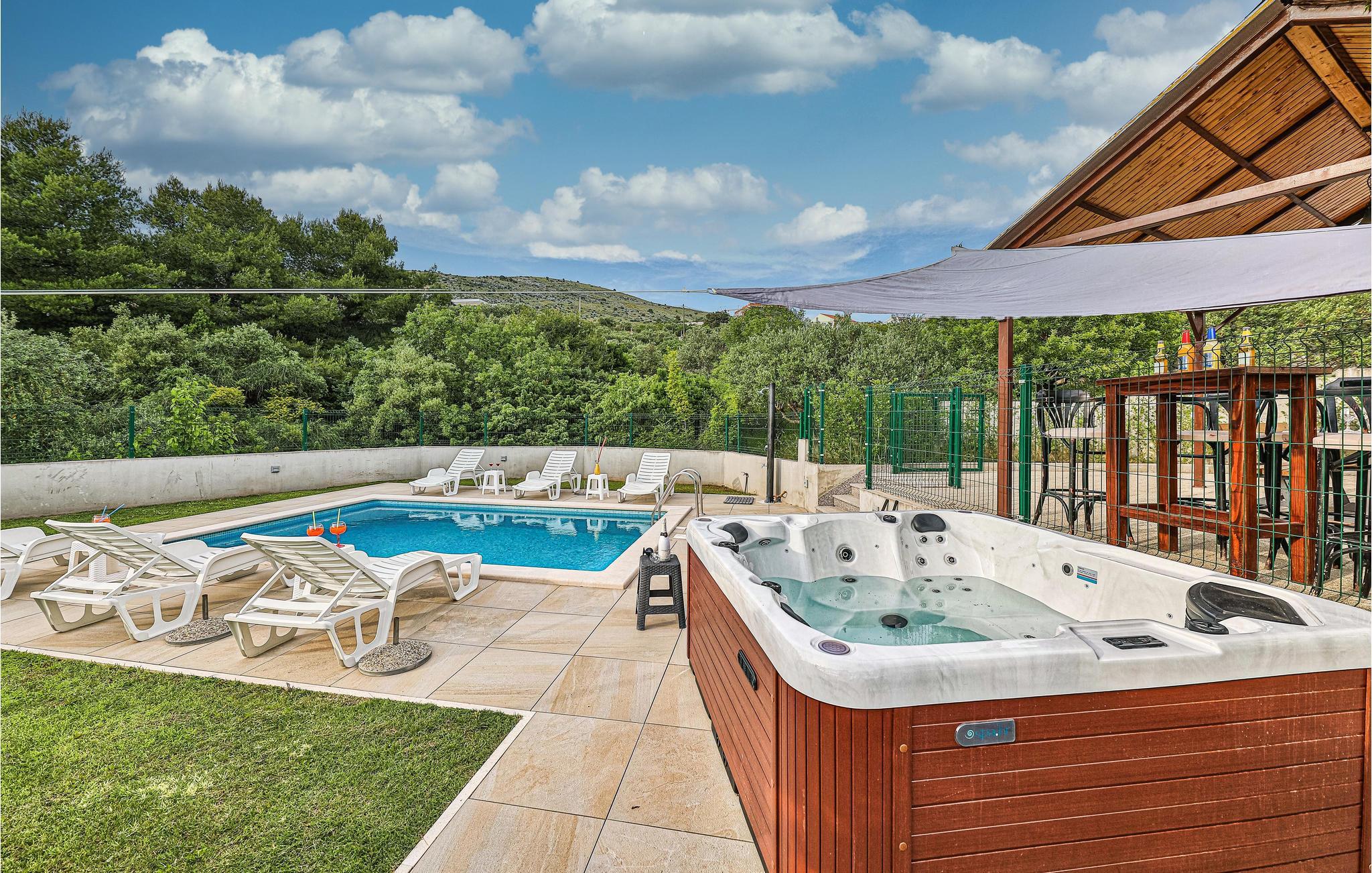 In Seget Donji befindet sich dieses Ferienhaus. Es besteht aus insgesamt drei Etagen, wobei sich im Erdgeschoss ein Fitness- und Aufenthaltsraums sowie eine Speisekammer befinden. Im ersten und zweiten Stock sind gleichmäßig verteilte Wohnungen, die jeweils über 2 Schlafzimmer, 1 Wohnzimmer mit Küche, Bad und Toilette verfügen. Von der obersten Terrasse bietet sich ein schönes Meerespanorama und vor dem Haus stehen Ihnen ein Swimmingpool und Whirlpool zur Verfügung.