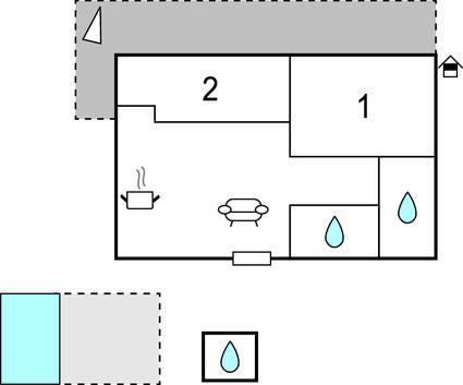 Badezimmer (nr. 2) - WC. Warmes und kaltes Wasser. Dusche