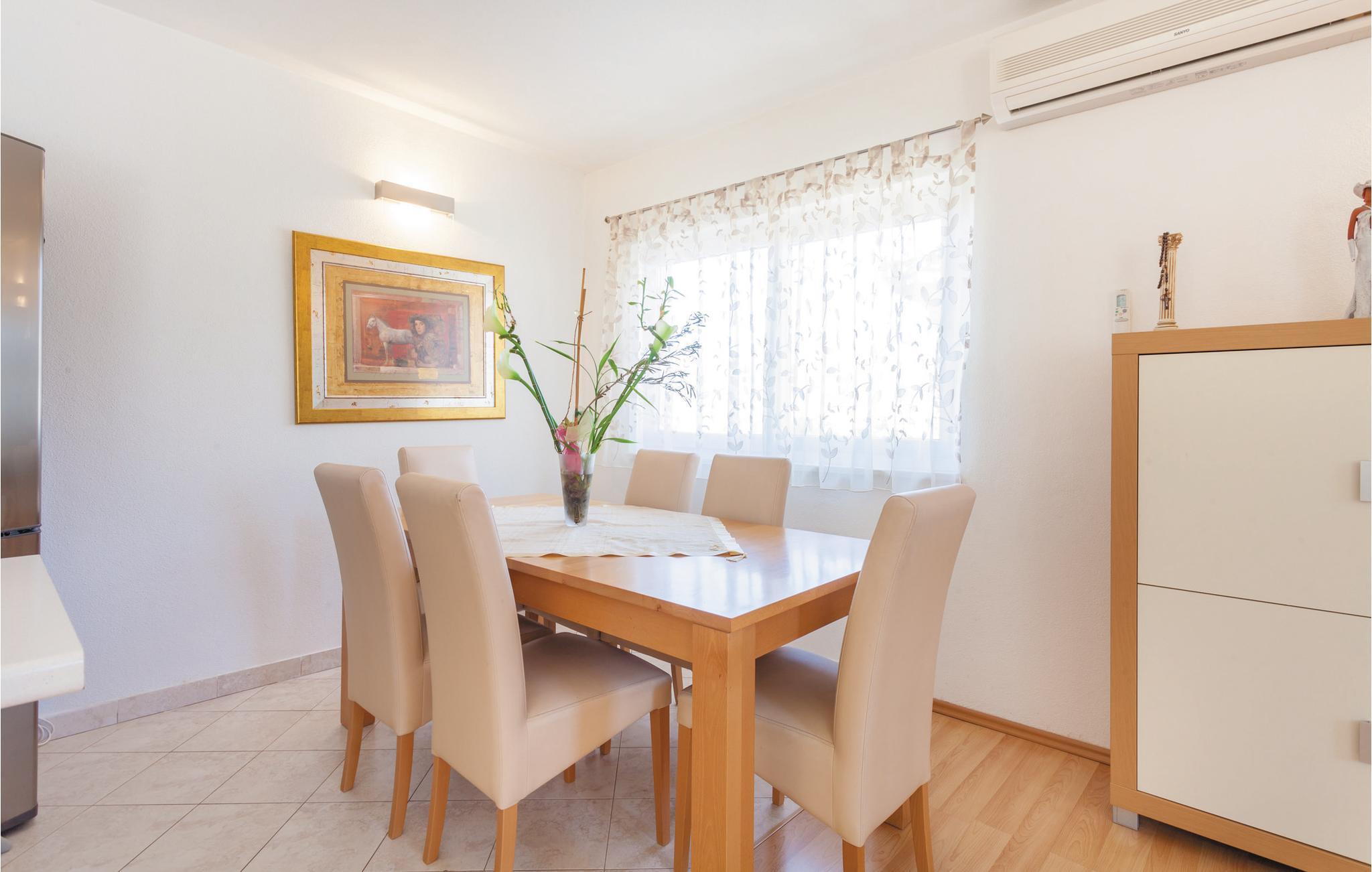 Verbringen Sie Ihren Familienurlaub in einer dieser Ferienwohnungen mit gemeinsamem Pool. Für die Kleinsten gibt es Spielgeräte zur gemeinsamen Nutzung, und neben dem Pool steht Ihnen ein gemeinsames Badezimmer zur Verfügung. Diese Ferienobjekte befinden sich in Trogir, aber auf der Seite von Ciovo. Die letzten 250m zum Haus sind sehr eng und im engsten Bereich sind es nur 2,2 m. Auch wenn die historische Altstadt von Trogir mit vielen Angeboten in Reichweite ist, werden Sie hier einen Urlaub in ruhiger Umgebung verbringen. In der Nähe befindet sich die Marina, wo Sie Boote oder Anlegestellen mieten können, und der Flughafen liegt 5 km von hier.