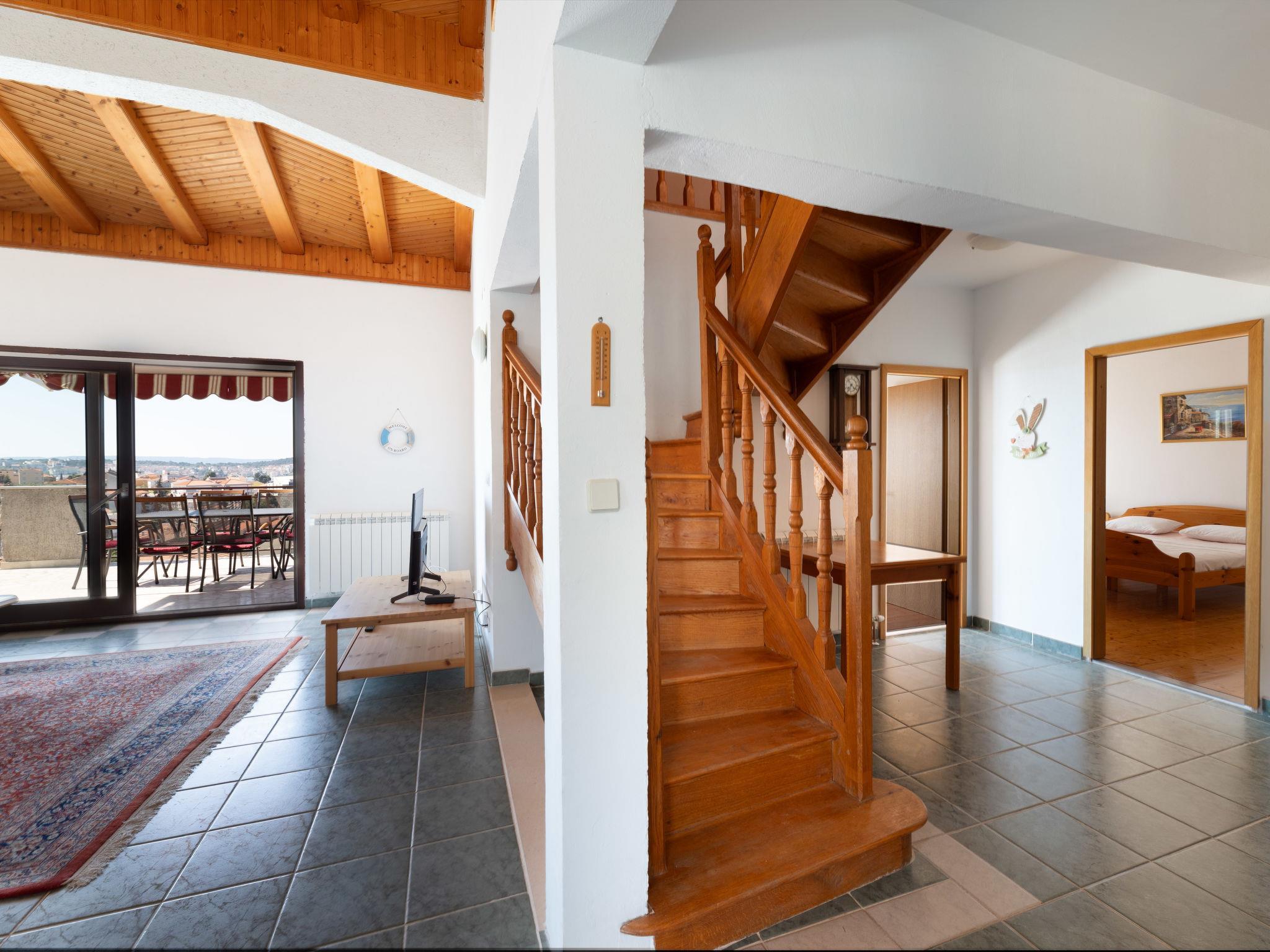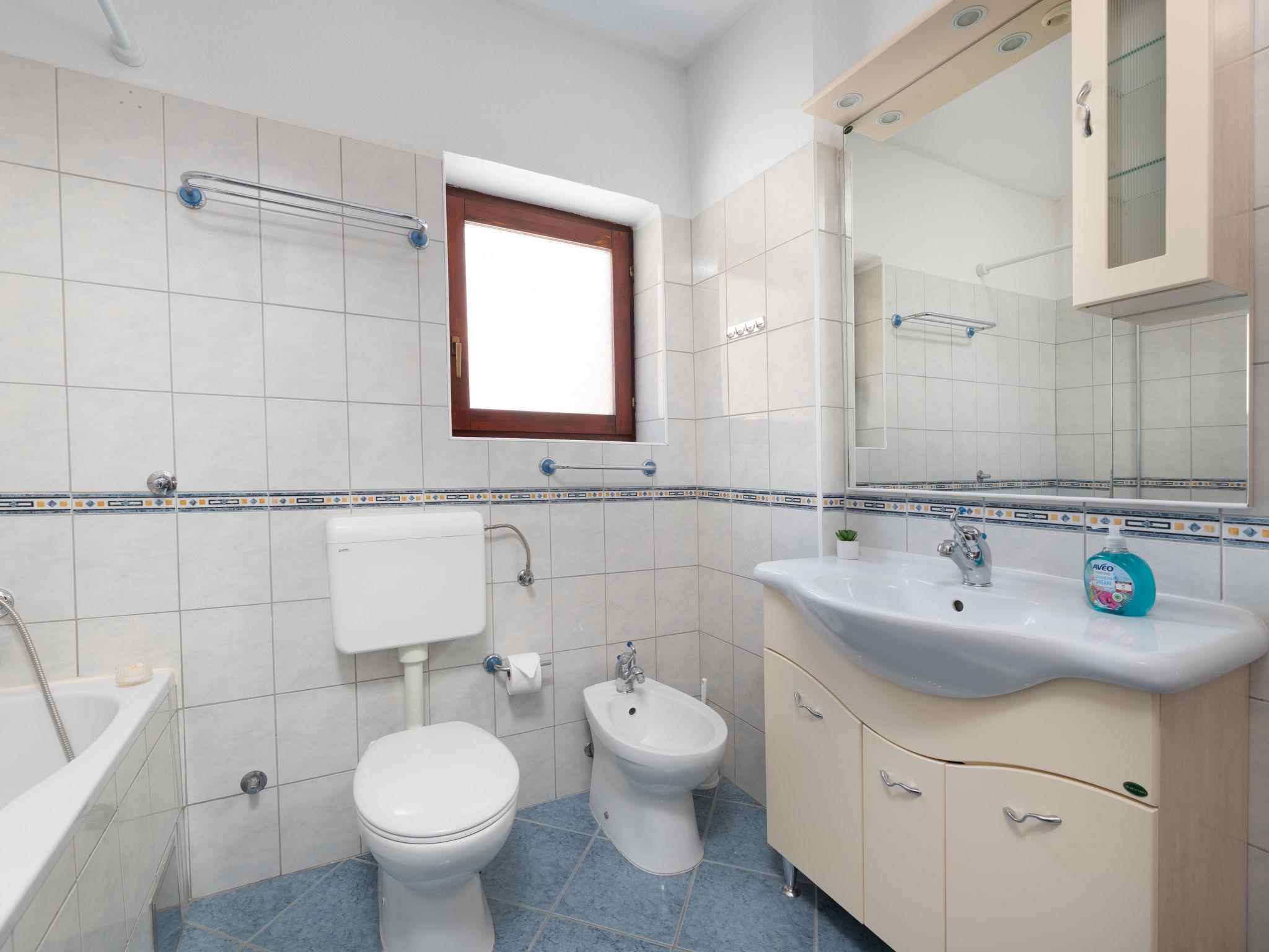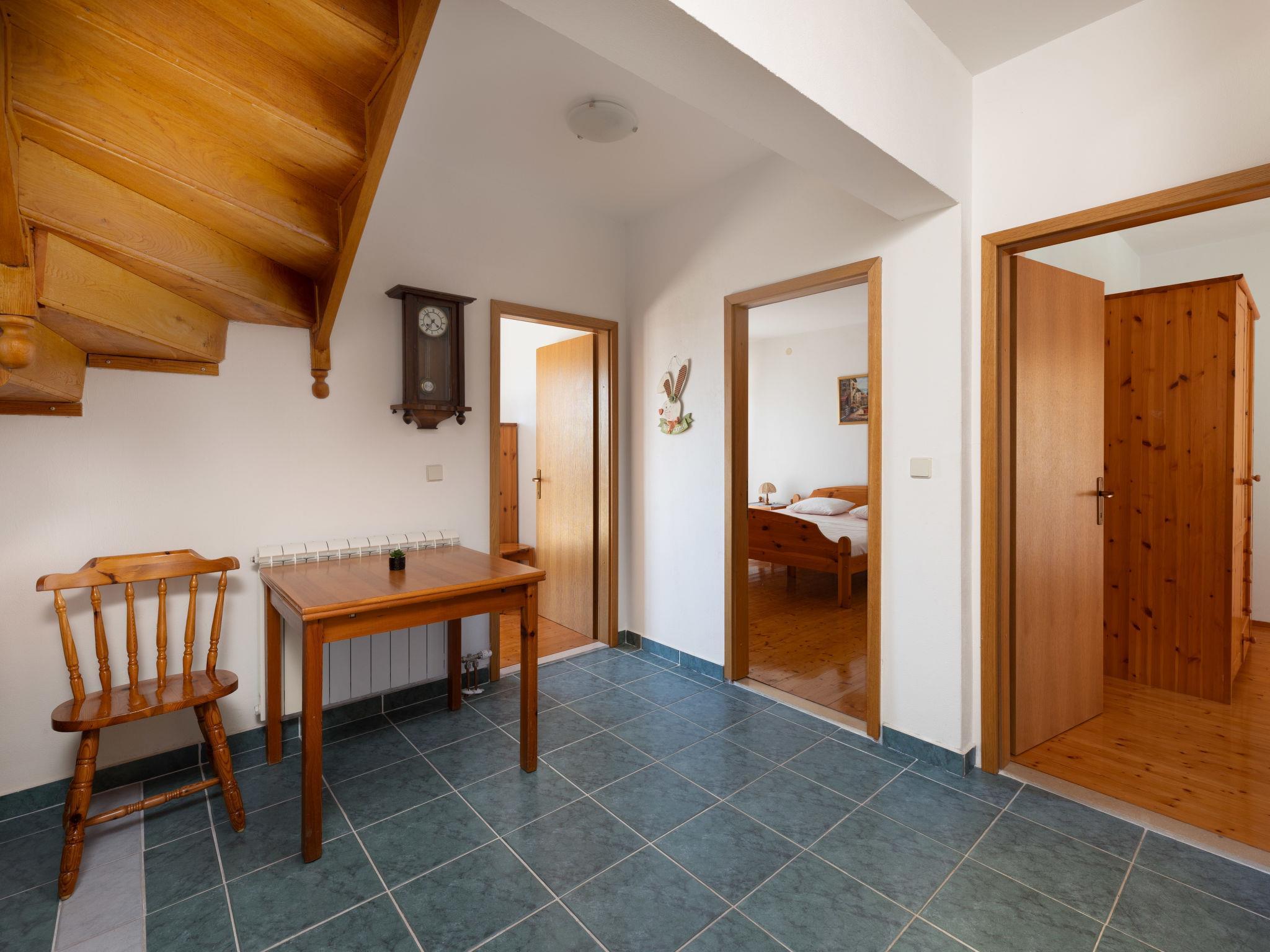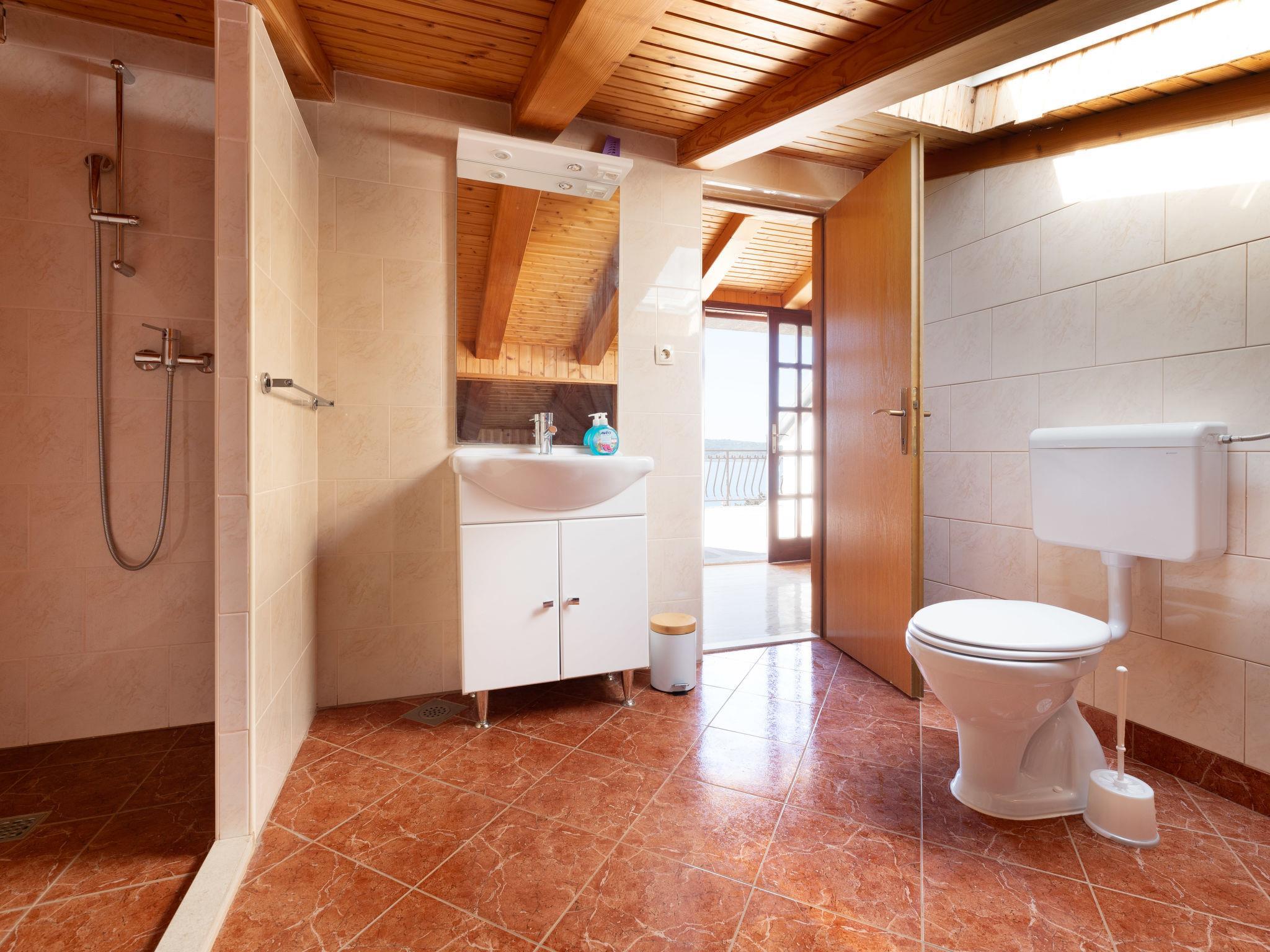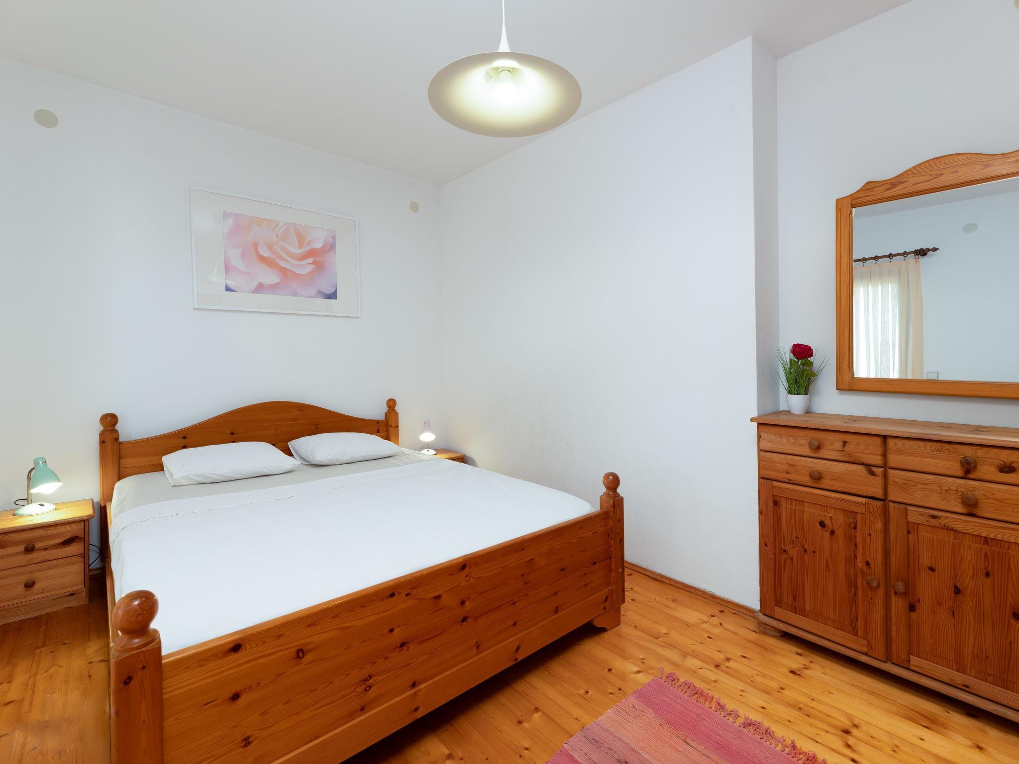"Limun 3", 5-Zimmer-Wohnung 125 m2 im 1. Stock. Wohn-/Esszimmer mit Sat-TV (Flachbildschirm), Klimaanlage. Ausgang zur Terrasse. 1 Zimmer mit 1 franz. Bett (160 cm, Länge 200 cm). Ausgang zum Balkon. 1 Zimmer mit 1 franz. Bett (160 cm, Länge 200 cm). Ausgang zur Terrasse. 1 Zimmer mit 1 Bett (90 cm, Länge 200 cm). Ausgang zur Terrasse. Offene Küche (Backofen, Geschirrspüler, 4 Glaskeramikplatten, Wasserkocher, Mikrowelle, Tiefkühler, elektrische Kaffeemaschine). Bad/Bidet/WC, sep. WC. Heizung, Warmluftheizung. Obergeschoss: 1 Zimmer, Deckenhöhe 160 - 230 cm mit 1 franz. Bett (160 cm, Länge 200 cm), Dusche/WC und Klimaanlage. Ausgang zum Balkon. Balkon 3 m2, Balkon 15 m2, Terrasse 40 m2. Eingeschränkte Sicht auf das Meer. Zur Verfügung: Waschmaschine. Internet (WLAN, gratis).