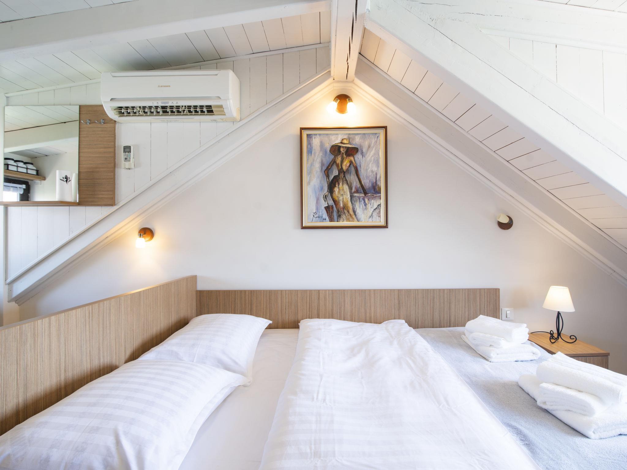 1-Zimmer-Wohnung 20 m2 im 3. Stock. Abgeschrägtes Studio mit 1 franz. Bett (160 cm, Länge 200 cm), Esstisch und Sat-TV (Flachbildschirm), Klimaanlage. Offene Küche (2 Kochplatten, Wasserkocher, elektrische Kaffeemaschine). Dusche/WC. Zur Verfügung: Internet (WLAN, gratis).