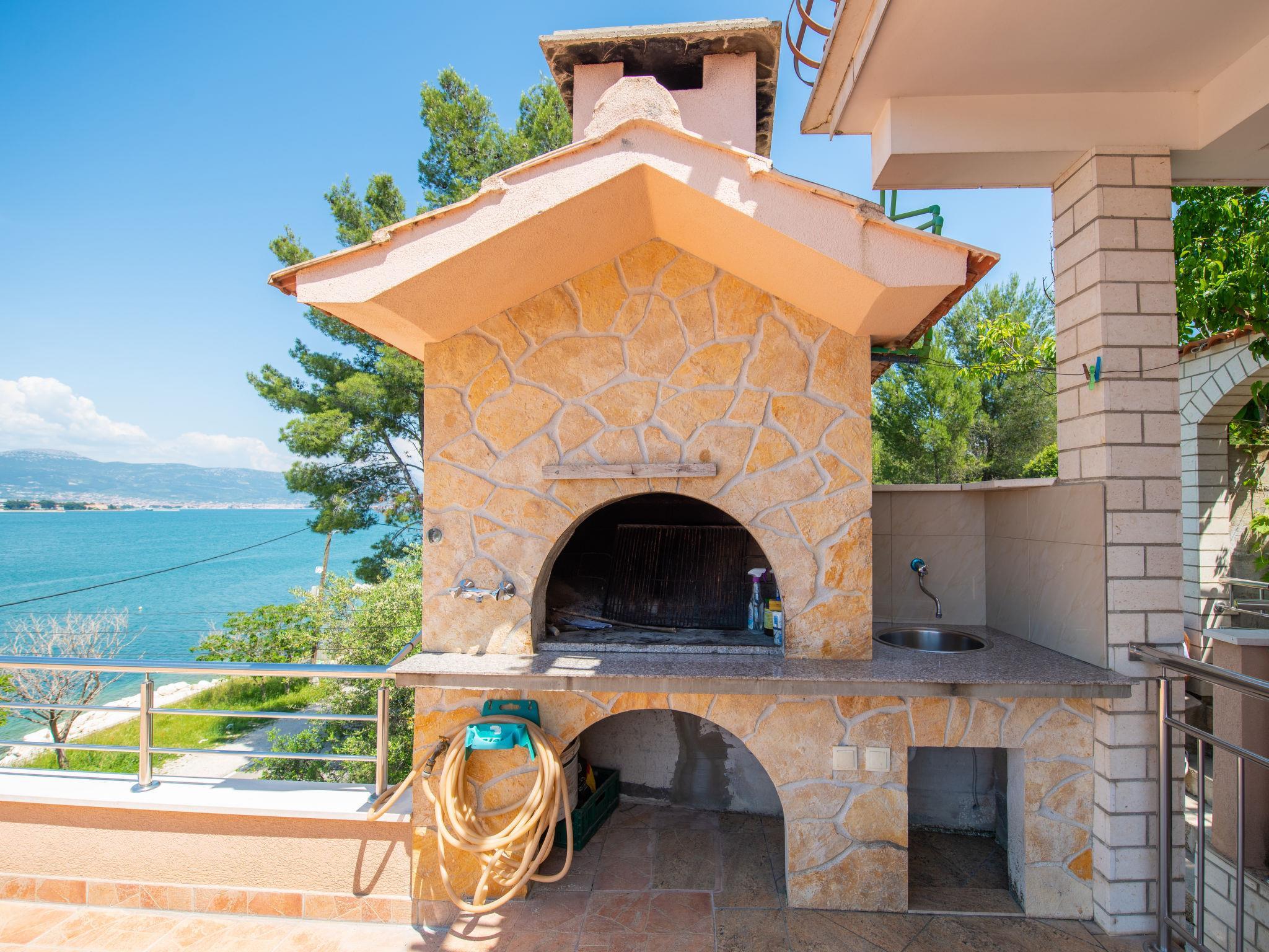 Mastrinka (Ciovo) 4 km von Trogir: Mehrfamilienhaus "Vinka". Sonnige Lage, 30 m vom Meer, 30 m vom Strand, Strasse zu überqueren, an einer Strasse. Zur Mitbenutzung: Grundstück 500 m2. Grill. Im Hause: Internetzugang, Waschmaschine (extra) (zur Mitbenutzung). Öffentliche Parkplätze auf der Strasse. Einkaufsgeschäft, Restaurant 800 m, Bushaltestelle 240 m, Kieselstrand, Felsstrand 30 m. Bitte beachten: private Bootsanlegestelle (extra) auf Anfrage. Flugplatz 5.5 km vom Haus.