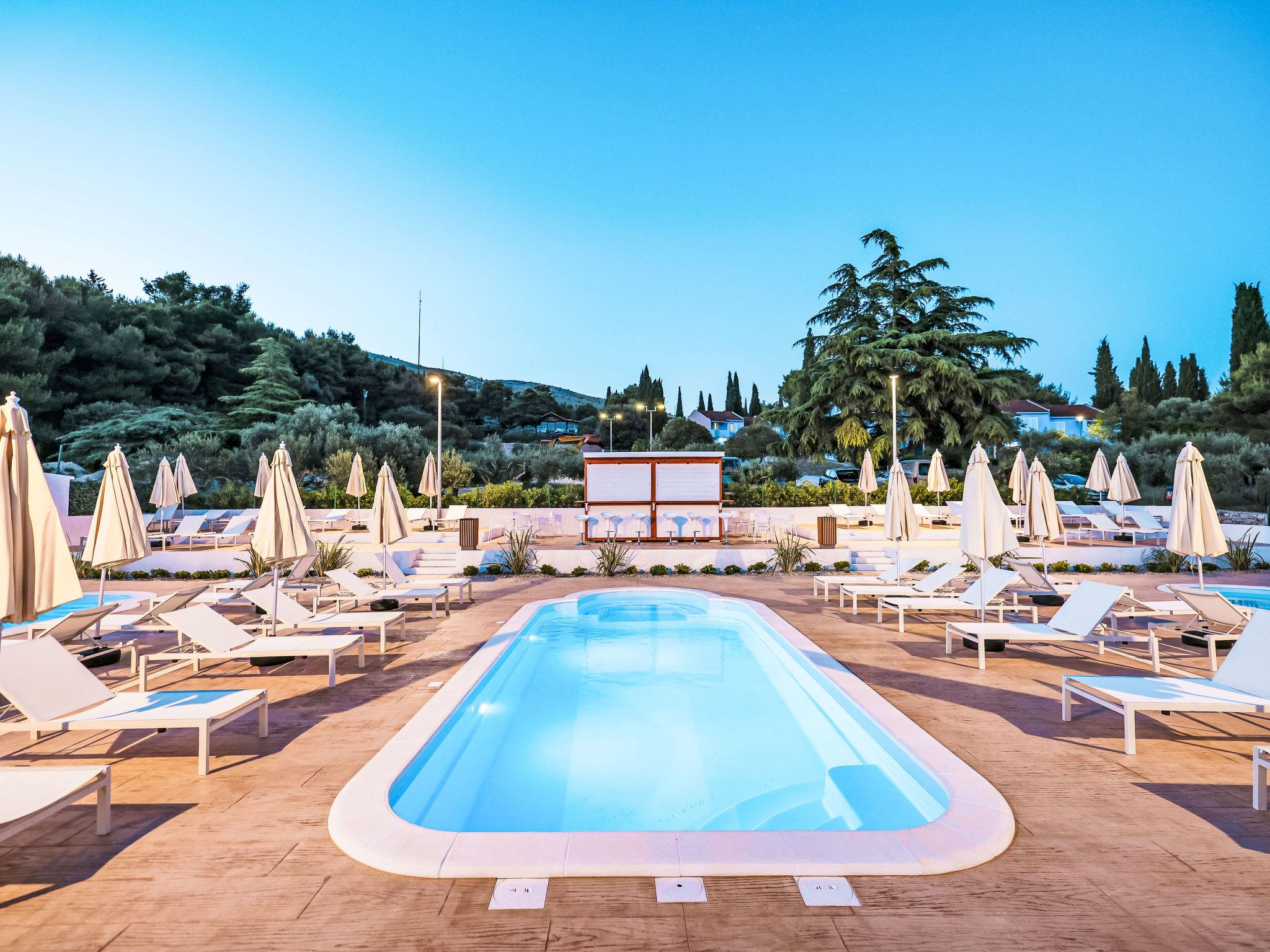 Ferienanlage "Medena". Im Ortsteil Seget Donji, 3 km vom Zentrum von Trogir, 30 km vom Zentrum von Split, direkt am Meer. Zur Mitbenutzung: Grundstück mit Pflanzen und Bäumen, 3 Schwimmbäder (31 m2, 140 cm tief, saisonale Verfügbarkeit: 01.Apr. - 01.Nov.) mit Innentreppe. Kinderbecken, Aussendusche, Tennis (extra), Basketball (extra), Kinderspielplatz. In der Anlage: Empfang, Restaurant, Internetzugang, Wäscherei. Zur Verfügung: Fahrräder (extra). Frühstück Vollpension Halbpension möglich auf Anfrage (extra). Abholservice vom Flughafen (extra). Parkplatz (extra) auf dem Grundstück. Bushaltestelle 650 m. Objekt geeignet für 2 Erwachsene + 2 Kinder. Bitte beachten: Flugplatz 8 km vom Haus. Das Foto ist nur ein Hausbeispiel. Eine Doppel-Schlafsofai m Wohn-/Essbereich ist nur für 2 Kinder bis zu 12 Jahren geeignet.