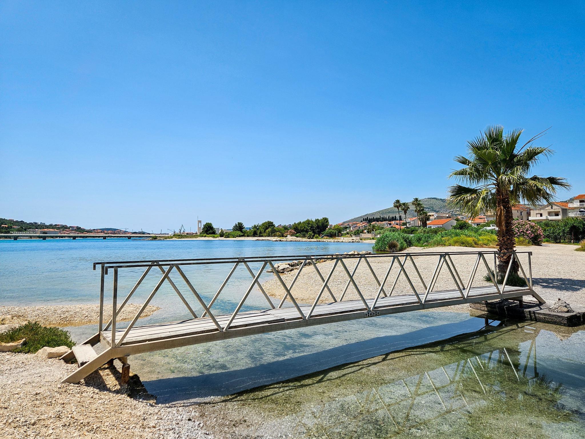 Mehrfamilienhaus. 1.9 km vom Zentrum von Trogir, 80 m vom Meer, 80 m vom Strand, in einer Sackgasse. Im Hause: Internetzugang. Parkplatz beim Haus. Supermarkt 1.6 km, Restaurant 1 km, Bushaltestelle 300 m, Kieselstrand 80 m. Bitte beachten: Flugplatz 3.2 km vom Haus.
