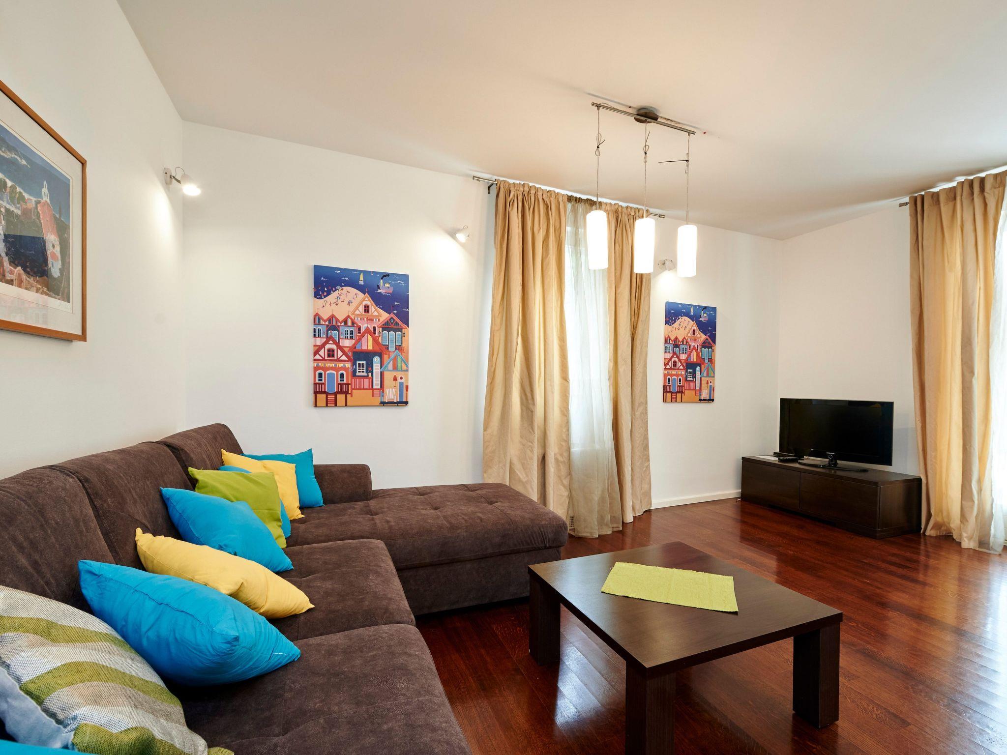 Dies ist eine Einzimmerwohnung mit einem privaten Schlafzimmer. Es ist für 3 Personen geeignet. Es gibt ein Doppelbett im Schlafzimmer (1,60m breit). Das Wohnzimmer und das Esszimmer befinden sich im Komplex. Sofa im Wohnzimmer bietet Bett für dritte Person. Die Küche ist durch einen Flur mit dem Wohnraum verbunden. Das Badezimmer mit Dusche hat eine Fußbodenheizung. Heizung ist überall in dieser 60m Quadrat Wohnung. Kostenloses Wi-Fi, SAT TV, Bettwäsche und Handtücher werden den Gästen zur Verfügung gestellt.