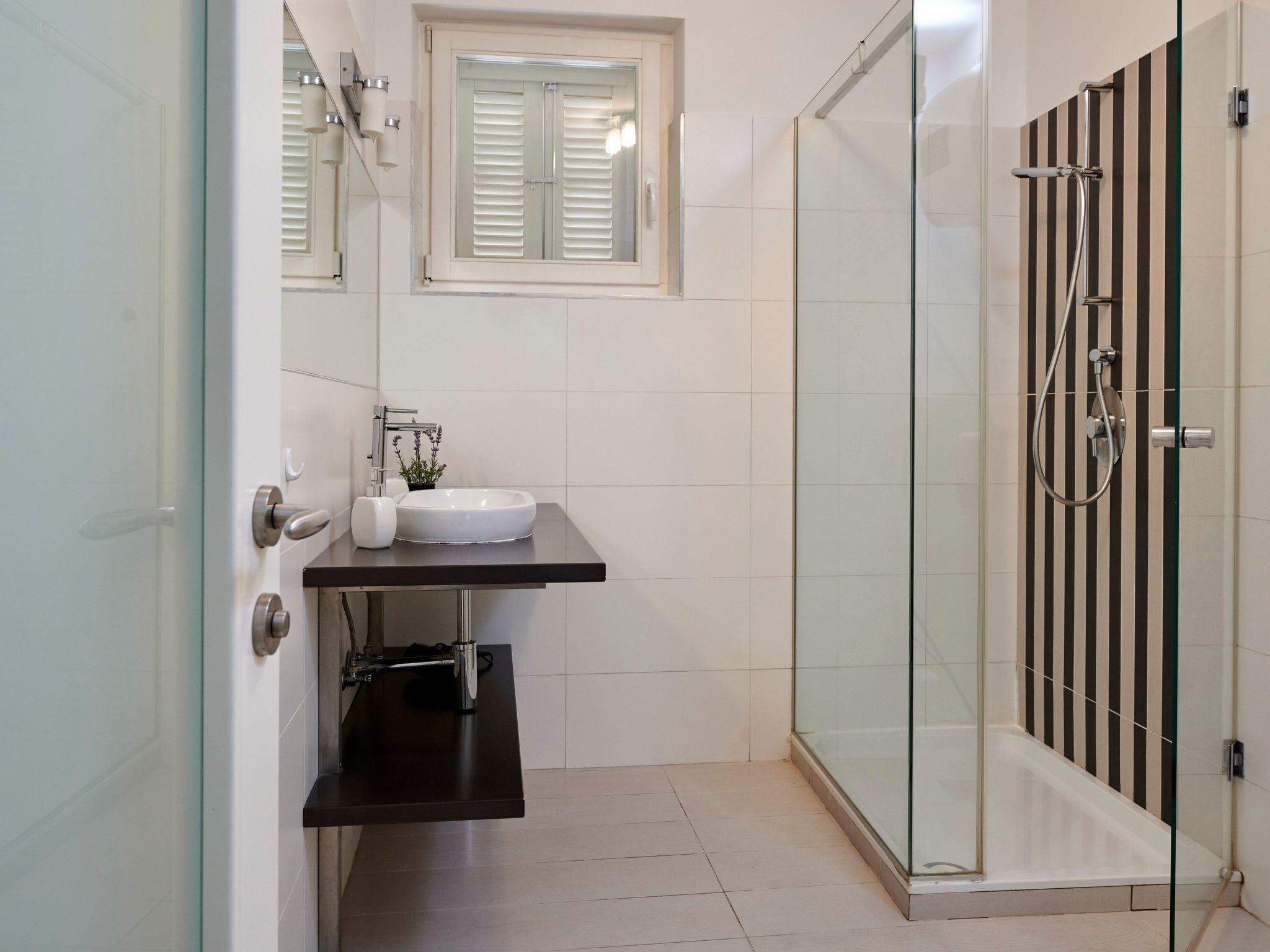 Beide Erdgeschoss-Wohnungen (diese und Erdgeschoss Weiß-Details Luxus-Apartment Gea) haben ihre privaten Ausgänge zu gated Innenhof mit ihren privaten Sitzbereich.