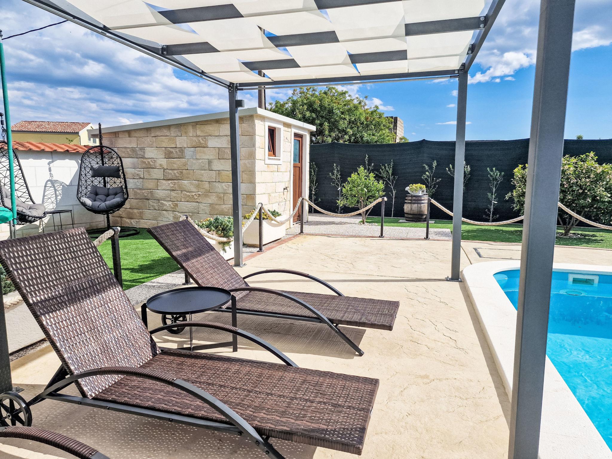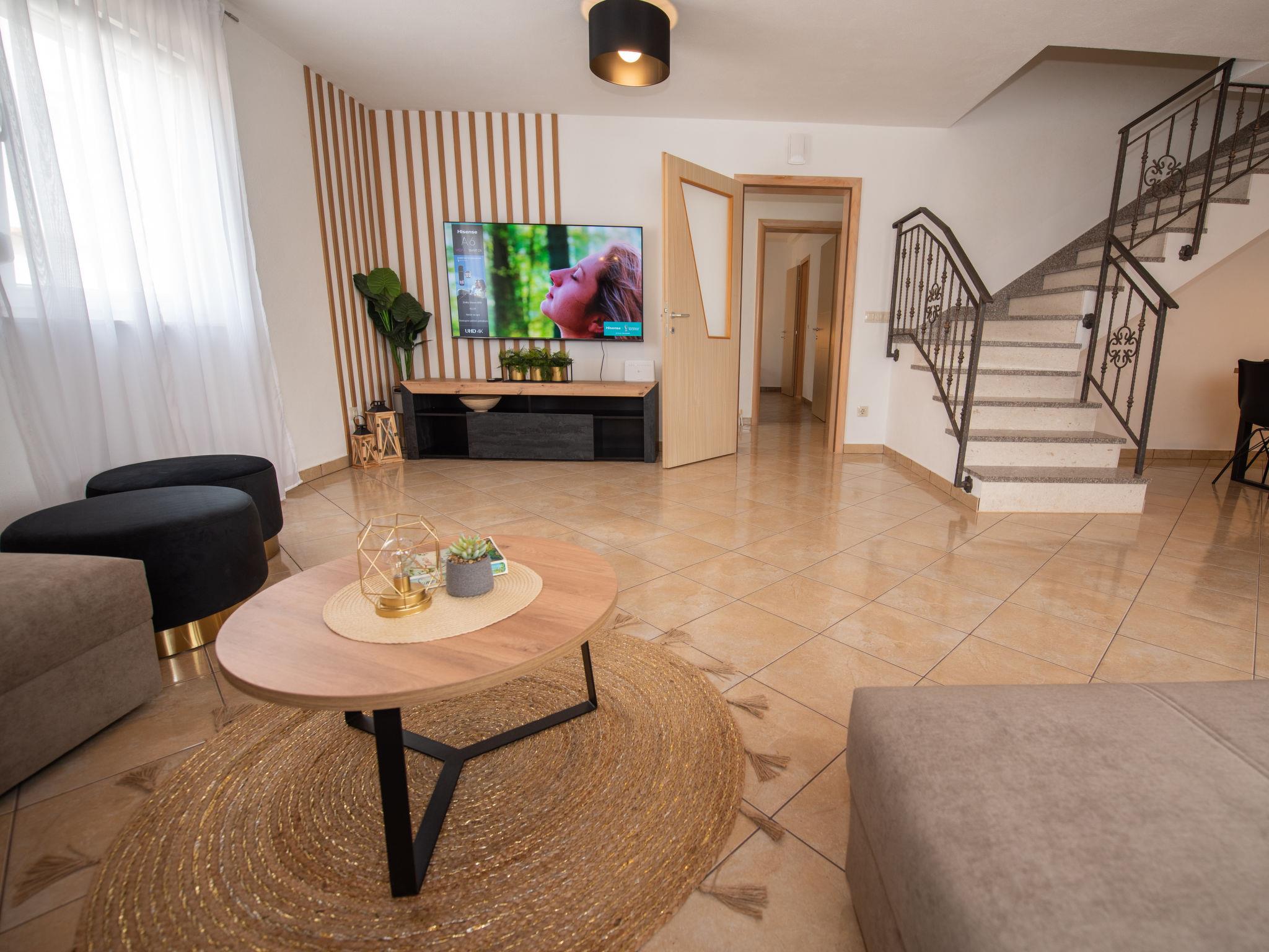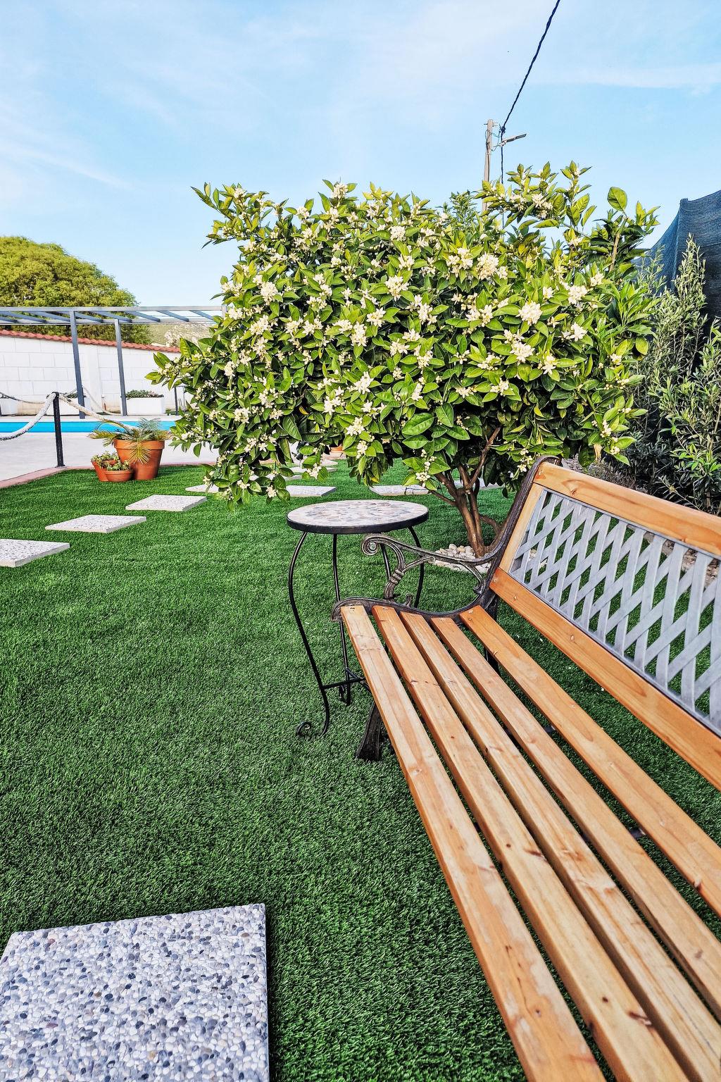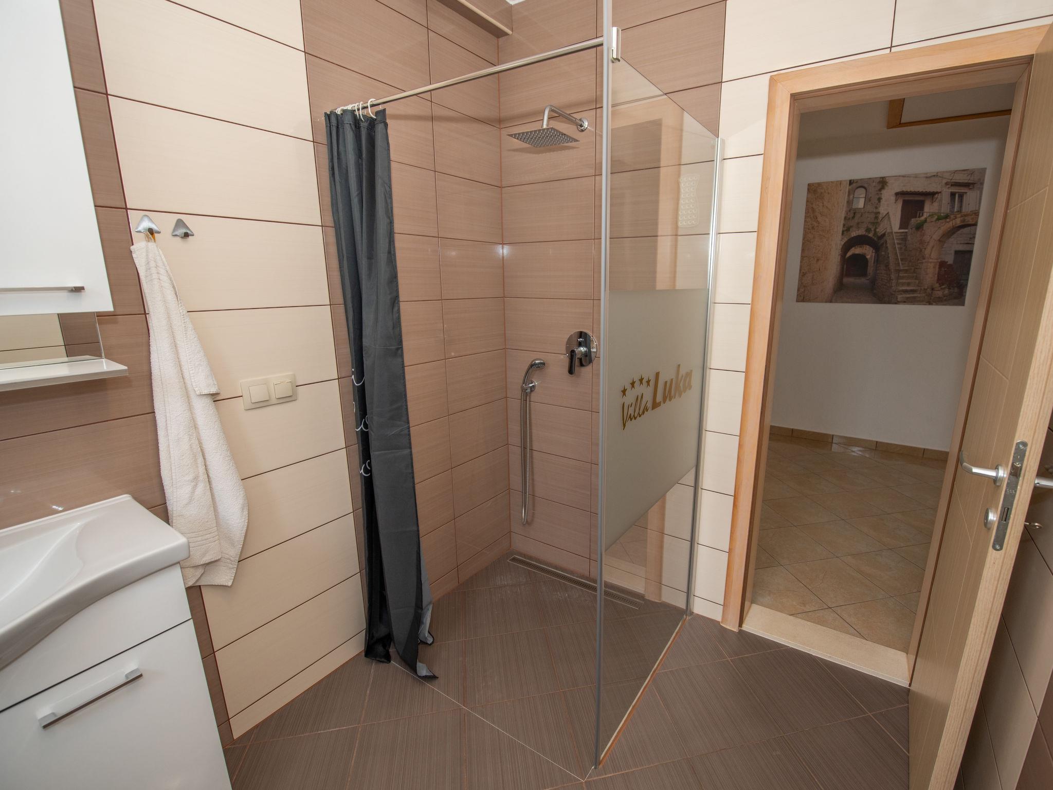 Einfamilienhaus "Luka", auf 2 Stockwerken. Im Weiler Plano, 7 km vom Zentrum von Trogir, 5 km vom Meer. Zur Alleinbenutzung: Grundstück 800 m2 (eingezäunt) mit Pflanzen, Schwimmbad eckig, beheizt (10 x 3 m, 150 cm tief, saisonale Verfügbarkeit: 01.Mai. - 01.Okt.) mit Innentreppe. Aussendusche, Sprudelbad, Poolhaus mit Kühlschrank und Kochherd, Terrasse (50 m2). Im Hause: Internetzugang, Fitnessraum, Tischfussball, Trampolin, Waschmaschine. Parkplatz (für 3 Autos) beim Haus auf dem Grundstück. Einkaufsgeschäft 900 m, Supermarkt 3 km, Restaurant 3 km, Bushaltestelle 350 m, Kieselstrand 5 km. Bitte beachten: Flugplatz 5 km vom Haus.