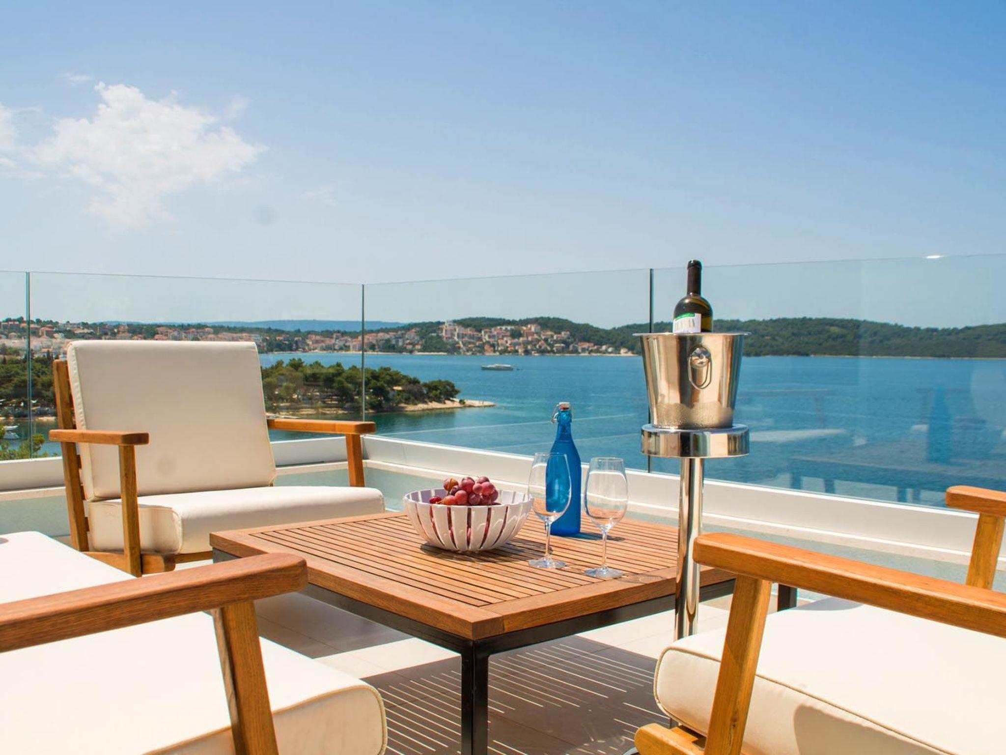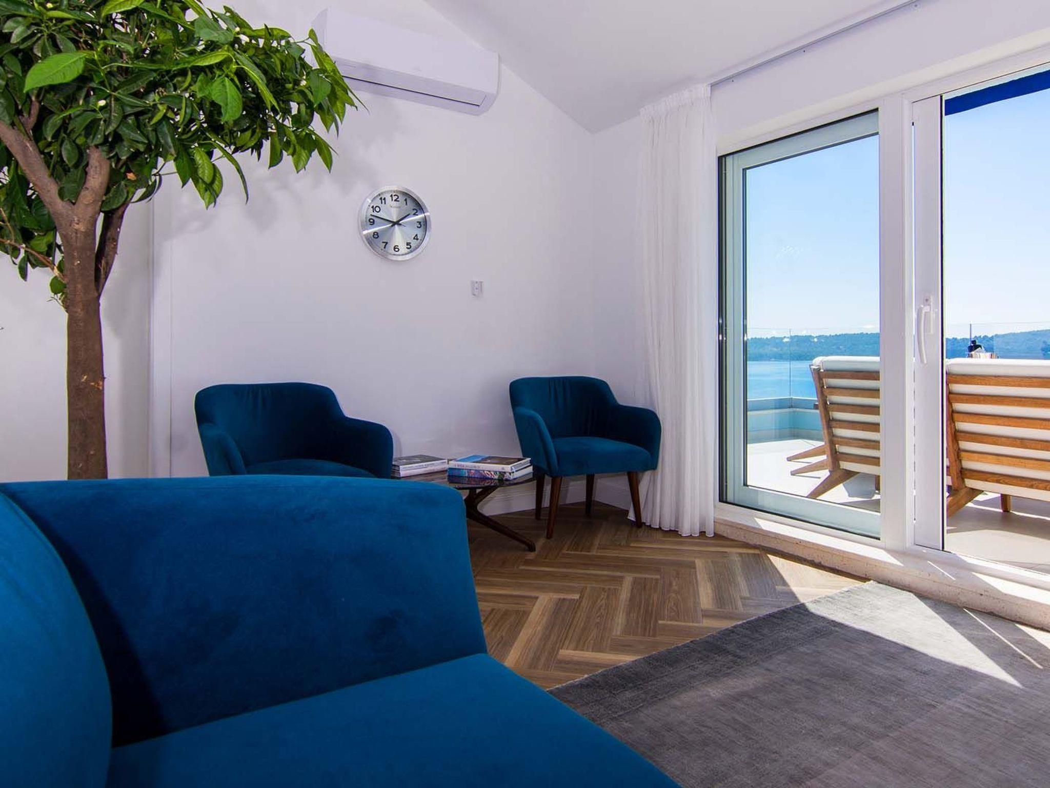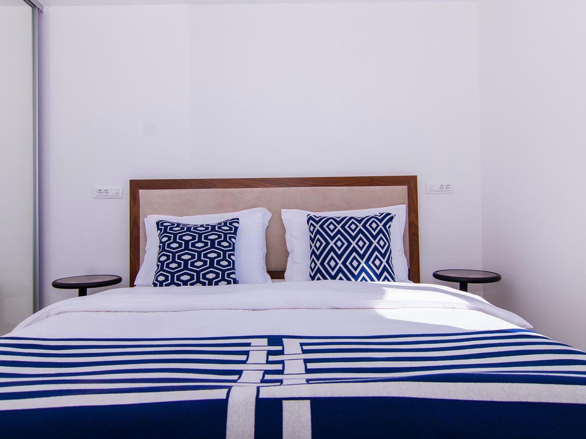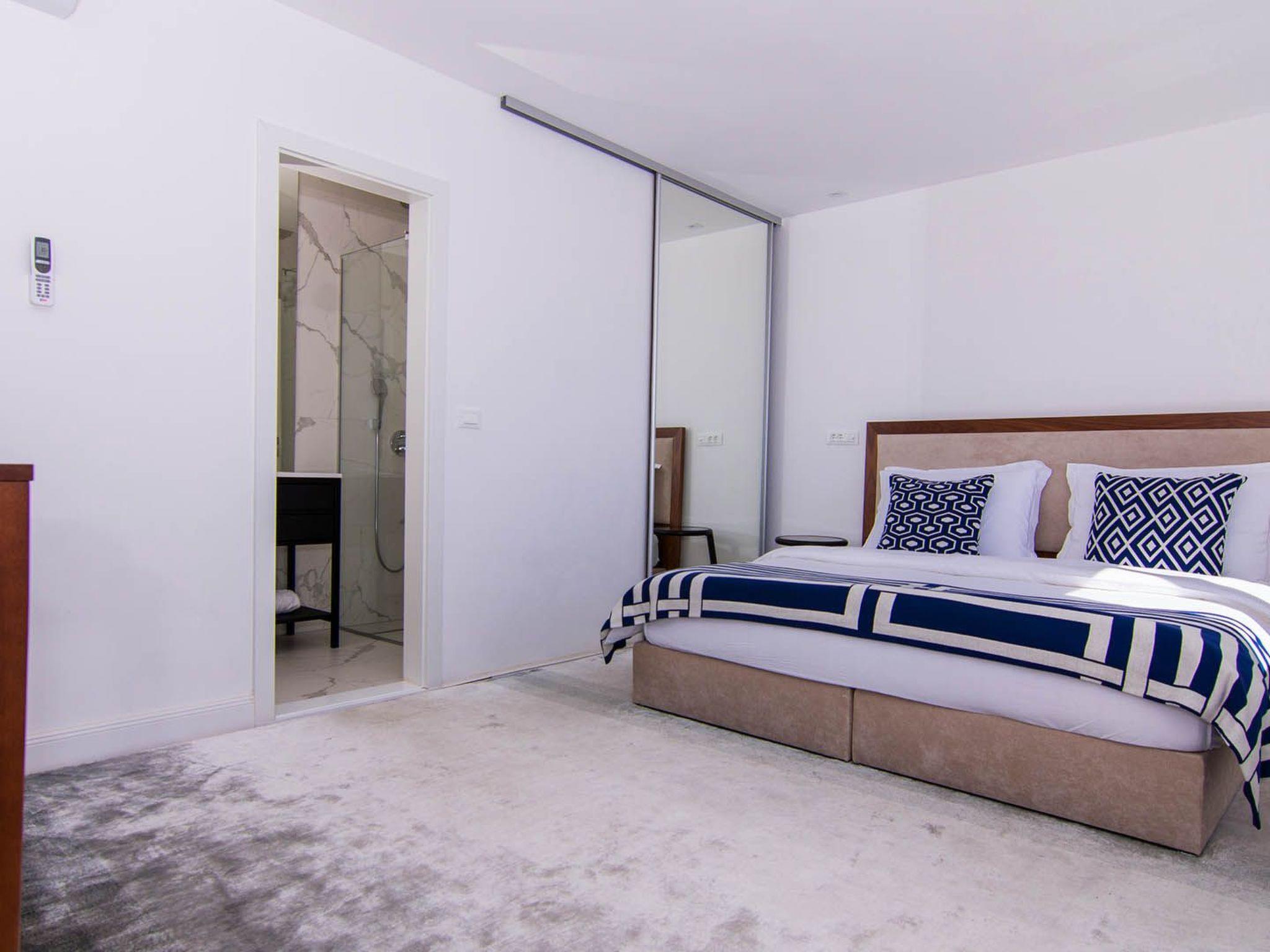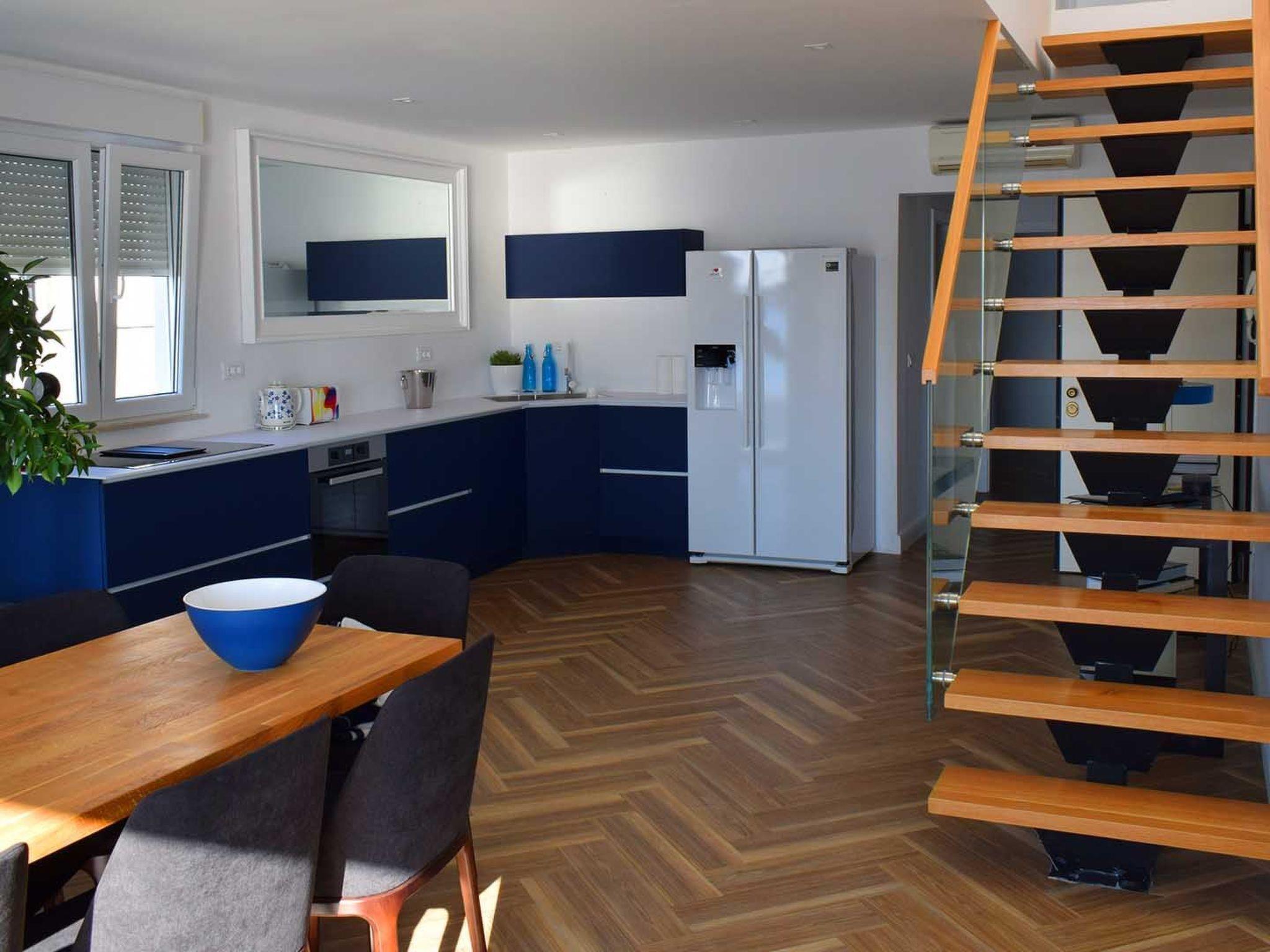 Das Apartment White Sky ist ein Duplex-Apartment. Die Wohnung besteht aus 5 Doppelschlafzimmern mit angrenzenden Bädern, 1 Halbbad, komfortablem und elegant eingerichtetem Wohnzimmer mit Essbereich und komplett ausgestatteter offener Küche. Das Wohnzimmer hat Zugang zu einem geräumigen Balkon mit atemberaubendem Meerblick, der sich über die umliegende Küste erstreckt. Die stilvolle Einrichtung verleiht der gesamten Wohnung einen unverwechselbaren Charakter und Charme. Die Wohnung hat eine Fläche von 200 m2 und zusätzlich einen 60 m2 großen Balkon. Die Wohnung White Sky kann bis zu 11 Personen beherbergen. Penthouse-Wohnung White Sky ist voll klimatisiert und ausgestattet mit Wi-fi, SAT-TV, Bügeleisen und Bügelbrett, Babybett, Hochstuhl, Herd, Backofen, Dunstabzugshaube, großer Kühlschrank mit Gefrierfach, Geschirrspüler, Mikrowelle (auf Anfrage erhältlich), Wasserkocher, Kaffeemaschine, Waschmaschine und Haartrockner. Das Grundstück bietet kostenlose Parkplätze. Genießen Sie Ihren Aufenthalt in der luxuriösen Wohnung mit Meerblick White Sky und verbringen Sie einen unvergesslichen Urlaub auf der Insel Ciovo!