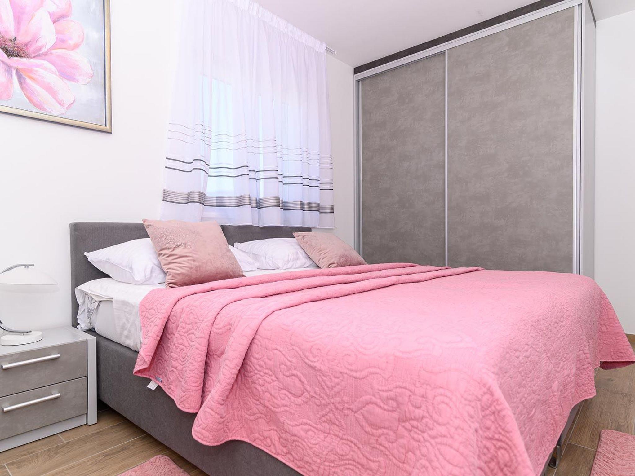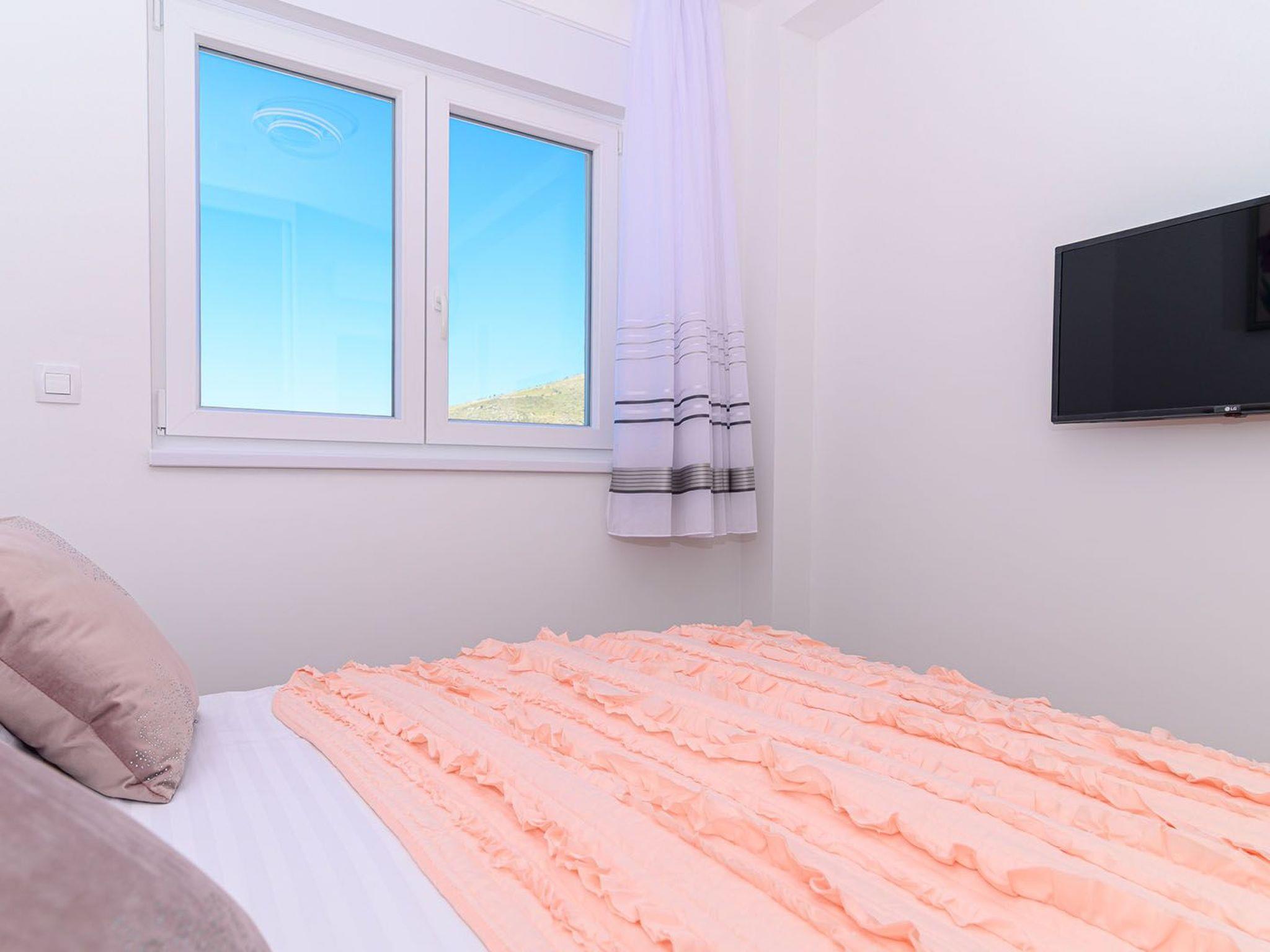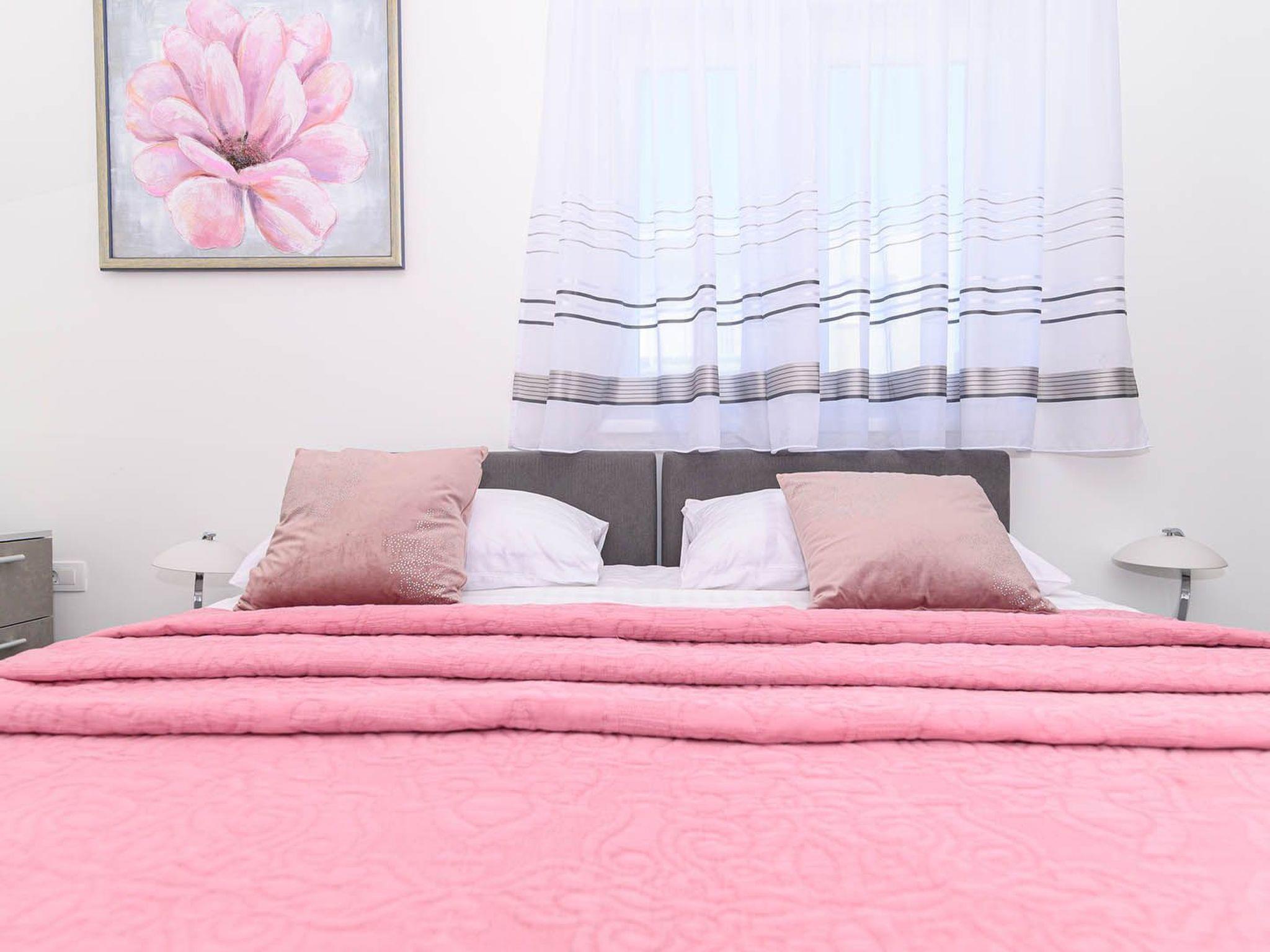 Diese stilvolle und luftige Wohnung befindet sich im dritten Stock eines Mehrfamilienhauses und ist über eine Treppe oder einen Aufzug erreichbar. Die Wohnung besteht aus zwei elegant eingerichteten Schlafzimmern mit Klimaanlage, SAT-TV und Doppelbetten (ein Bett kann in zwei Einzelbetten getrennt werden), zwei Badezimmern mit Dusche, einer voll ausgestatteten Küche, einem Wohnzimmer mit Essbereich und einem überdachten Balkon mit Meerblick, der durch eine große Glasschiebetür zugänglich ist. Der atemberaubende Blick vom Balkon über die nahegelegene Insel Ciovo und den Yachthafen verleiht diesem Apartment einen besonderen Charme und das Gefühl, eine wahre Oase der Ruhe und Entspannung zu sein.Apartment Style ist voll klimatisiert und ausgestattet mit SAT-TV, Wi-Fi-Internet, Bügeleisen und Bügelbrett, Babybett, Hochstuhl, Safe, Moskitonetze, Elektroherd, Backofen, Dunstabzugshaube, Kühlschrank mit Gefrierfach, Geschirrspüler, Mikrowelle, Wasserkocher, Kaffeemaschine (Filter), Toaster, Grillausrüstung, Grill im Freien, Waschmaschine, Trockner und Haartrockner. Das Anwesen bietet Parkplätze, 1 im Freien und 1 in der Garage, kostenlos.