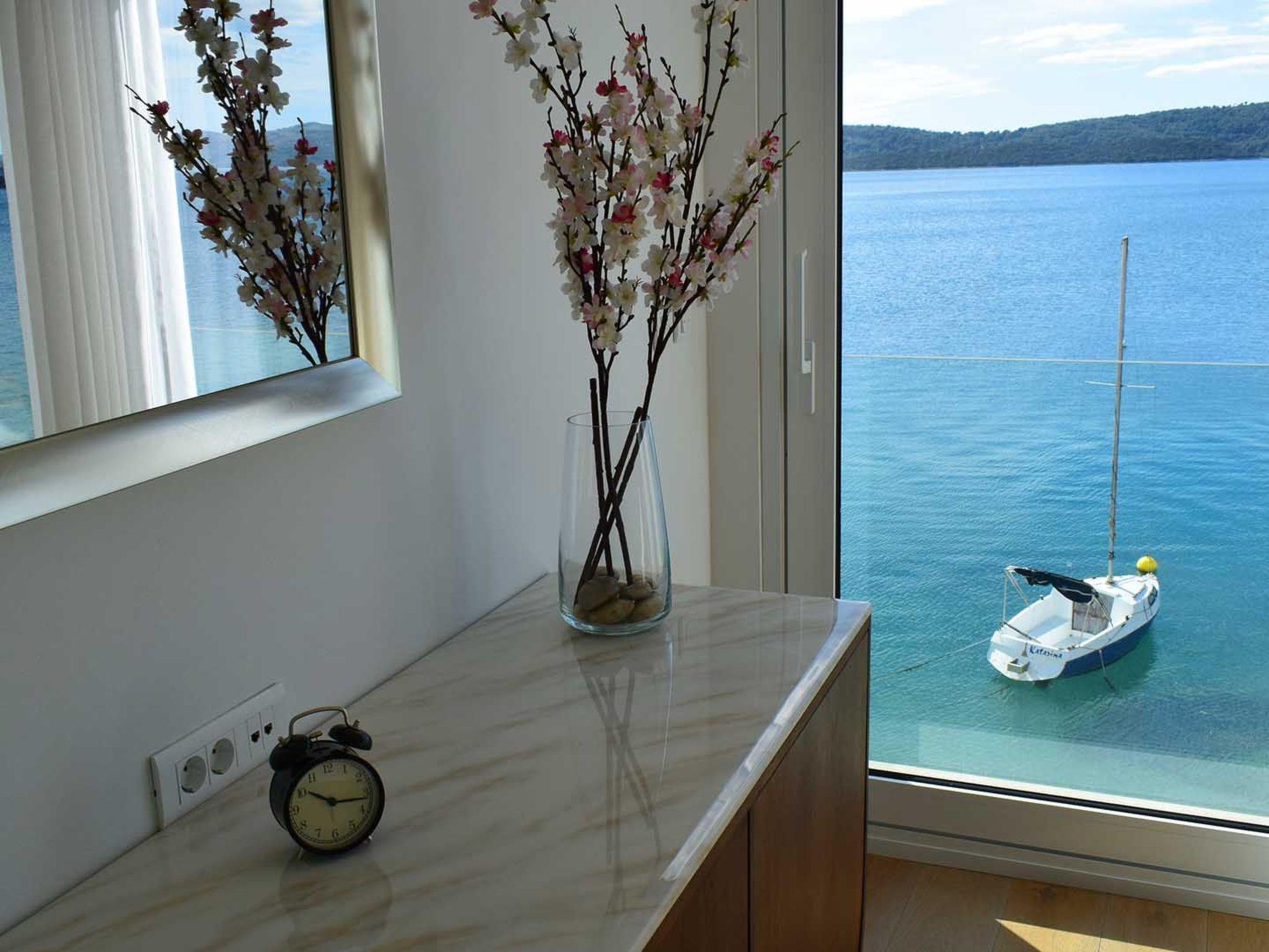 Villa Luna Azzurra ist eine luxuriöse, wunderschön eingerichtete Ferienvilla am Strand auf der kleinen Insel Ciovo, nur 900 m vom historischen, UNESCO-geschützten Stadtzentrum von Trogir entfernt, das mit einer Brücke mit der Insel verbunden ist. Der Komplex Azzurro befindet sich in der Nähe des Flughafens Split (6 km), des Yachthafens in Trogir (900 m) und des Hauptstrandes in Okrug Gornji (600 m), während verschiedene Restaurants und Lebensmittelgeschäfte zu Fuß erreichbar sind.