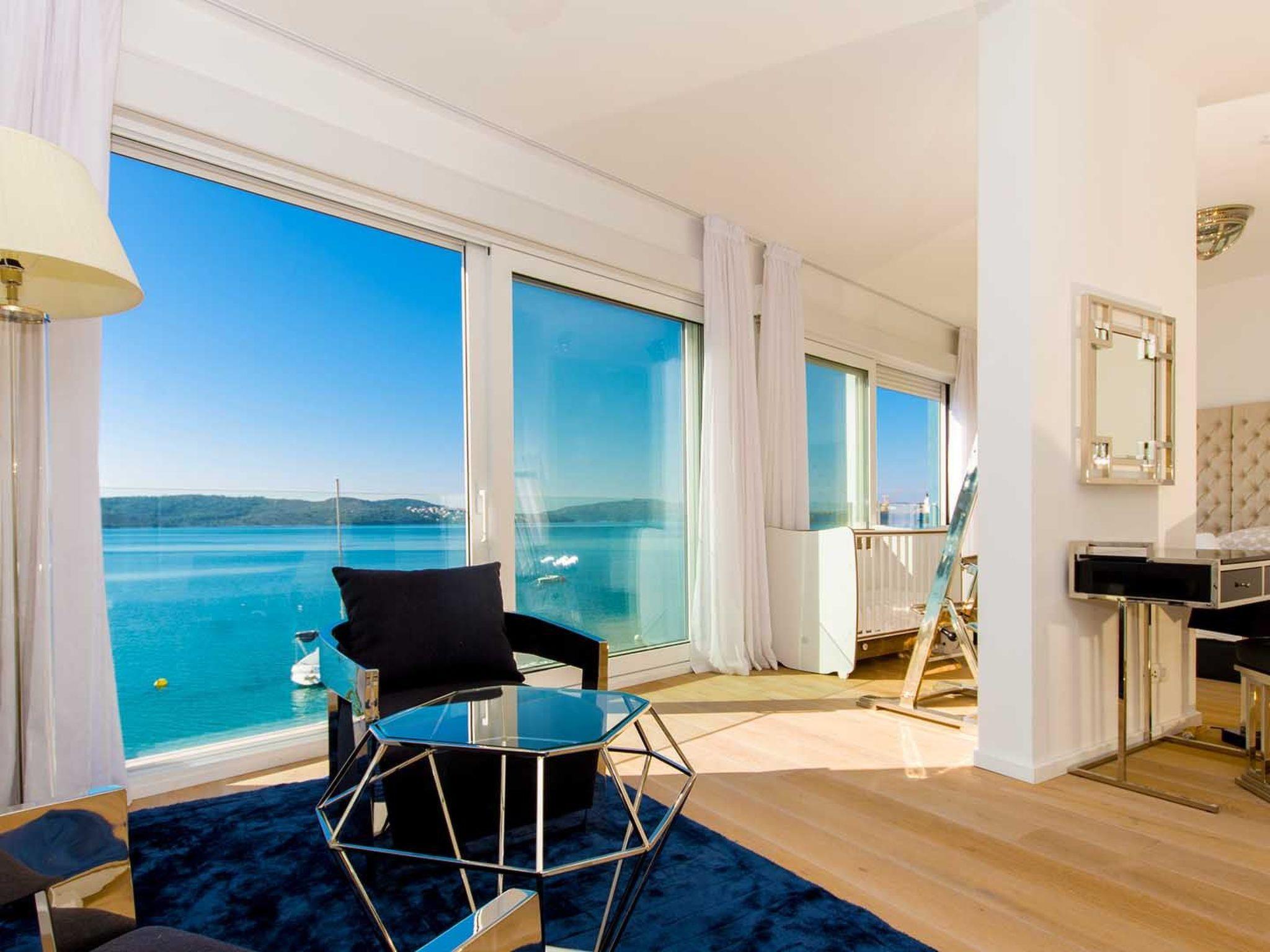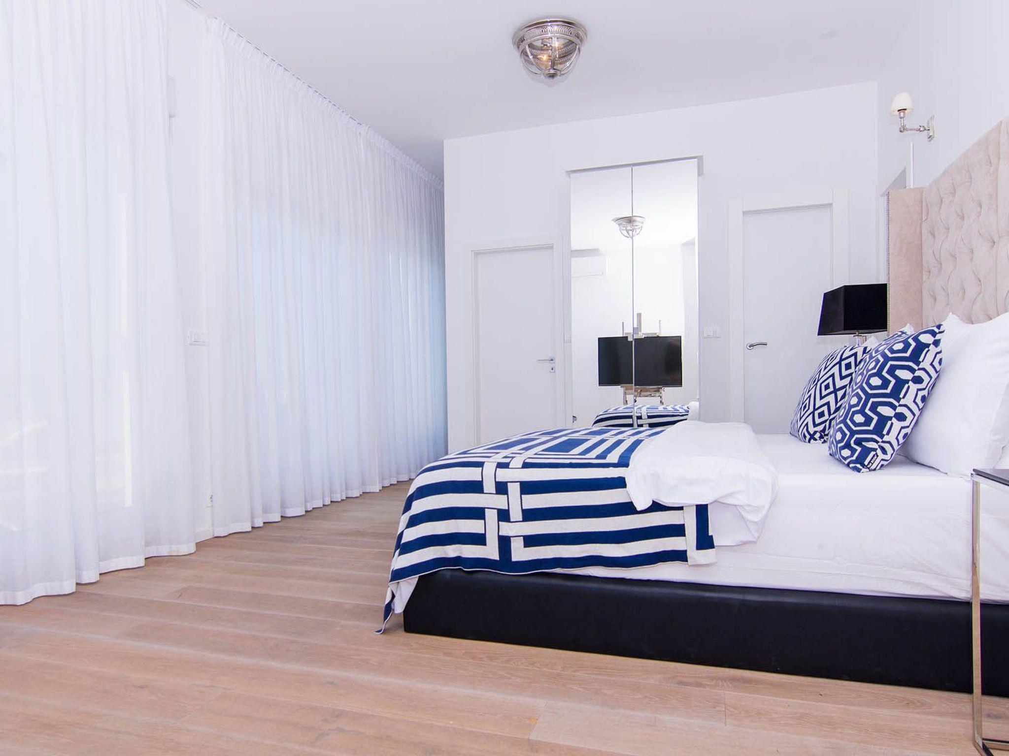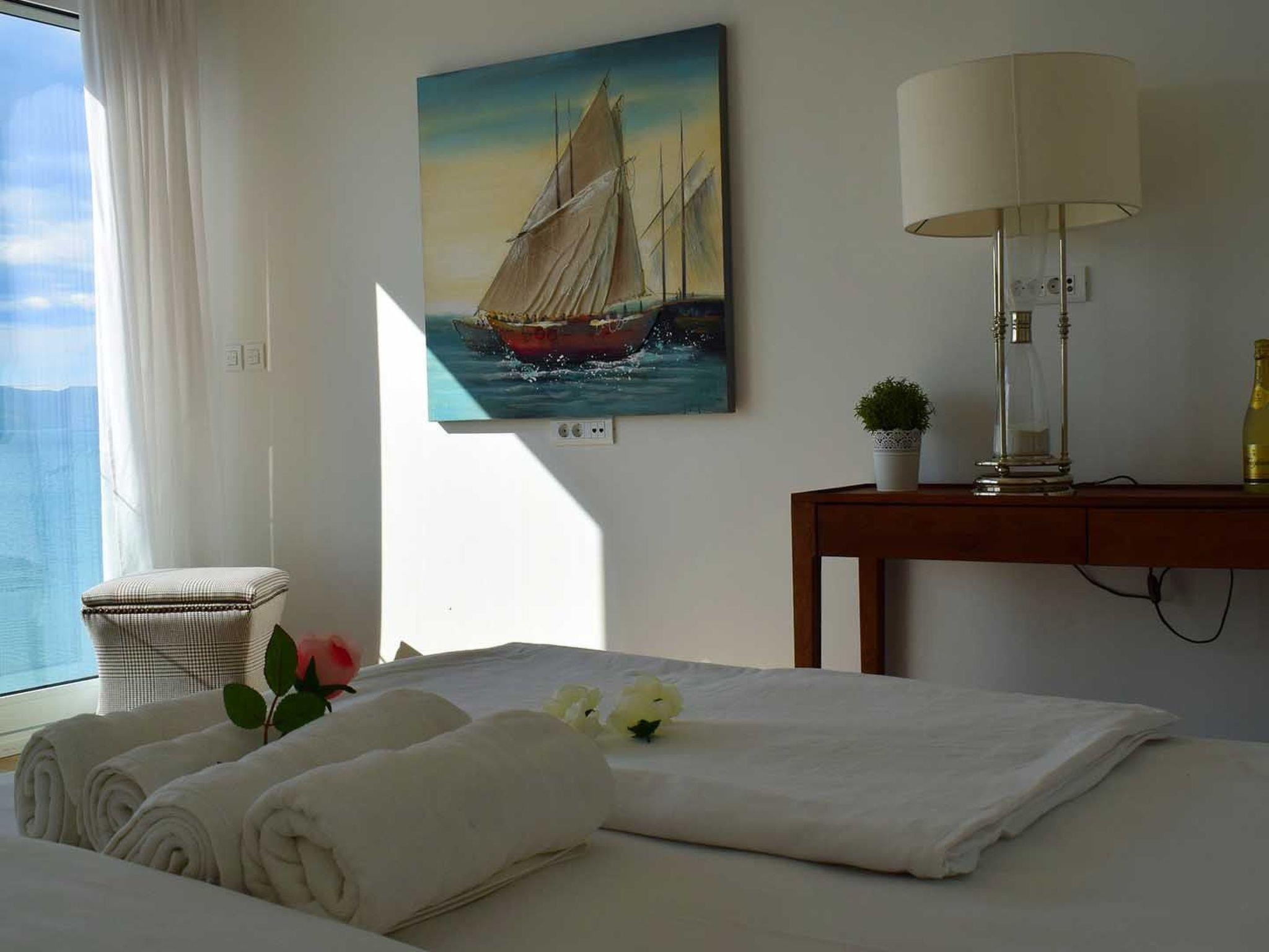 Die Villa Luna Azzurra besteht aus 5 Doppelzimmern, 5 Badezimmern und 1 Halbbad. Es ist eine geeignete Unterkunft für die Gesamtzahl von 10 Personen. Jedes Schlafzimmer hat einen traumhaften Blick auf das offene Meer, während das Schlafzimmer im dritten Stock auch Zugang zu einem geräumigen Balkon mit Meerblick hat, der mit Gartenmöbeln ausgestattet ist. Das Erdgeschoss ist als komfortabler Wohnbereich mit voll ausgestatteter offener Küche und einem halben Bad konzipiert. Das Erdgeschoss hat Zugang zu einer großen Terrasse mit atemberaubendem Meerblick und einem kleinen Garten, ideal zum Entspannen bei einem Sonnenuntergang mit einem Glas Wein. Die erste, zweite und dritte Etage sind als Ruhezonen mit Schlafzimmern und angrenzenden Bädern konzipiert und mit einer Innentreppe verbunden. Im ersten und zweiten Stock befinden sich zwei luxuriöse Schlafzimmer mit großen Doppelbetten, französischen Balkonen mit Meerblick und eigenen Badezimmern mit Dusche. Das Hauptschlafzimmer mit großem Doppelbett, eigenem Badezimmer und Zugang zu einem großen Balkon mit Meerblick befindet sich im dritten Stock der Villa. Die Villa Luna Azzurra ist voll klimatisiert und mit Kabel-SAT-TV, Wi-Fi, Bügeleisen und Bügelbrett, Waschmaschine und einem Safe ausgestattet. Den Gästen steht ein großer, eingezäunter Parkplatz zur Verfügung, während Babybett und Hochstuhl auf Anfrage erhältlich sind.