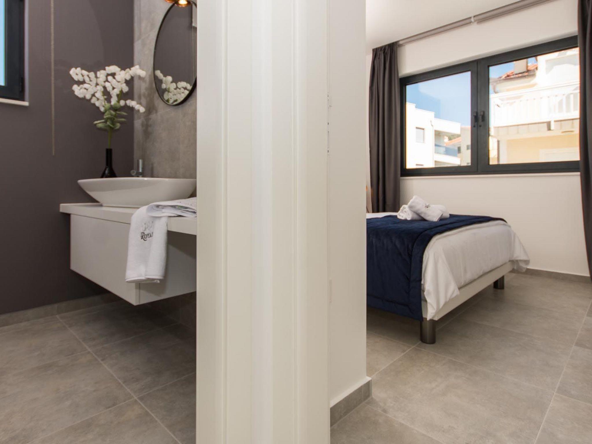 Die Villa Prestige ist perfekt konzipiert, um unseren Gästen das Gefühl zu geben, in einem kleinen luxuriösen Resort zu wohnen. Das Haus besteht aus 4 luxuriösen Apartments Prestige und 2 luxuriösen Apartments Prestige Deluxe. Jedes Apartment ist komplett klimatisiert und verfügt über 2 Doppelschlafzimmer, 2 Bäder, ein luxuriös eingerichtetes Wohn-/Esszimmer, eine komplett ausgestattete Küche und einen Balkon mit Meerblick. Babybett und Hochstuhl sind auf Anfrage erhältlich. Die Gäste haben Zugang zu einem gemeinsamen Wellnessbereich mit zwei Whirlpools, finnischer Sauna, Dusche und modernen Liegestühlen im Erdgeschoss. Das Apartment Prestige Deluxe ist eine geeignete Unterkunft für 4 Personen. Das Apartment besteht aus 2 Schlafzimmern mit Doppelbett, 2 Badezimmern mit Dusche, einer offenen Küche, einem Wohn-/Esszimmer und einem Balkon mit Meerblick und Gartenmöbeln. Das Hauptschlafzimmer hat ein eigenes Bad und Zugang zum Balkon mit Meerblick.