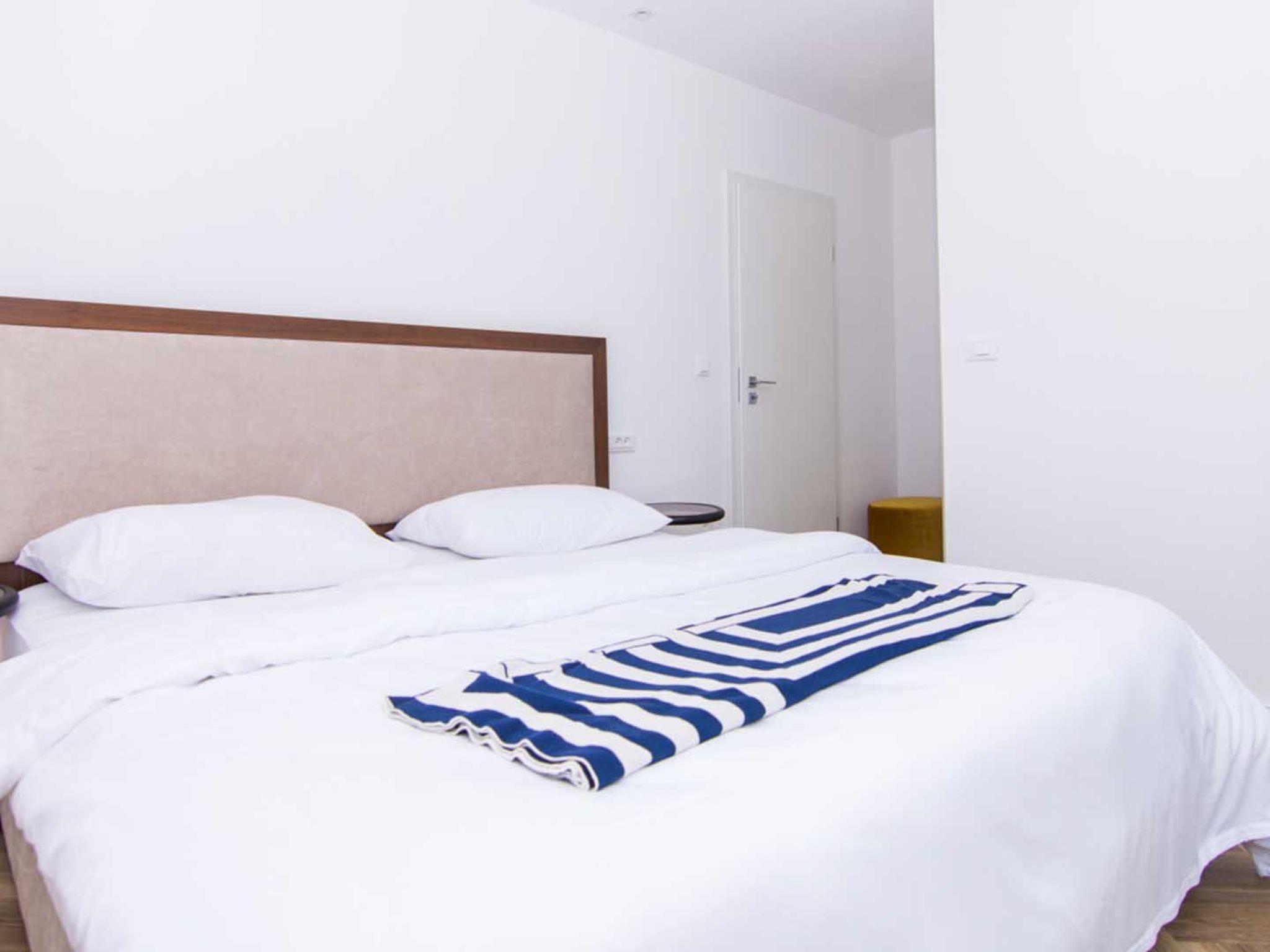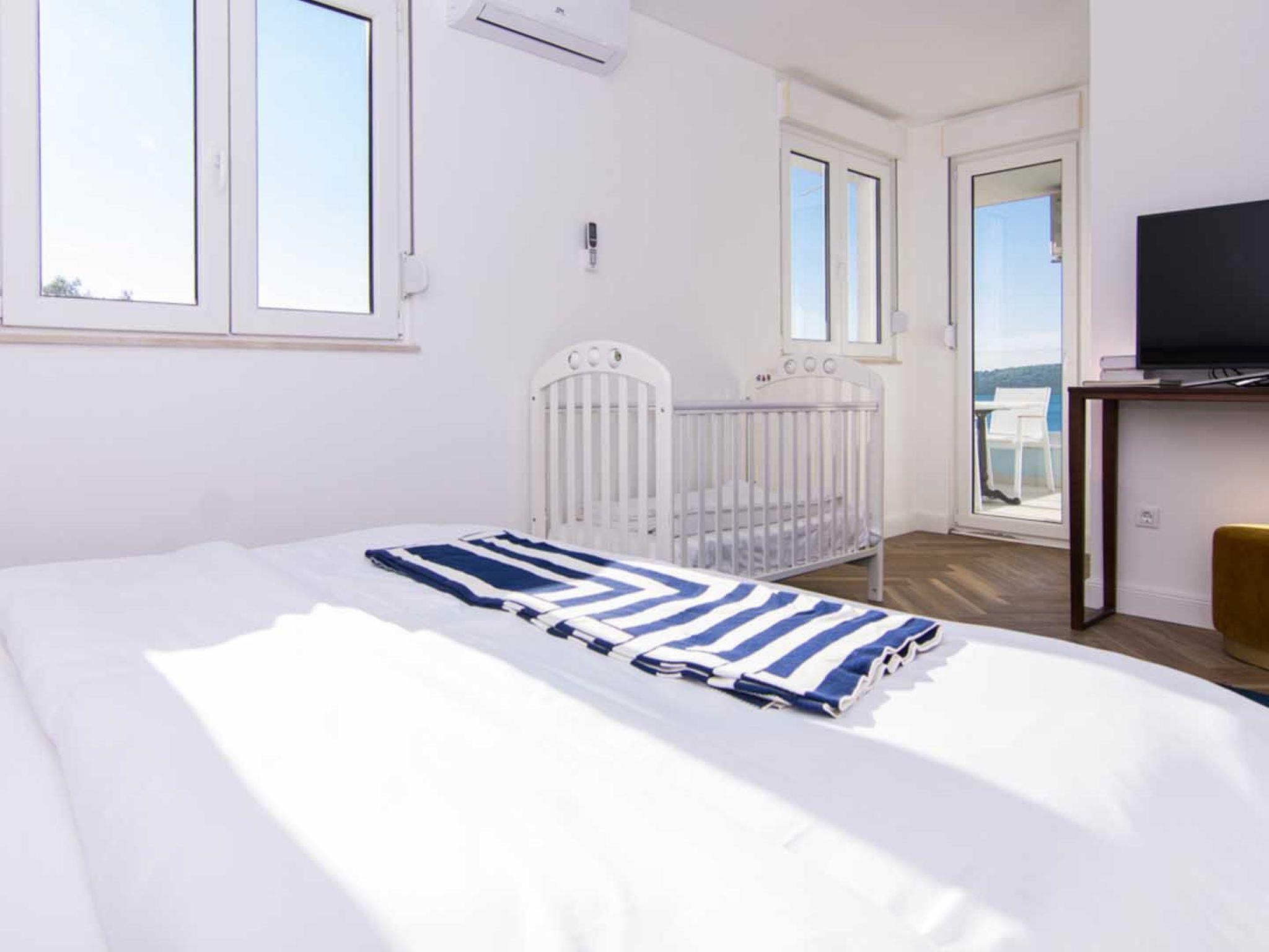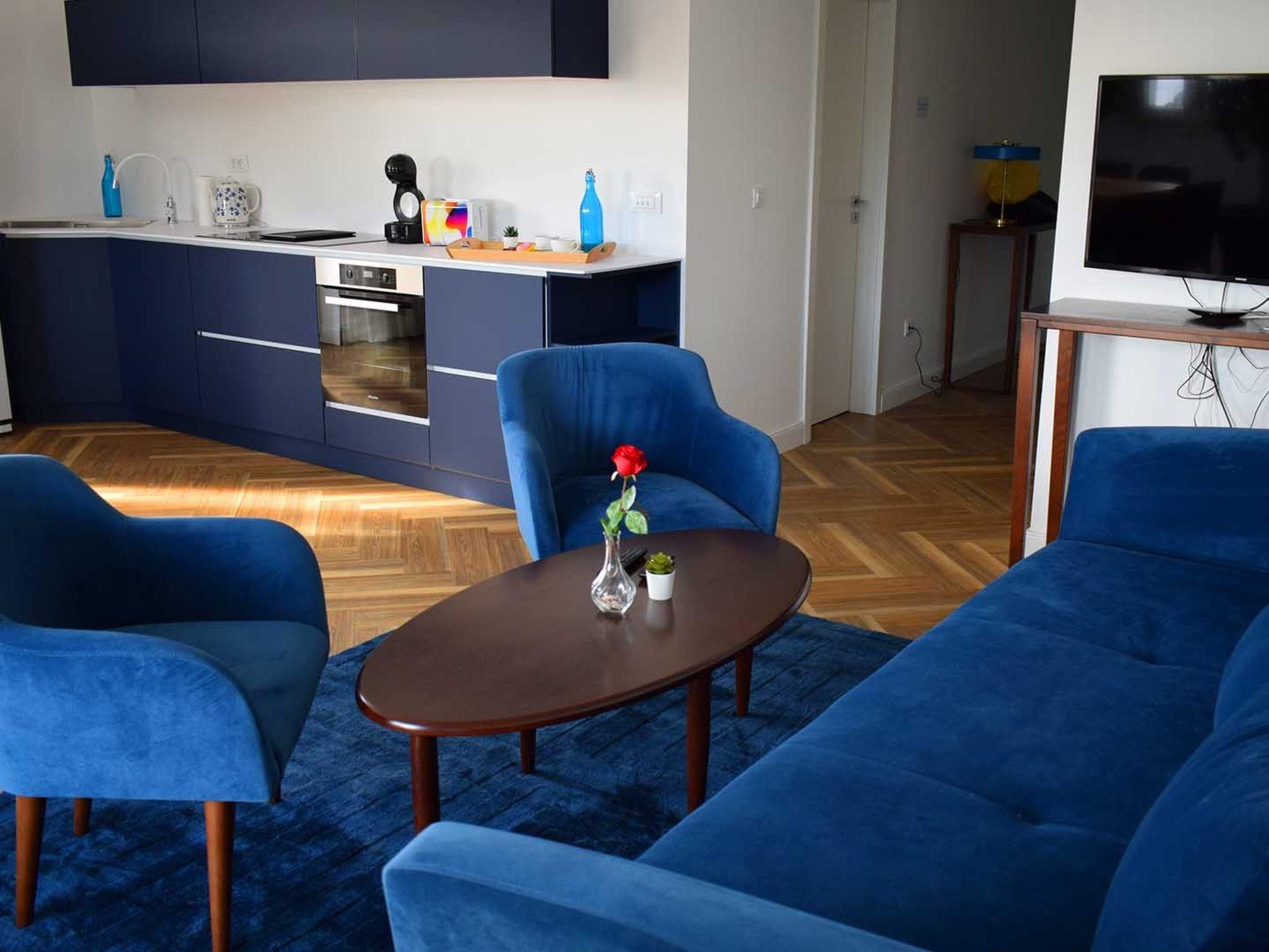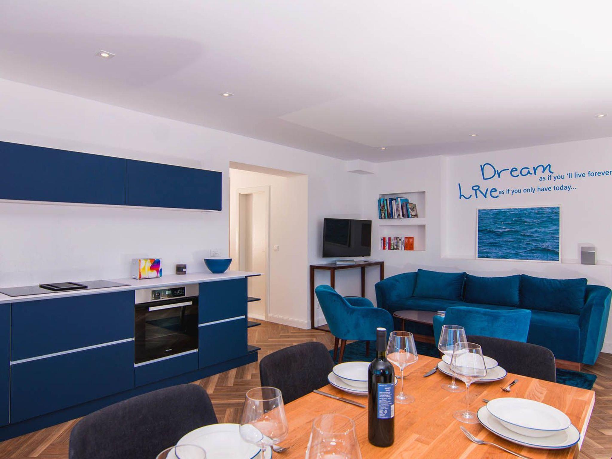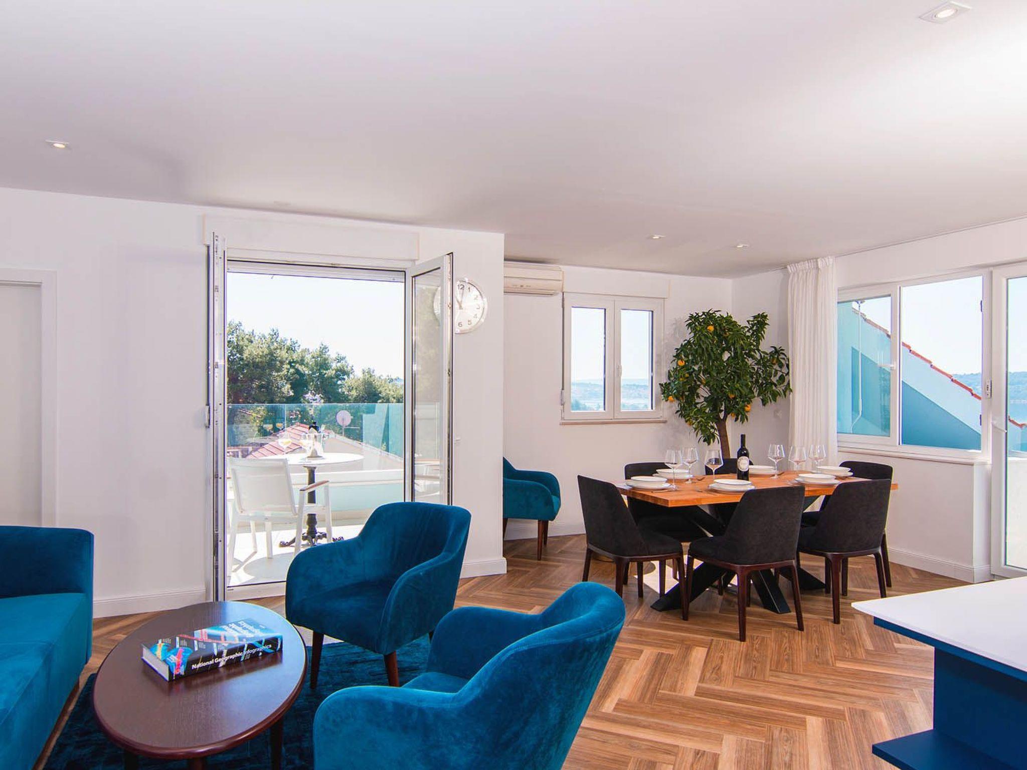Das Apartment Blue Sky besteht aus 3 Doppelschlafzimmern mit eigenem Bad und Zugang zu Balkonen mit Meerblick, 1 Halbbad, einem modernen und elegant eingerichteten Wohnzimmer mit Essbereich und einer komplett ausgestatteten offenen Küche. Das Wohnzimmer hat Zugang zu einem geräumigen Balkon mit atemberaubendem Meerblick, der sich über die umliegende Küste erstreckt. Die stilvolle Einrichtung der Penthouse-Wohnung Blue Sky verleiht jedem Raum einen unverwechselbaren Charakter und Charme. Die Wohnung hat eine Fläche von 110 m2 und zusätzlich eine 50 m2 große Terrasse. Die Wohnung Blue Sky kann bis zu 6 Personen beherbergen. Penthouse-Wohnung Blue Sky ist voll klimatisiert und ausgestattet mit Wi-fi, SAT-TV, Bügeleisen und Bügelbrett, Babybett, Hochstuhl, Herd, Backofen, Dunstabzugshaube, großer Kühlschrank mit Gefrierfach, Geschirrspüler, Mikrowelle (auf Anfrage erhältlich), Wasserkocher, Kaffeemaschine, Waschmaschine und Haartrockner. Das Anwesen bietet kostenlose Parkplätze. Genießen Sie Ihren Aufenthalt in der Penthouse-Wohnung Blue Sky und verbringen Sie einen unvergesslichen Urlaub auf der Insel Ciovo!