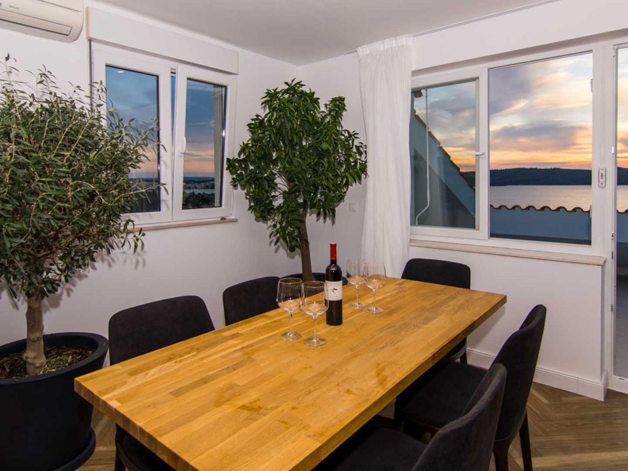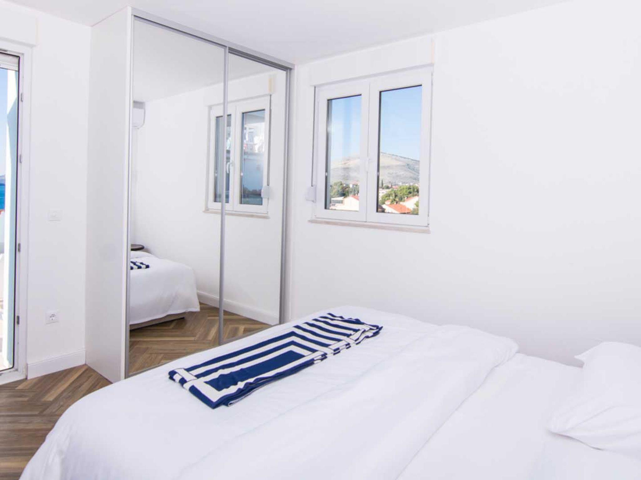 Die Wohnung ist perfekt gelegen auf halbem Weg zwischen dem historischen UNESCO-geschützten Zentrum der Stadt Trogir (1 km) und dem Hauptstrand auf der Insel Ciovo (1 km), die verschiedene Restaurants, Lebensmittelgeschäfte, Strandbars, Wassersportaktivitäten und Ausflüge bietet, die jeden Geschmack und Anforderungen erfüllen können. Die Wohnung befindet sich in der Nähe eines Restaurants (200 m) und eines Lebensmittelladens (180 m), des Flughafens Split (6 km) und des Yachthafens (900 m).