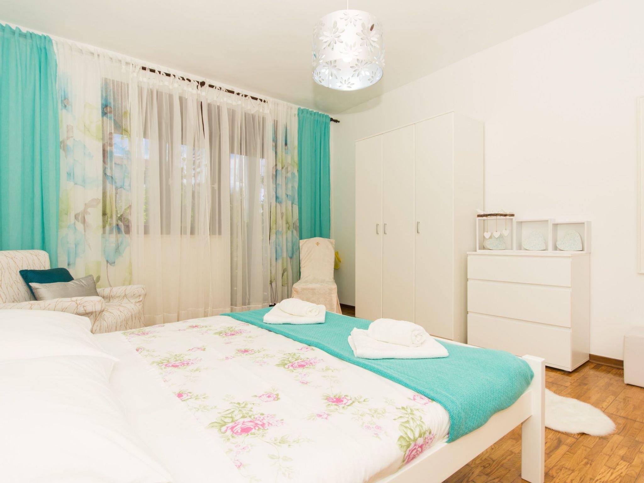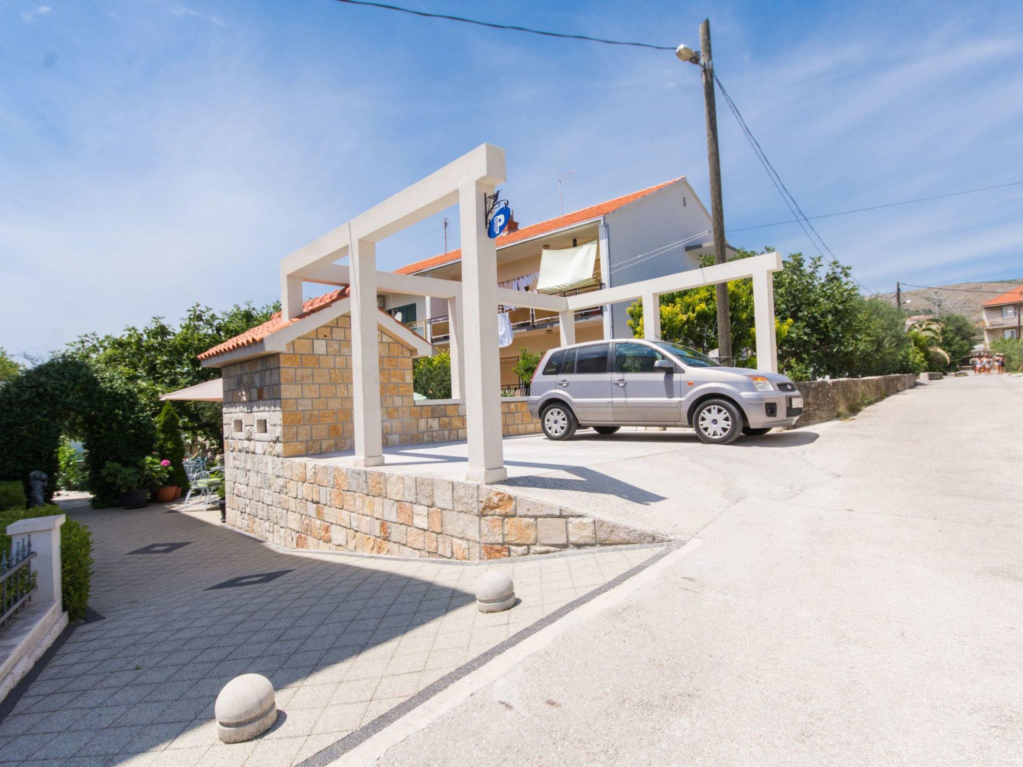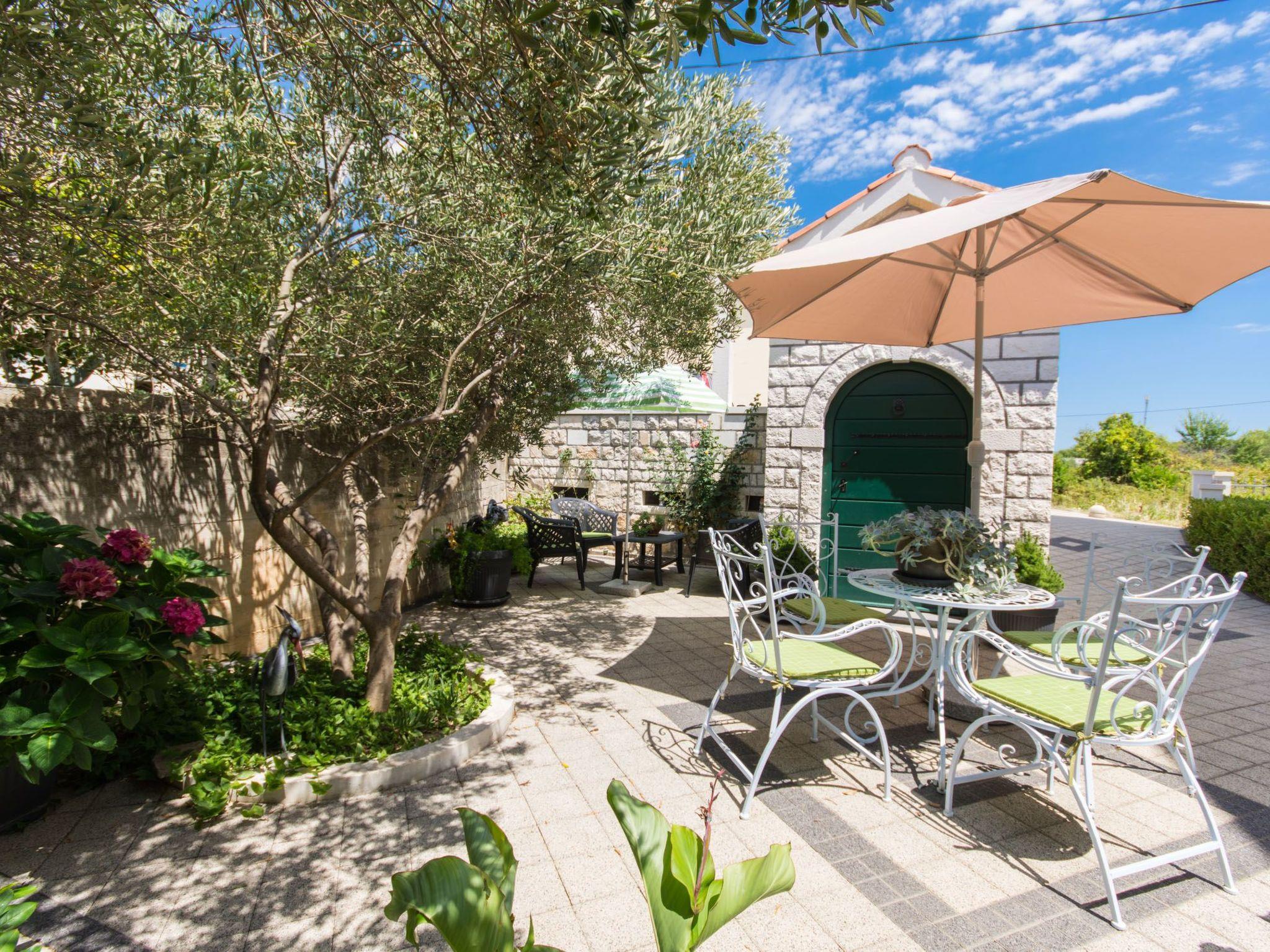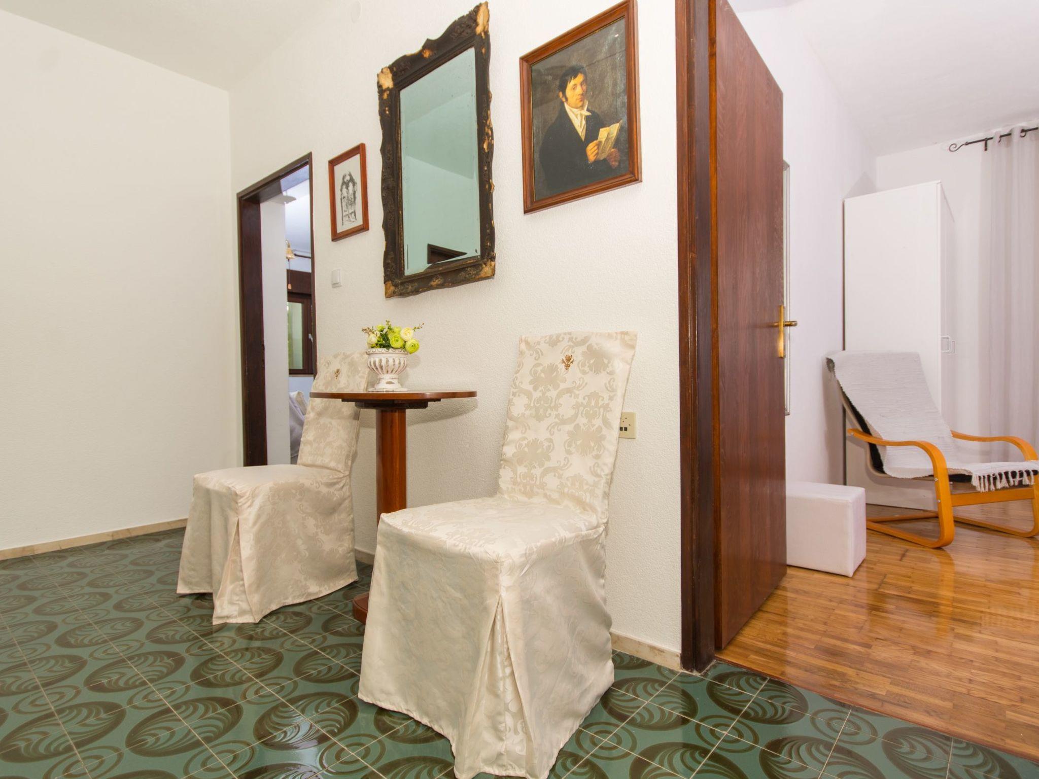 Geräumige Ferienwohnung mit eigener Terrasse und einem schönen, grünen Garten mit einem traditionellen Steingrill zur gemeinsamen Nutzung Diese modern eingerichtete, 160 m² große Ferienwohnung liegt nur 7 Gehminuten von der Altstadt von Trogir entfernt. Der nächstgelegene Strand ist nur 0,5 km von der Wohnung entfernt.