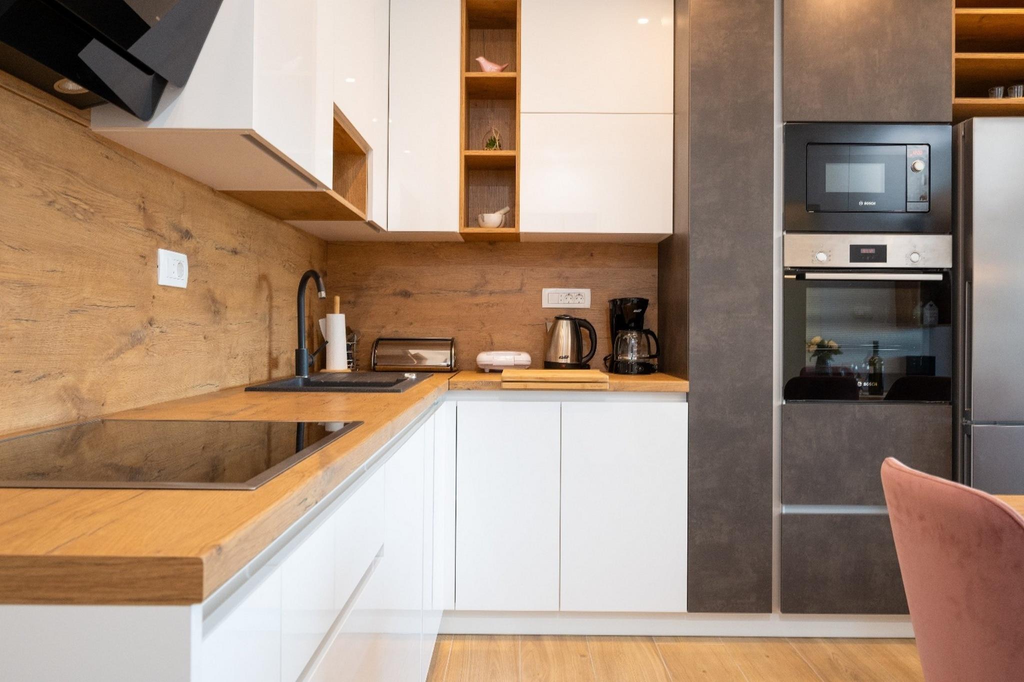An exquisite and stylish apartment in Trogir combines luxury living with the charm of a historic coastal town, offering a unique experience that highlights both comfort and the rich cultural heritage of Croatia. Whether for a vacation or a more permanent residence, Trogir provides a beautiful backdrop for an enjoyable lifestyle.Trogir is a charming coastal town in Croatia, located in Split-Dalmatia County, known for its rich history, stunning architecture, and picturesque waterfront. Note: Pets are not allowed. Private parking, reservation is not required. Free Wi-fi is available throughout the property. This two -bedroom can accommodate up to five guests. It features a TV and is combined with a living room and kitchen. The private bathroom is equipped with a shower and toilet. Thanks to its excellent location, everything you'll need for your vacation is just a short walk away from the property. Grocery stores-1.83 km , cafes-718.00 m, restaurants—1.41 km. The beach is 706.00 m away from the property. The airport is 3.11 km away from the property.