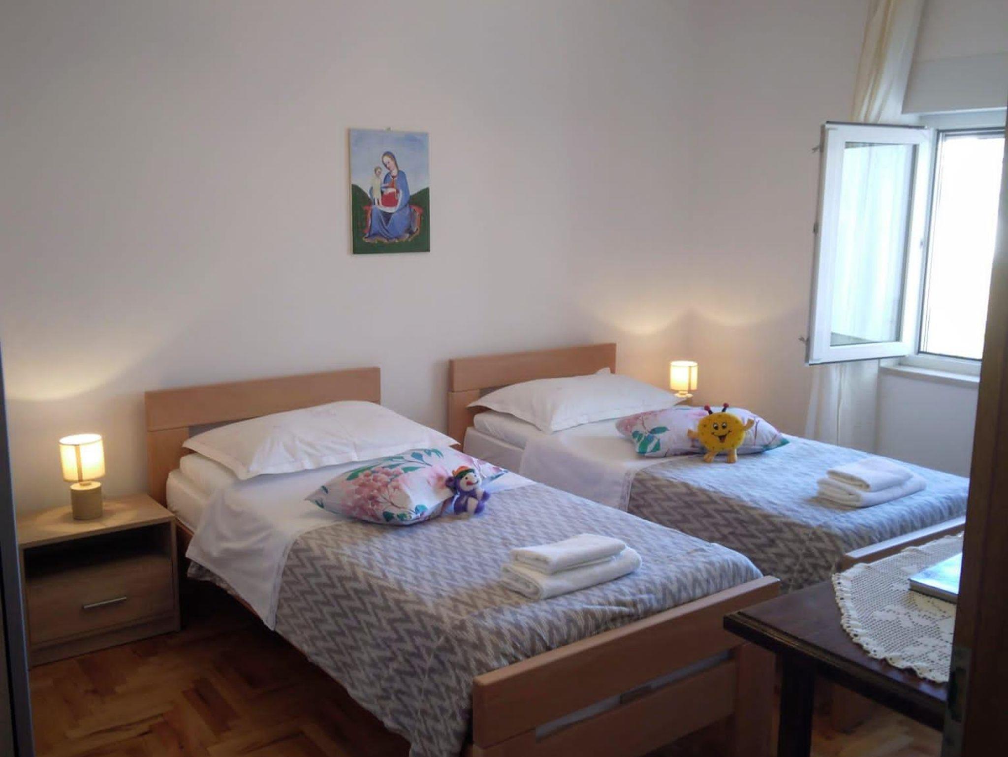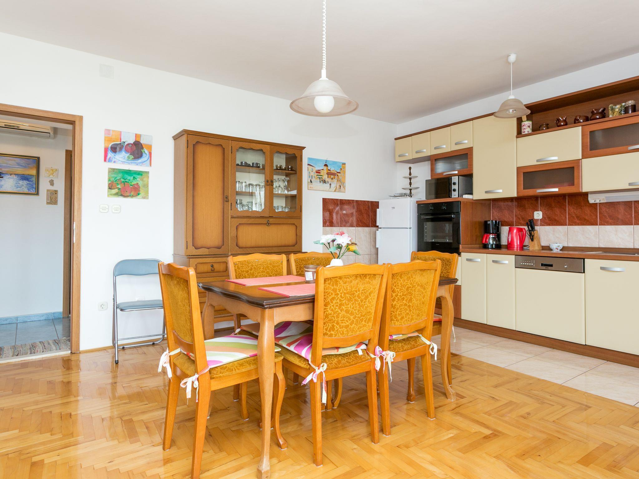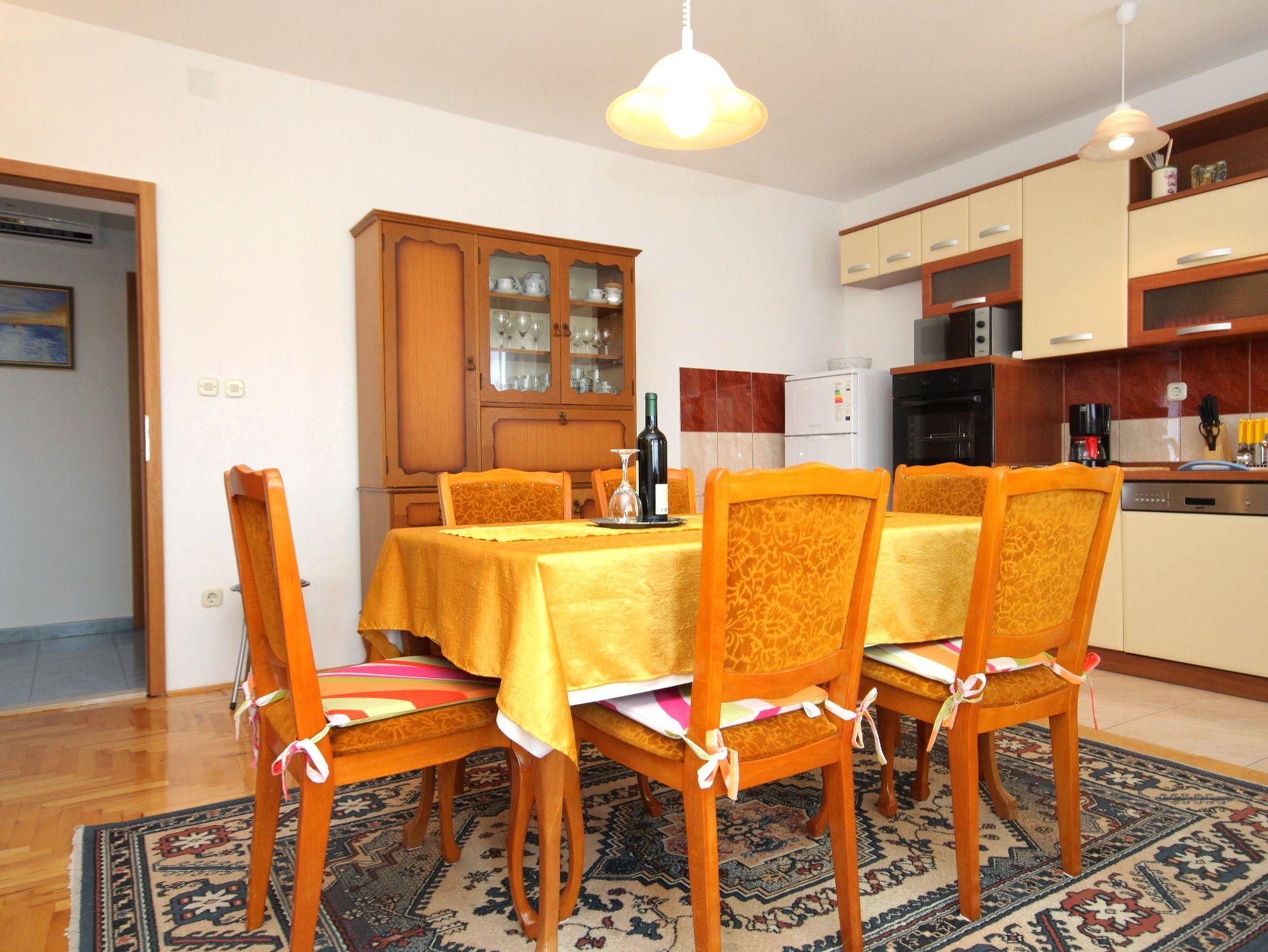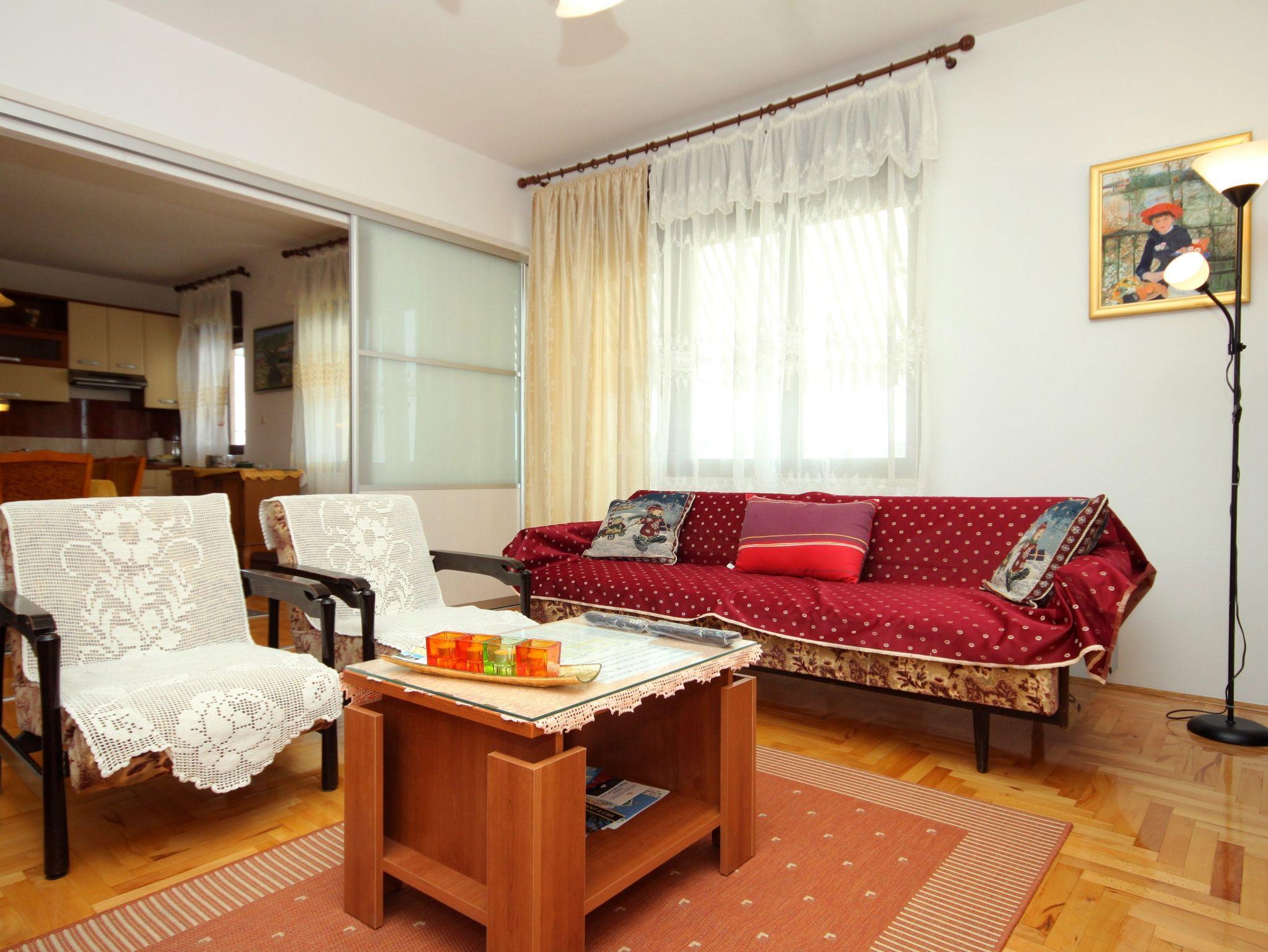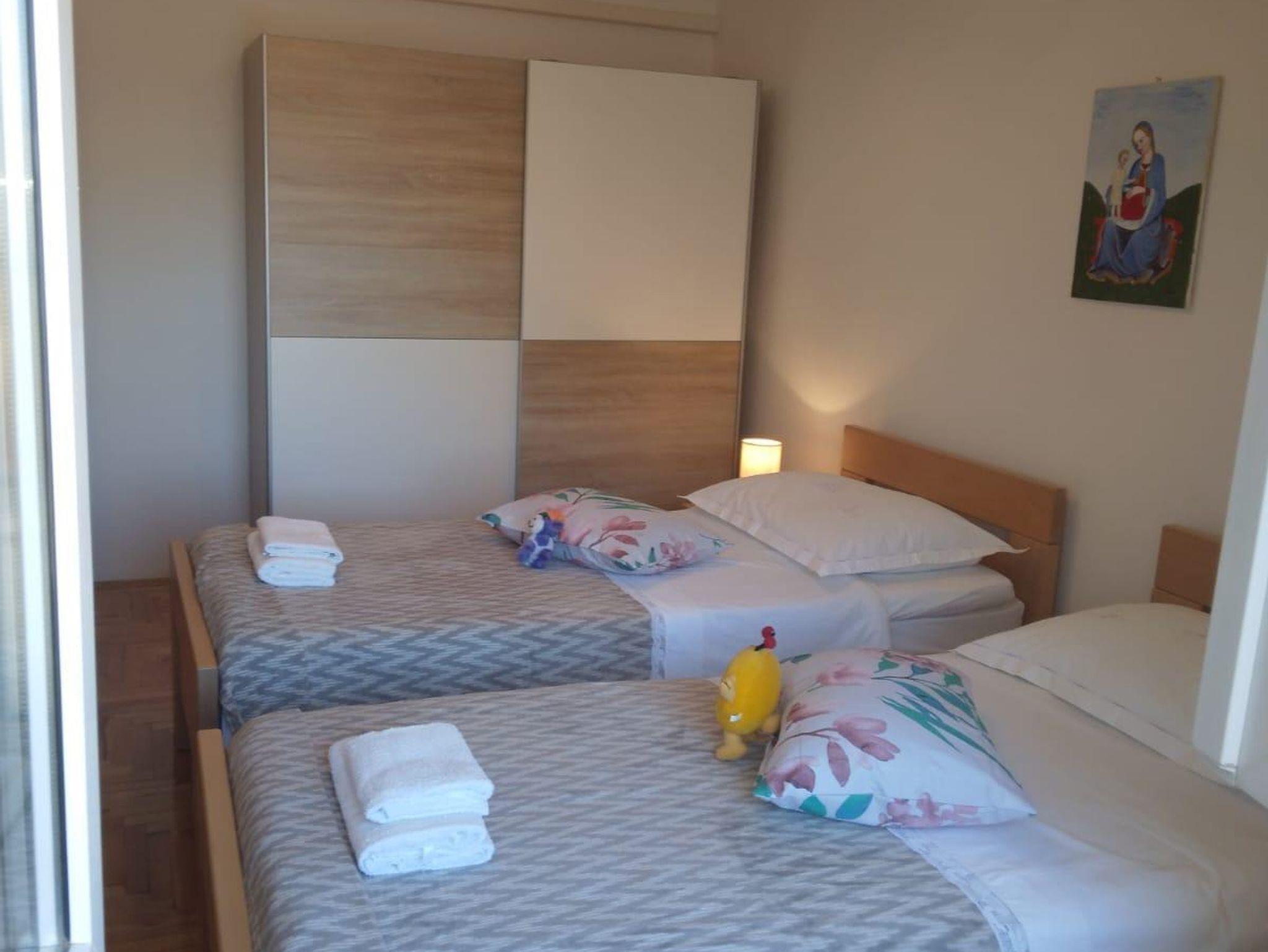 Ferienwohnung bietet Platz für 4 Gäste. Die Betten sind in Schlafzimmern, die es 2 gibt, innerhalb einer Gesamtfläche von 92m2, angeordnet. Die Gäste haben eine eigene Terrasse zur Verfügung, auf der sie in warmen Sommernächten genießen können. Das Apartment bietet Meerblick. Es ist erlaubt, Speisen auf dem Gemeinschafts-Grill vorzubereiten. IM PREIS INBEGRIFFEN: Kurtaxe, Endreinigung, Klimatisierung, Parkplatz, Internet, Bügeleisen, Bügelbrett, Föhn, Sonnenschirm, Liegestühle. VERBINDLICHE ZUSÄTZLICHE KOSTEN: Aufzahlung für Kurzaufenthalte (prozentualer Zuschlag pro Nächtigungsanzahl: 30% - 1, 20% - 2, 10% - 3). Die Verfügbarkeit zusätzlicher Dienstleistungen in Ihrem reservierten Termin und die Preise derselben (falls nicht aufgeführt) müssen im Voraus überprüft werden. Zusätzliche Dienstleistungen die in der Zahlungsaufforderung nicht aufgeführt sind werden direkt beim Vermieter bezahlt, angenommen der Gast nutzt auch diese.