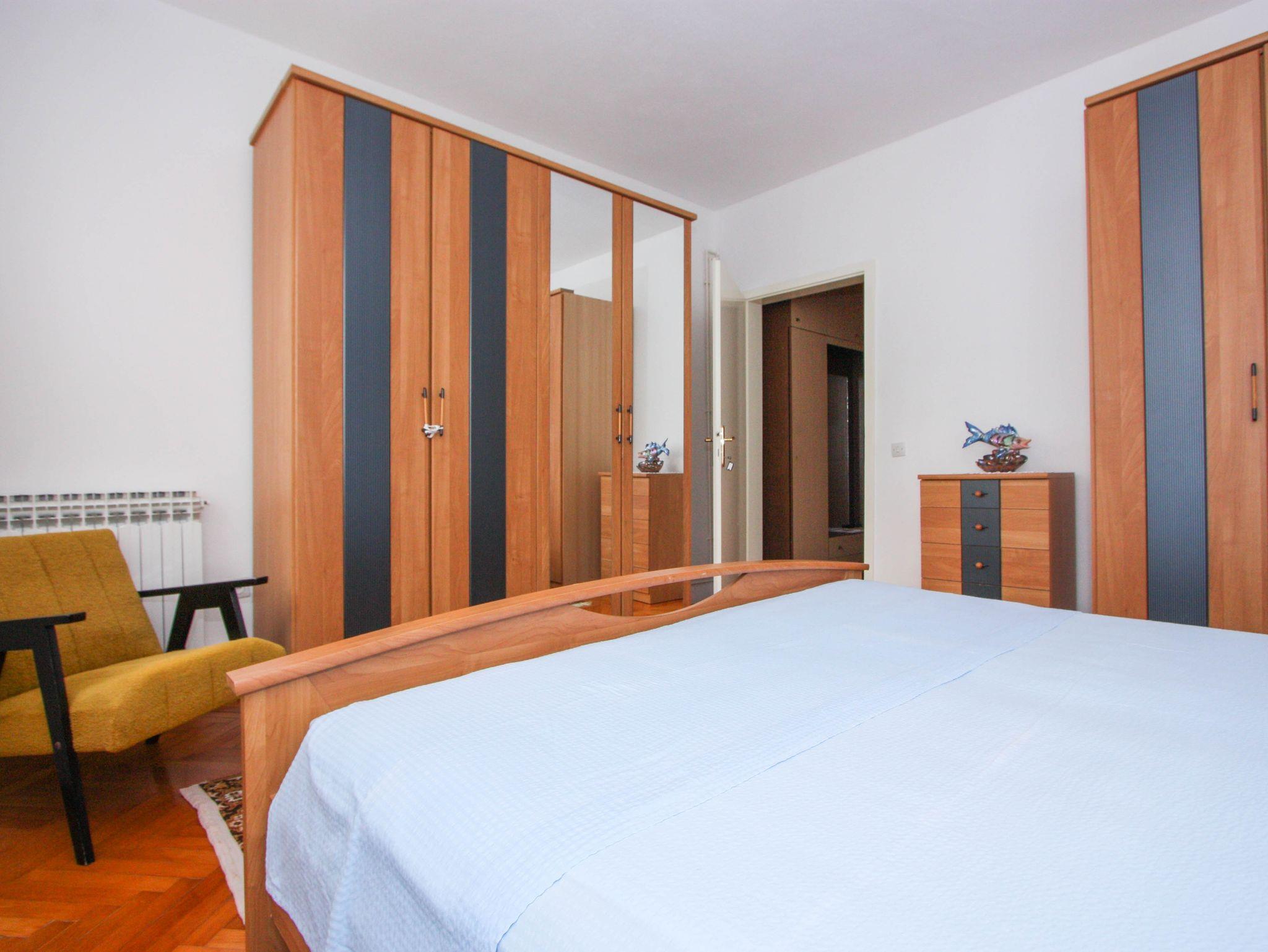 Ferienwohnung bietet Platz für 5 Gäste. Die Betten sind in Schlafzimmern, die es 2 gibt, innerhalb einer Gesamtfläche von 58m2, angeordnet. Die Gäste haben eine eigene Terrasse zur Verfügung, auf der sie in warmen Sommernächten genießen können. Das Apartment bietet Meerblick. Es ist erlaubt, Speisen auf dem Gemeinschafts-Grill vorzubereiten. IM PREIS INBEGRIFFEN: Kurtaxe, Endreinigung, Klimatisierung, Parkplatz, Internet, Kinderbett, Bügeleisen, Bügelbrett, Föhn. VERBINDLICHE ZUSÄTZLICHE KOSTEN: Aufzahlung für Kurzaufenthalte (prozentualer Zuschlag pro Nächtigungsanzahl: 30% - 1, 20% - 2, 10% - 3). UNVERBINDLICHE ZUSÄTZLICHE KOSTEN: Wäschewaschen (5,00 € Waschen), Zusatzbett (20,00 € pro Nacht). Die Verfügbarkeit zusätzlicher Dienstleistungen in Ihrem reservierten Termin und die Preise derselben (falls nicht aufgeführt) müssen im Voraus überprüft werden. Zusätzliche Dienstleistungen die in der Zahlungsaufforderung nicht aufgeführt sind werden direkt beim Vermieter bezahlt, angenommen der Gast nutzt auch diese.