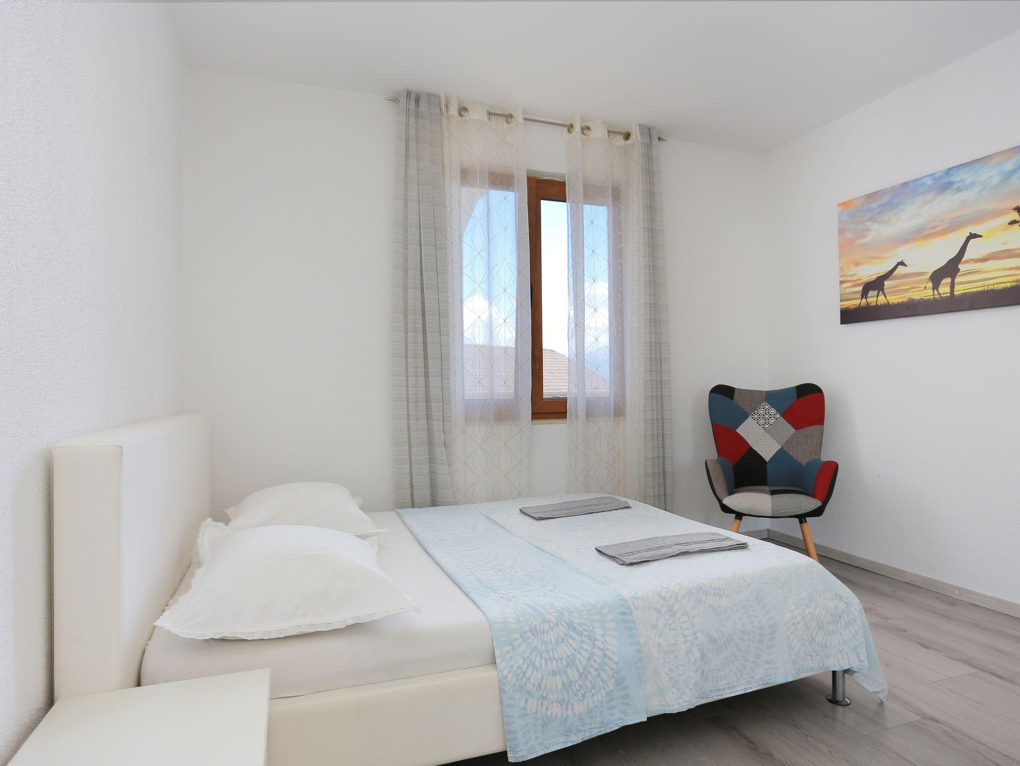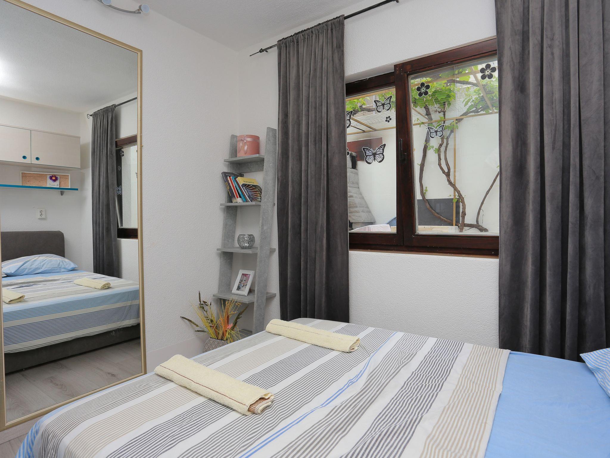Ferienwohnung bietet Platz für 5 Gäste. Die Betten sind in Schlafzimmern, die es 2 gibt, und in Wohnzimmer, innerhalb einer Gesamtfläche von 75m2, angeordnet. Die Gäste haben eine eigene Terrasse zur Verfügung, auf der sie in warmen Sommernächten genießen können. Das Apartment bietet Meerblick. Es ist erlaubt, Speisen auf dem Gemeinschafts-Grill vorzubereiten. In der Unterkunftseinheit besteht die Möglichkeit des Mitbringens von Haustieren gegen Aufpreis. Durch die Terrasse der gebuchten Unterkunftseinheit gehen auch andere Gäste oder Vermieter. IM PREIS INBEGRIFFEN: Kurtaxe, Endreinigung, Klimatisierung, Parkplatz, Garage, Internet, Kinderbett, Bügeleisen, Föhn, Liegestühle. UNVERBINDLICHE ZUSÄTZLICHE KOSTEN: Haustiere (5,00 € pro Nacht). Die Verfügbarkeit zusätzlicher Dienstleistungen in Ihrem reservierten Termin und die Preise derselben (falls nicht aufgeführt) müssen im Voraus überprüft werden. Zusätzliche Dienstleistungen die in der Zahlungsaufforderung nicht aufgeführt sind werden direkt beim Vermieter bezahlt, angenommen der Gast nutzt auch diese.