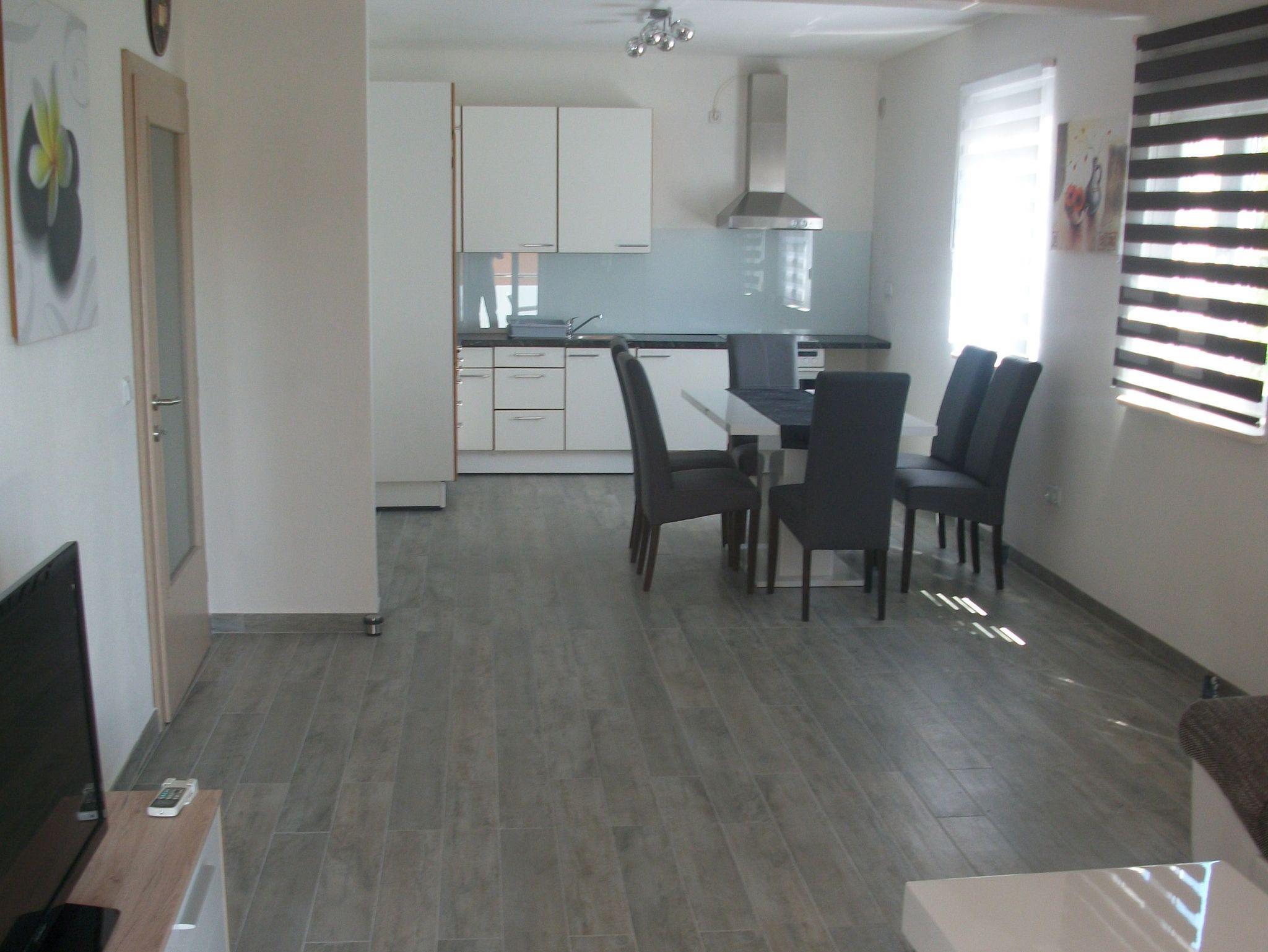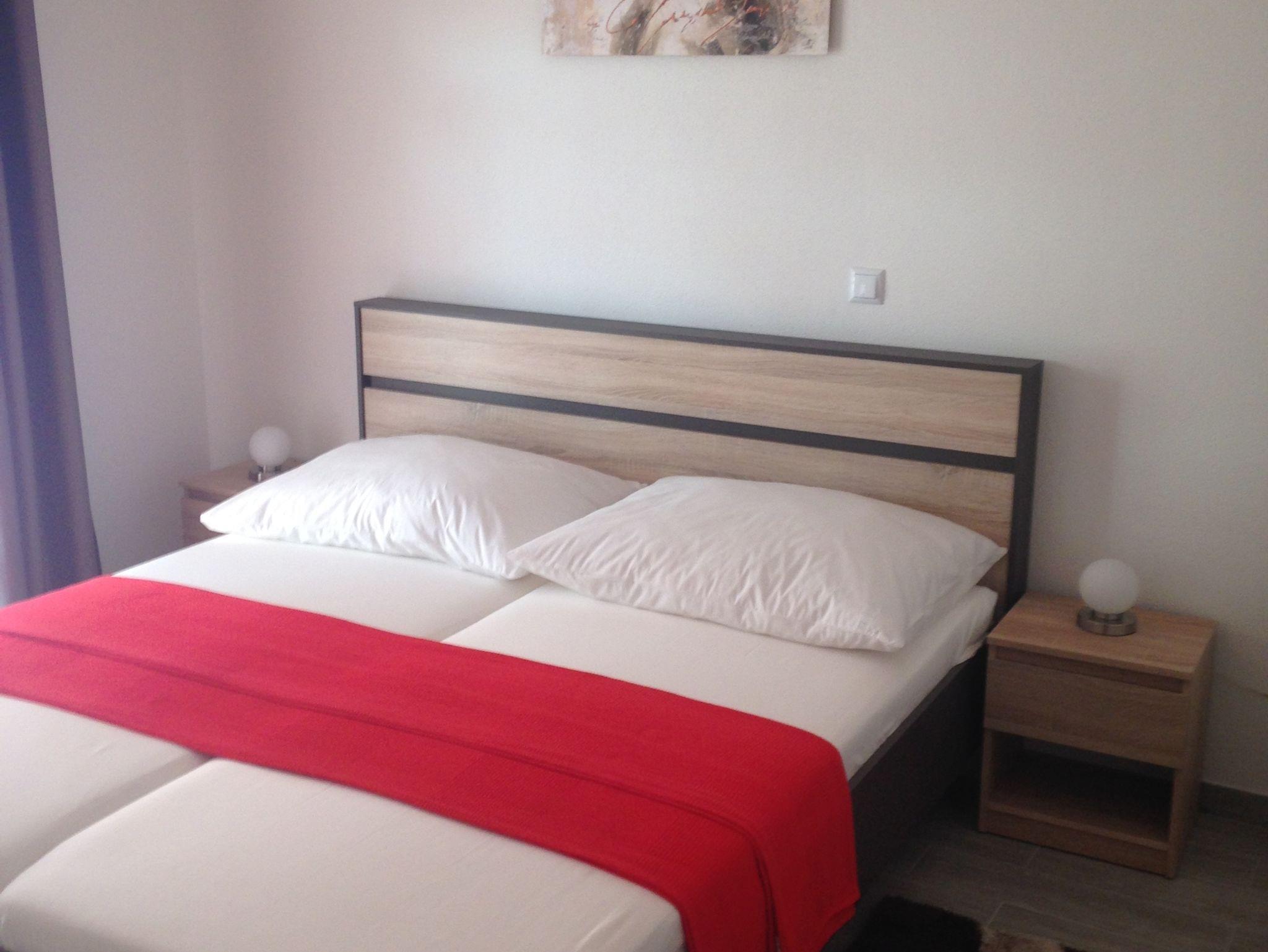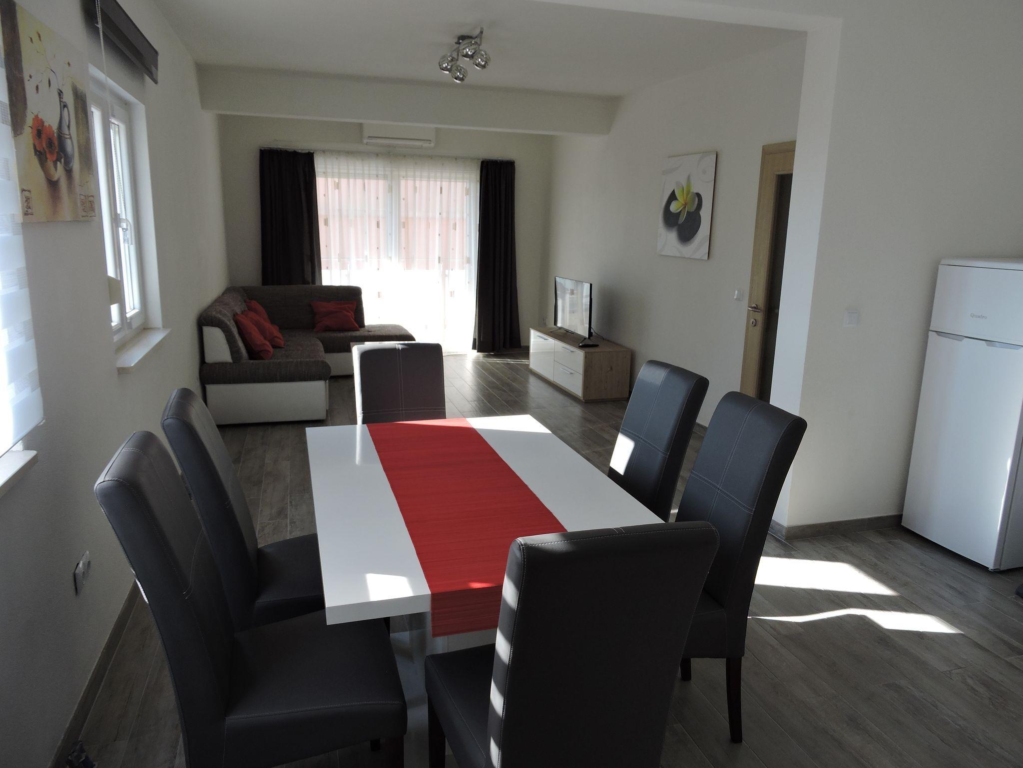 Ferienwohnung bietet Platz für 5 Gäste. Die Betten sind in Schlafzimmern, die es 2 gibt, und in Wohnzimmer, innerhalb einer Gesamtfläche von 62m2, angeordnet. Die Gäste haben einen eigenen Balkon zur Verfügung, auf der sie in warmen Sommernächten genießen können. Das Apartment bietet Meerblick. Es ist erlaubt, Speisen auf dem Gemeinschafts-Grill vorzubereiten. Räume der gebuchten Unterkunftseinheit werden nicht in eine Ganze verbunden. IM PREIS INBEGRIFFEN: Kurtaxe, Endreinigung, Klimatisierung, Parkplatz, Internet, Bügeleisen, Bügelbrett, Föhn. VERBINDLICHE ZUSÄTZLICHE KOSTEN: Aufzahlung für Kurzaufenthalte (prozentualer Zuschlag pro Nächtigungsanzahl: 30% - 1, 20% - 2, 10% - 3). UNVERBINDLICHE ZUSÄTZLICHE KOSTEN: Wäschewaschen (5,00 € Waschen). Die Verfügbarkeit zusätzlicher Dienstleistungen in Ihrem reservierten Termin und die Preise derselben (falls nicht aufgeführt) müssen im Voraus überprüft werden. Zusätzliche Dienstleistungen die in der Zahlungsaufforderung nicht aufgeführt sind werden direkt beim Vermieter bezahlt, angenommen der Gast nutzt auch diese. Ermäßigung auf den Grundpreis: Gratistag 21=19 (bei einem Aufenthalt von 21 Tagen oder mehr erhalten Sie 2 Gratistage für den Aufenthalt bis 31.12.26).