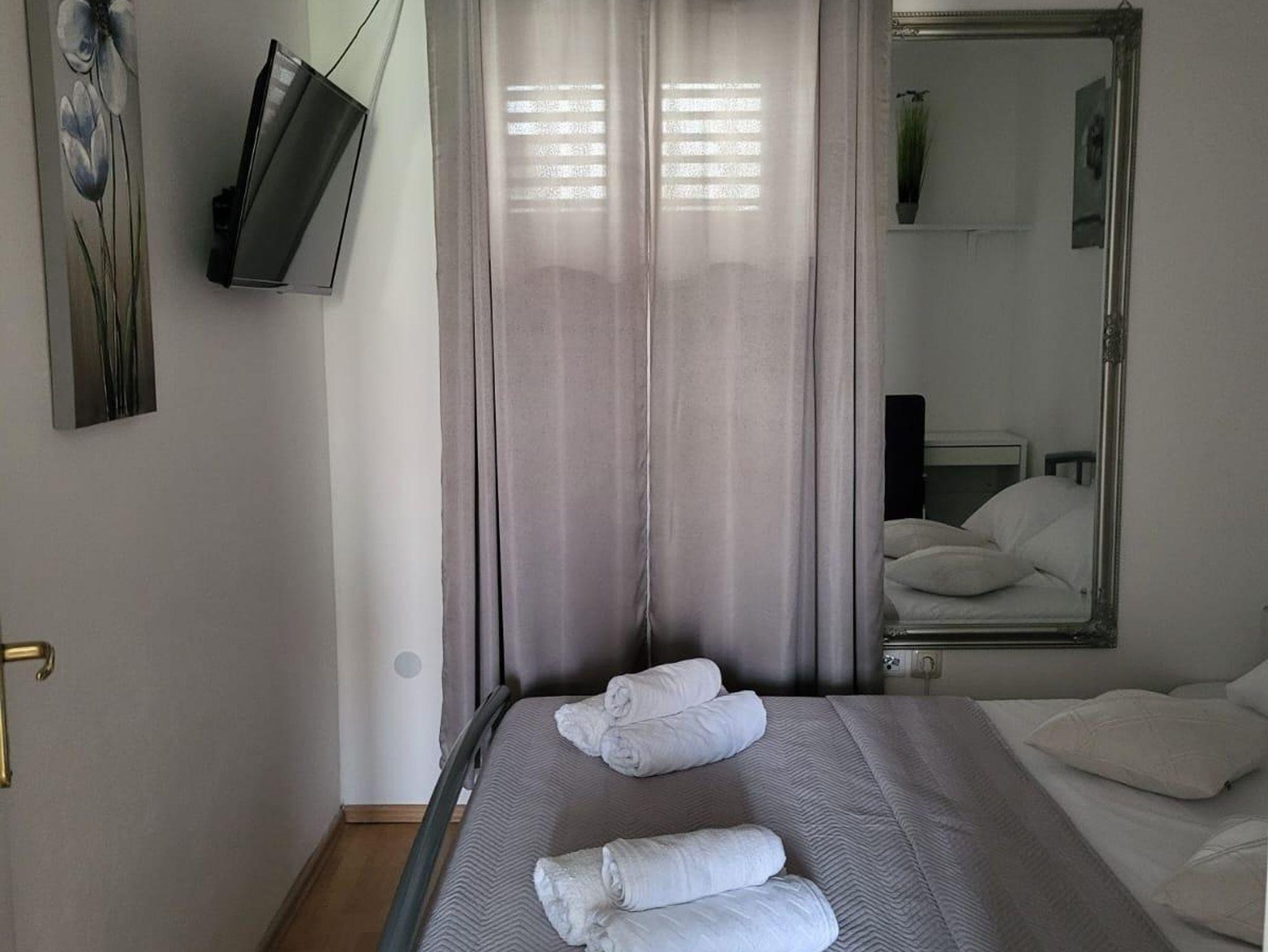 Ferienwohnung bietet Platz für 4 Gäste. Die Betten sind in Schlafzimmern, die es 2 gibt, innerhalb einer Gesamtfläche von 50m2, angeordnet. Es ist erlaubt, Speisen auf dem Gemeinschafts-Grill vorzubereiten. Die reservierte Unterkunftseinheit hat keinen Balkon und keine Terrasse. IM PREIS INBEGRIFFEN: Kurtaxe, Endreinigung, Klimatisierung, Parkplatz, Internet, Bügeleisen, Bügelbrett, Föhn. Die Verfügbarkeit zusätzlicher Dienstleistungen in Ihrem reservierten Termin und die Preise derselben (falls nicht aufgeführt) müssen im Voraus überprüft werden. Zusätzliche Dienstleistungen die in der Zahlungsaufforderung nicht aufgeführt sind werden direkt beim Vermieter bezahlt, angenommen der Gast nutzt auch diese.