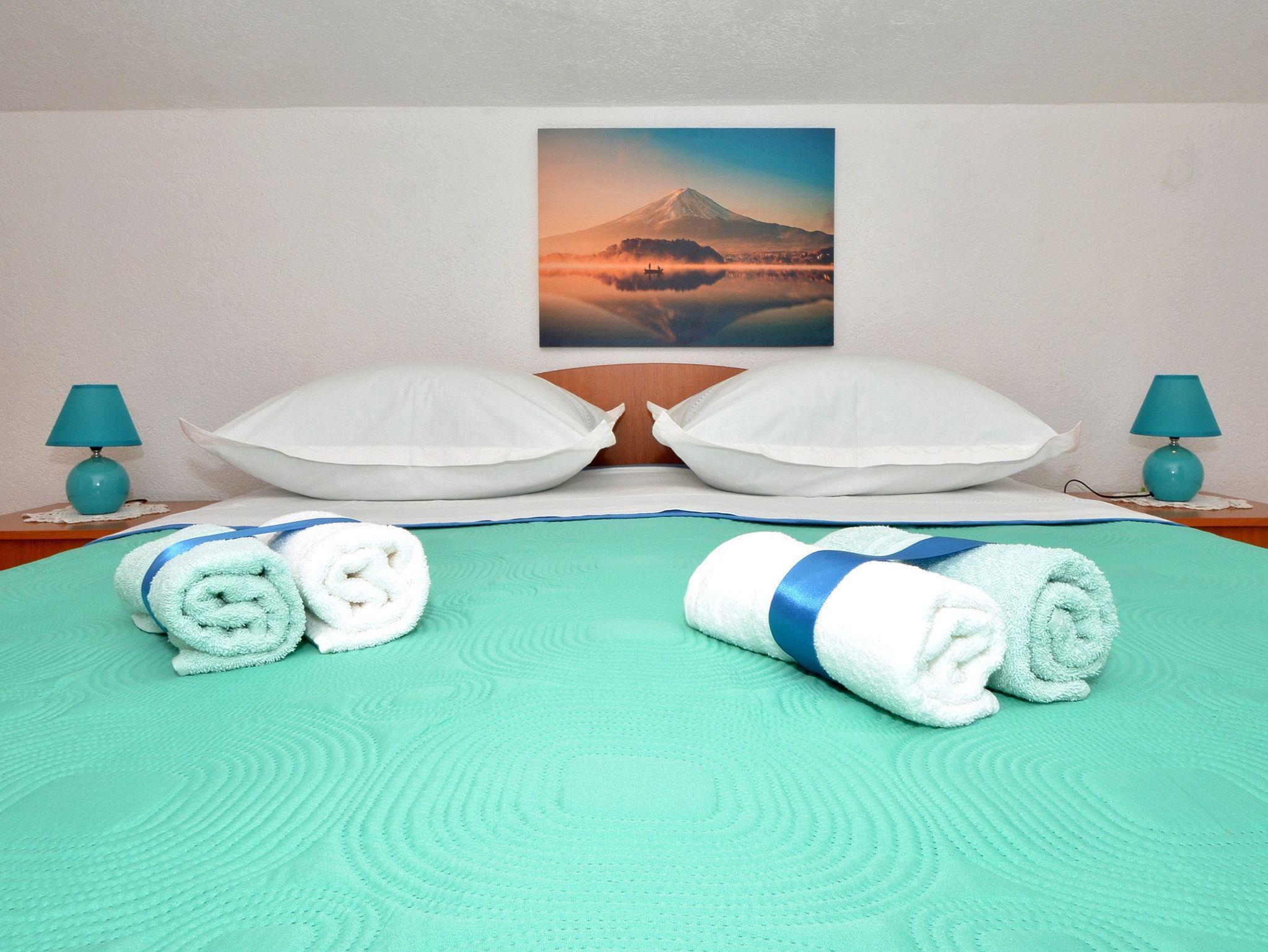 Ferienwohnung bietet Platz für 2 Gäste. Die Betten sind in Schlafzimmern, die es 1 gibt, innerhalb einer Gesamtfläche von 35m2, angeordnet. Die Gäste haben einen eigenen Balkon zur Verfügung, auf der sie in warmen Sommernächten genießen können. Das Apartment bietet Meerblick. Es ist erlaubt, Speisen auf dem Gemeinschafts-Grill vorzubereiten. IM PREIS INBEGRIFFEN: Kurtaxe, Endreinigung, Klimatisierung, Parkplatz, Internet, Bügeleisen, Bügelbrett, Föhn. VERBINDLICHE ZUSÄTZLICHE KOSTEN: Aufzahlung für Kurzaufenthalte (prozentualer Zuschlag pro Nächtigungsanzahl: 30% - 1, 20% - 2, 10% - 3). Die Verfügbarkeit zusätzlicher Dienstleistungen in Ihrem reservierten Termin und die Preise derselben (falls nicht aufgeführt) müssen im Voraus überprüft werden. Zusätzliche Dienstleistungen die in der Zahlungsaufforderung nicht aufgeführt sind werden direkt beim Vermieter bezahlt, angenommen der Gast nutzt auch diese.