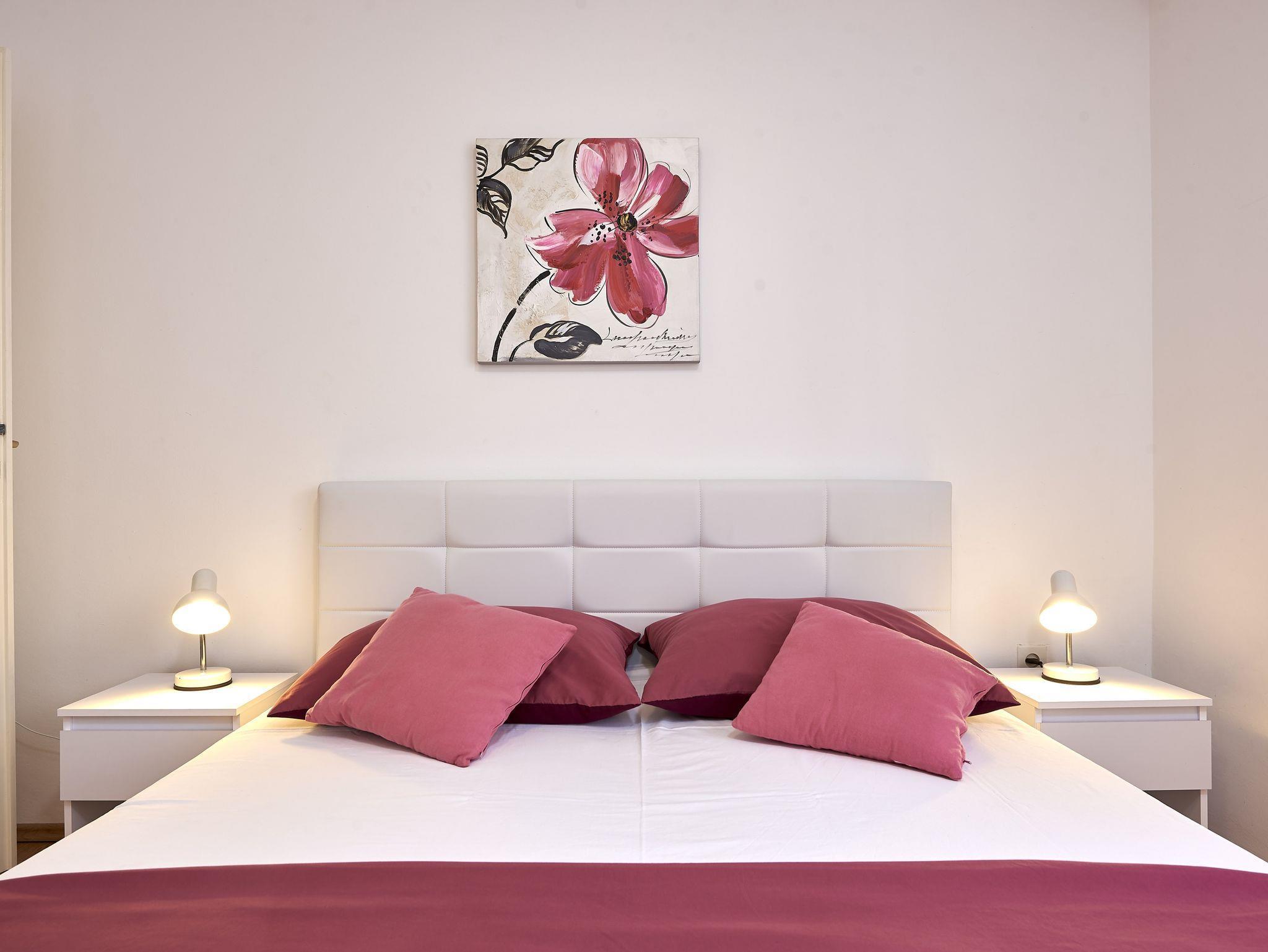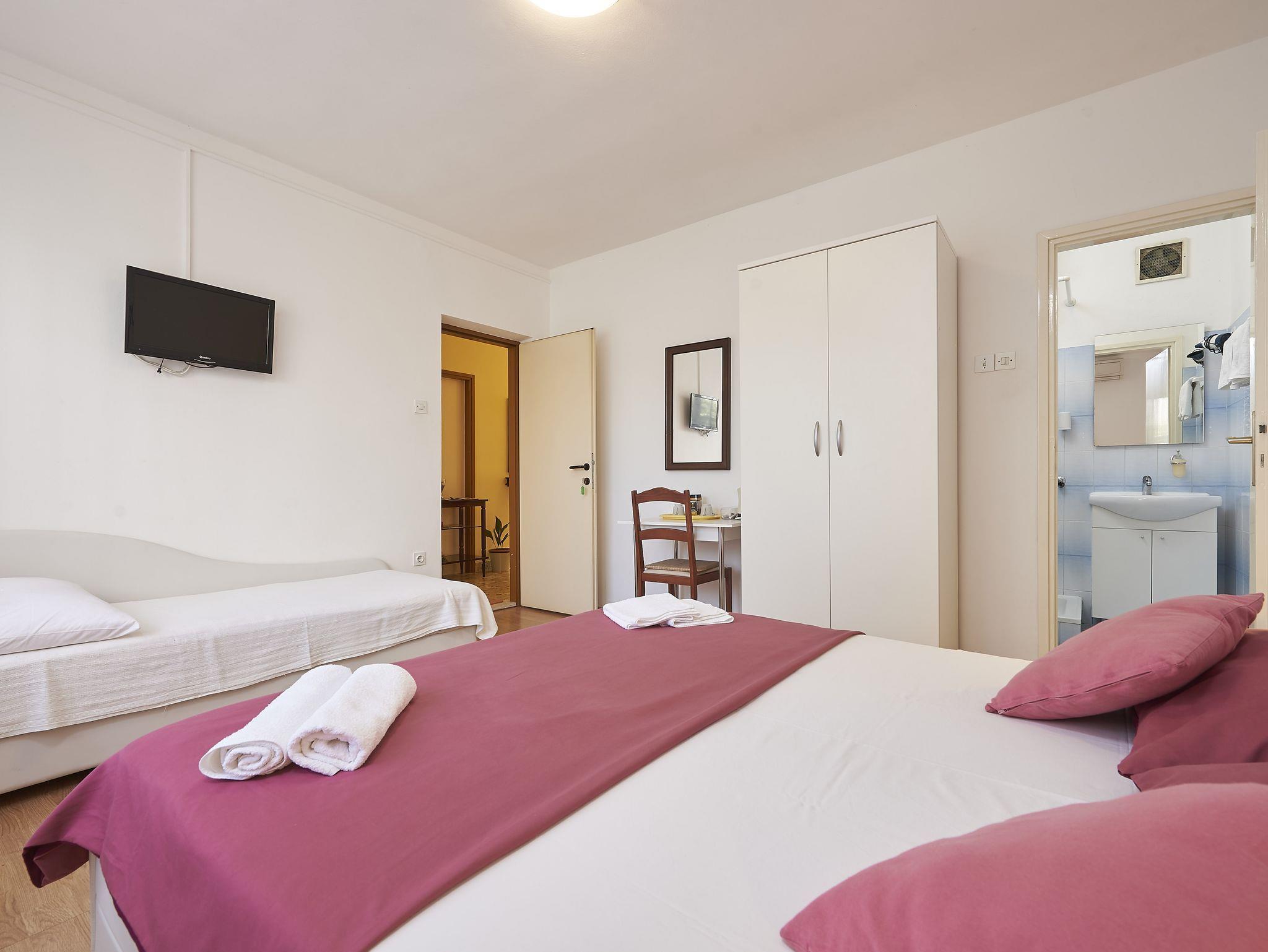 Zimmer bietet Platz für 3 Gäste. Die Betten sind in Schlafzimmern, die es 1 gibt, innerhalb einer Gesamtfläche von 19m2, angeordnet. Die Nutzung einer gemeinsamen Küche ist möglich. Es ist erlaubt, Speisen auf dem Gemeinschafts-Grill vorzubereiten. Die reservierte Unterkunftseinheit hat keinen Balkon und keine Terrasse. Die reservierte Unterkunftseinheit ist ein Zimmer mit eigenem Badezimmer mit der Möglichkeit der Nutzung einer Küche ohne Zuzahlung. IM PREIS INBEGRIFFEN: Kurtaxe, Endreinigung, Klimatisierung, gemeinsame Küche, Parkplatz, Internet, Kinderbett, Föhn, tragbarer Grill. VERBINDLICHE ZUSÄTZLICHE KOSTEN: Aufzahlung für Kurzaufenthalte (prozentualer Zuschlag pro Nächtigungsanzahl: 30% - 1, 20% - 2, 10% - 3). Die Verfügbarkeit zusätzlicher Dienstleistungen in Ihrem reservierten Termin und die Preise derselben (falls nicht aufgeführt) müssen im Voraus überprüft werden. Zusätzliche Dienstleistungen die in der Zahlungsaufforderung nicht aufgeführt sind werden direkt beim Vermieter bezahlt, angenommen der Gast nutzt auch diese. Ermäßigung auf den Grundpreis: Gratistag 14=13 (bei einem Aufenthalt von 14 Tagen oder mehr erhalten Sie einen Gratistag für den Aufenthalt bis 31.12.26).