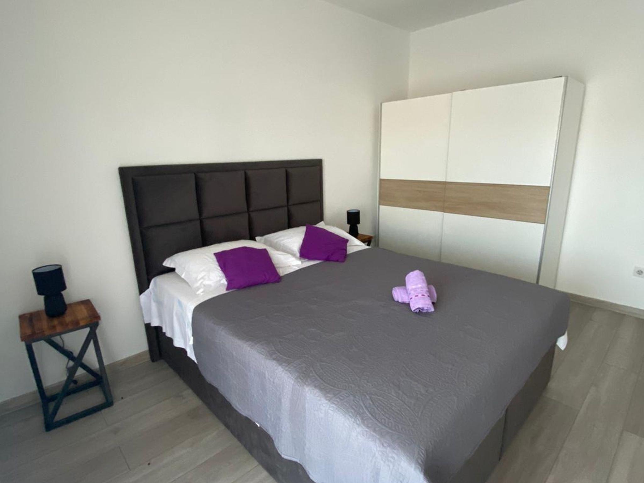 Ferienwohnung bietet Platz für 8 Gäste. Die Betten sind in Schlafzimmern, die es 4 gibt, innerhalb einer Gesamtfläche von 108m2, angeordnet. Die Gäste haben eine eigene Terrasse zur Verfügung, auf der sie in warmen Sommernächten genießen können. Das Apartment bietet Meerblick. Es ist erlaubt, Speisen auf dem Gemeinschafts-Grill vorzubereiten. IM PREIS INBEGRIFFEN: Kurtaxe, Endreinigung, Klimatisierung, Parkplatz, Garage, Internet, Bügeleisen, Bügelbrett. VERBINDLICHE ZUSÄTZLICHE KOSTEN: Aufzahlung für Kurzaufenthalte (prozentualer Zuschlag pro Nächtigungsanzahl: 30% - 1, 20% - 2, 10% - 3). Die Verfügbarkeit zusätzlicher Dienstleistungen in Ihrem reservierten Termin und die Preise derselben (falls nicht aufgeführt) müssen im Voraus überprüft werden. Zusätzliche Dienstleistungen die in der Zahlungsaufforderung nicht aufgeführt sind werden direkt beim Vermieter bezahlt, angenommen der Gast nutzt auch diese.