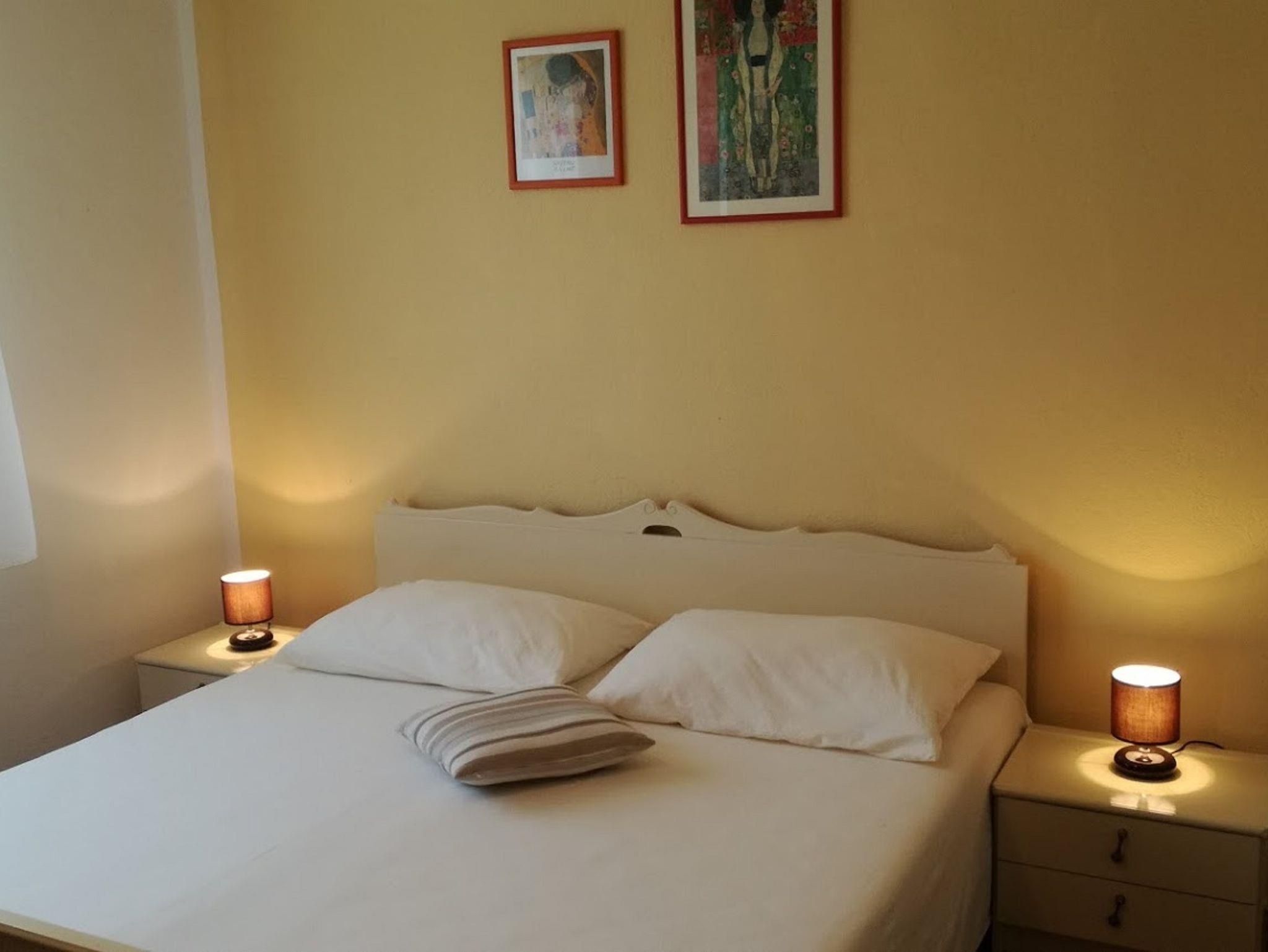 Ferienwohnung bietet Platz für 7 Gäste. Die Betten sind in Schlafzimmern, die es 3 gibt, innerhalb einer Gesamtfläche von 96m2, angeordnet. Die Gäste haben eine eigene Terrasse zur Verfügung, auf der sie in warmen Sommernächten genießen können. Es ist erlaubt, Speisen auf dem Gemeinschafts-Grill vorzubereiten. In der Unterkunftseinheit besteht die Möglichkeit des Mitbringens von Haustieren gegen Aufpreis. IM PREIS INBEGRIFFEN: Kurtaxe, Endreinigung, Klimatisierung, Parkplatz, Internet, Kinderbett, Bügeleisen, Bügelbrett, Föhn. VERBINDLICHE ZUSÄTZLICHE KOSTEN: Aufzahlung für Kurzaufenthalte (prozentualer Zuschlag pro Nächtigungsanzahl: 30% - 1, 20% - 2, 10% - 3). UNVERBINDLICHE ZUSÄTZLICHE KOSTEN: Bootsanlegeplatz (10,00 € pro Nacht), Haustiere (5,00 € pro Nacht). Die Verfügbarkeit zusätzlicher Dienstleistungen in Ihrem reservierten Termin und die Preise derselben (falls nicht aufgeführt) müssen im Voraus überprüft werden. Zusätzliche Dienstleistungen die in der Zahlungsaufforderung nicht aufgeführt sind werden direkt beim Vermieter bezahlt, angenommen der Gast nutzt auch diese.