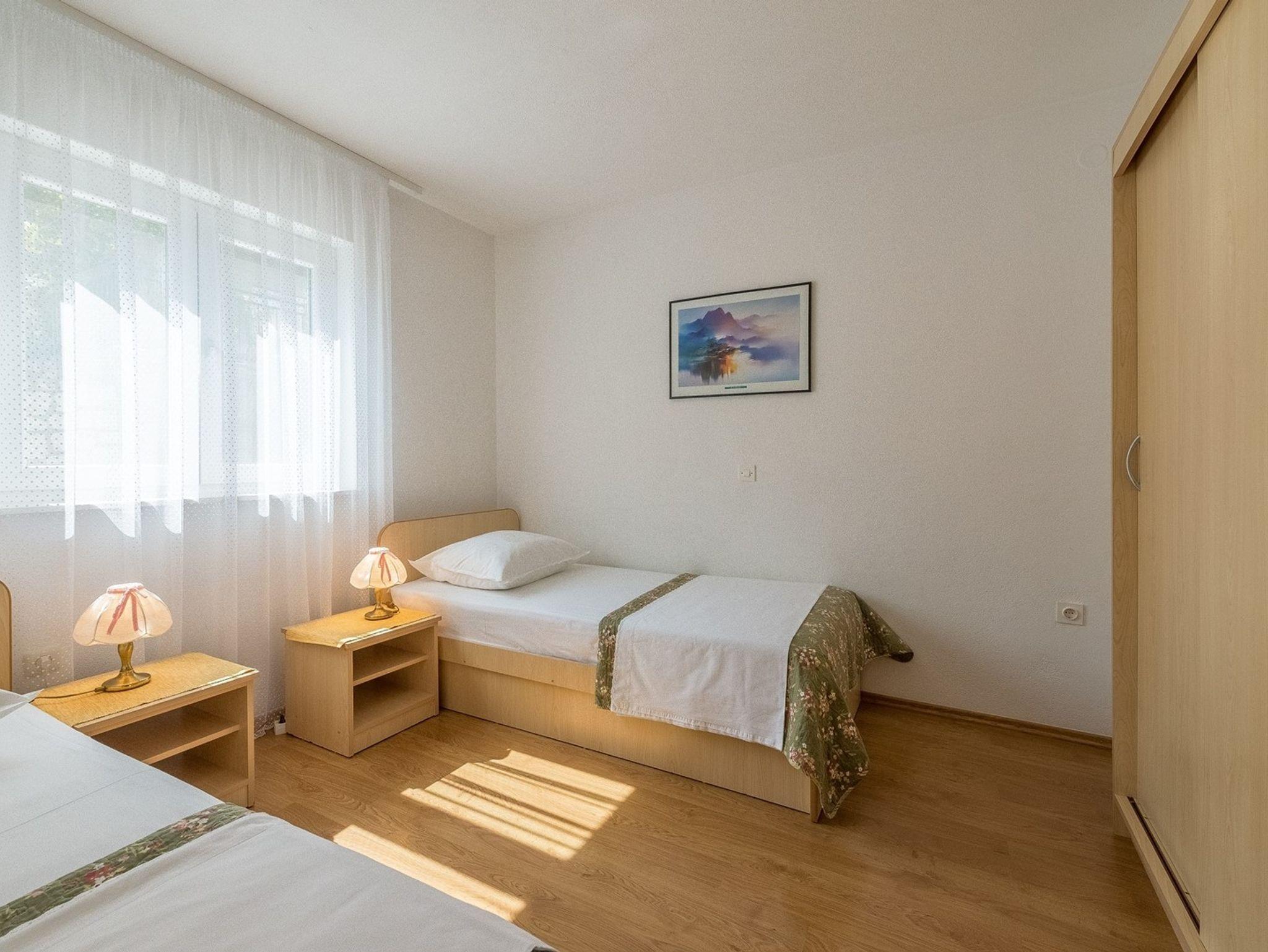 Ferienwohnung bietet Platz für 5 Gäste. Die Betten sind in Schlafzimmern, die es 2 gibt, und in Wohnzimmer, innerhalb einer Gesamtfläche von 50m2, angeordnet. Die Gäste haben eine eigene Terrasse zur Verfügung, auf der sie in warmen Sommernächten genießen können. Das Apartment bietet Meerblick. Es ist erlaubt, Speisen auf dem Gemeinschafts-Grill vorzubereiten. IM PREIS INBEGRIFFEN: Kurtaxe, Endreinigung, Klimatisierung, Parkplatz, Garage, Internet, Kinderbett, Bügeleisen, Föhn. Die Verfügbarkeit zusätzlicher Dienstleistungen in Ihrem reservierten Termin und die Preise derselben (falls nicht aufgeführt) müssen im Voraus überprüft werden. Zusätzliche Dienstleistungen die in der Zahlungsaufforderung nicht aufgeführt sind werden direkt beim Vermieter bezahlt, angenommen der Gast nutzt auch diese.