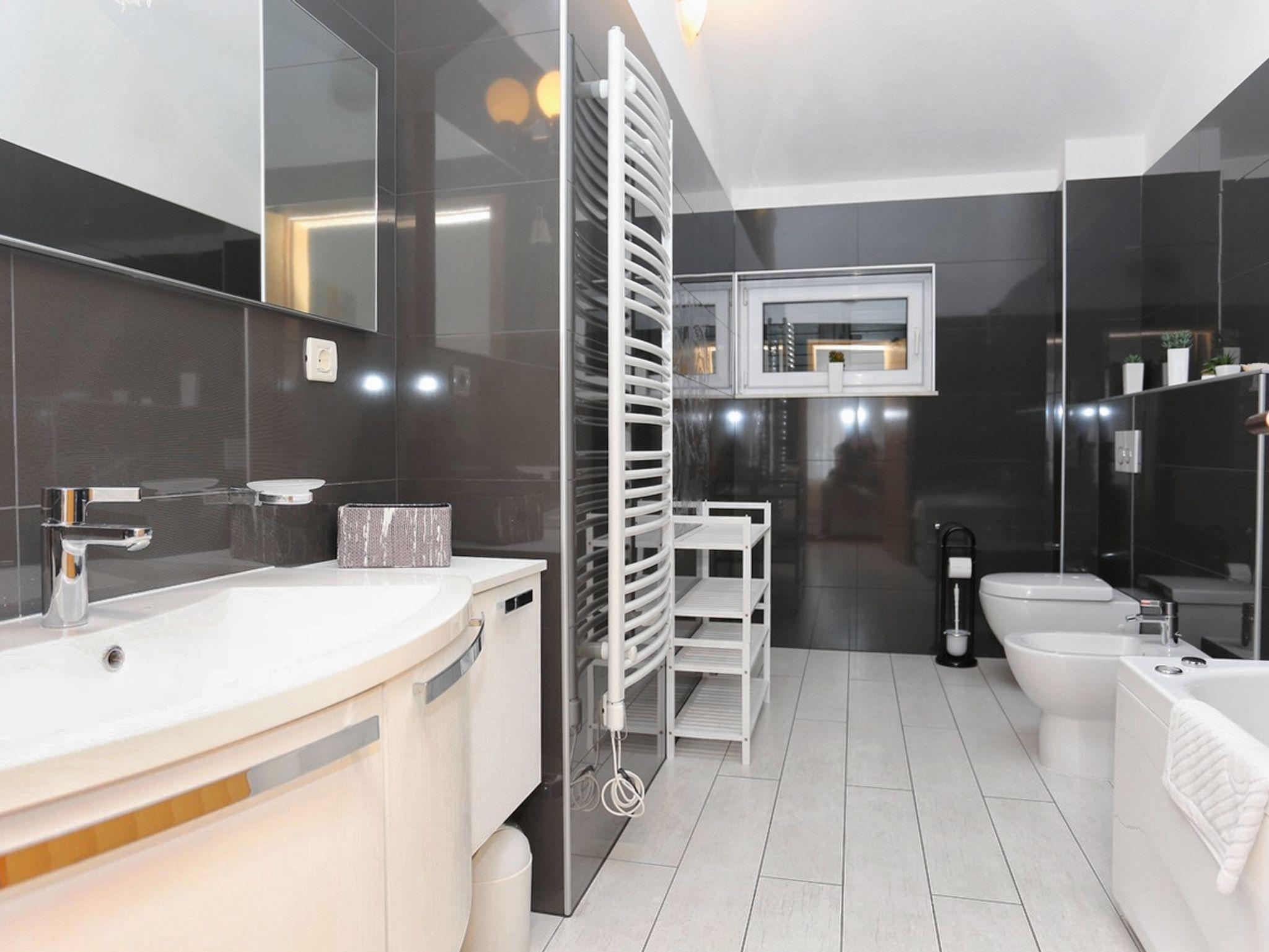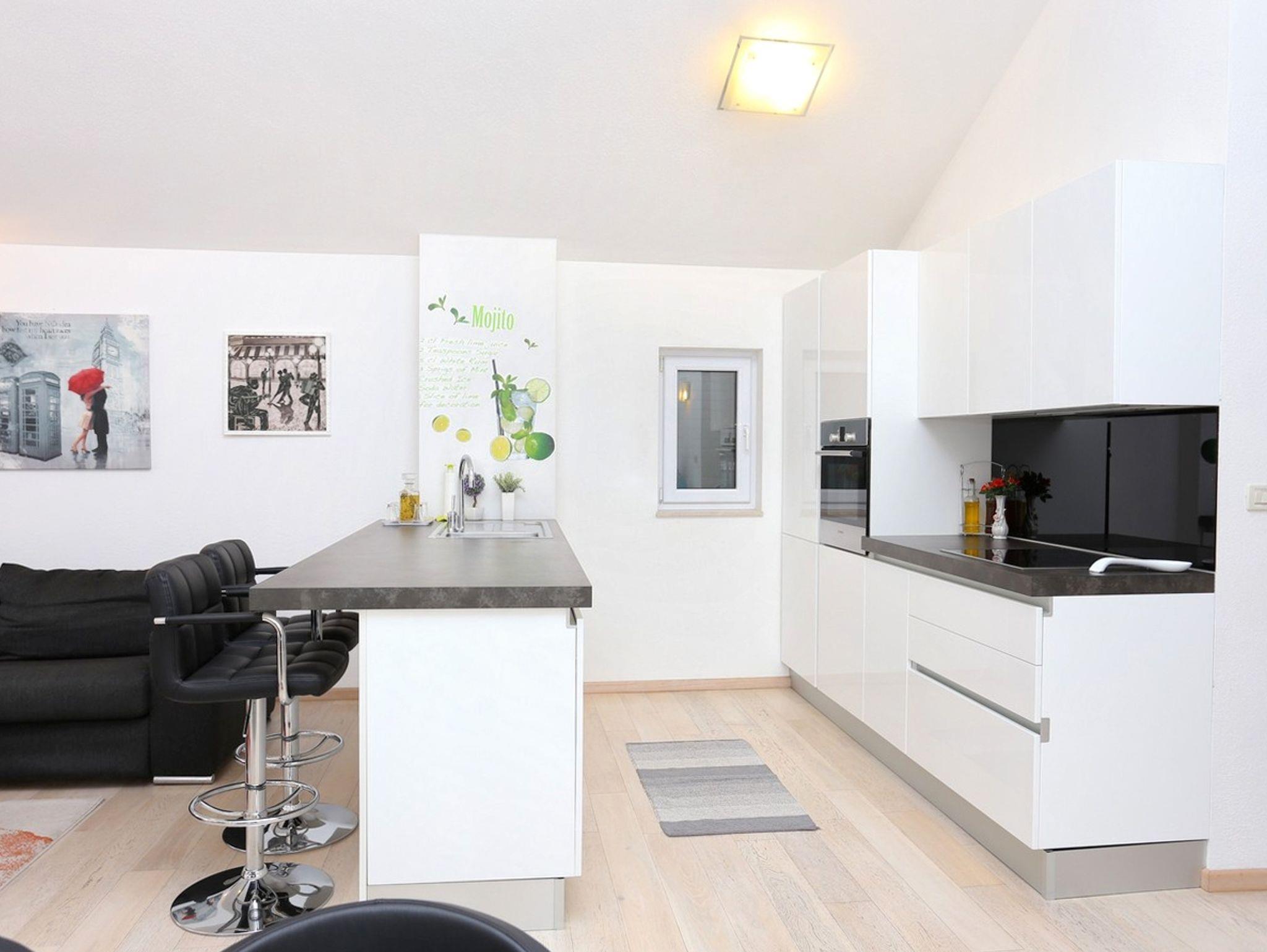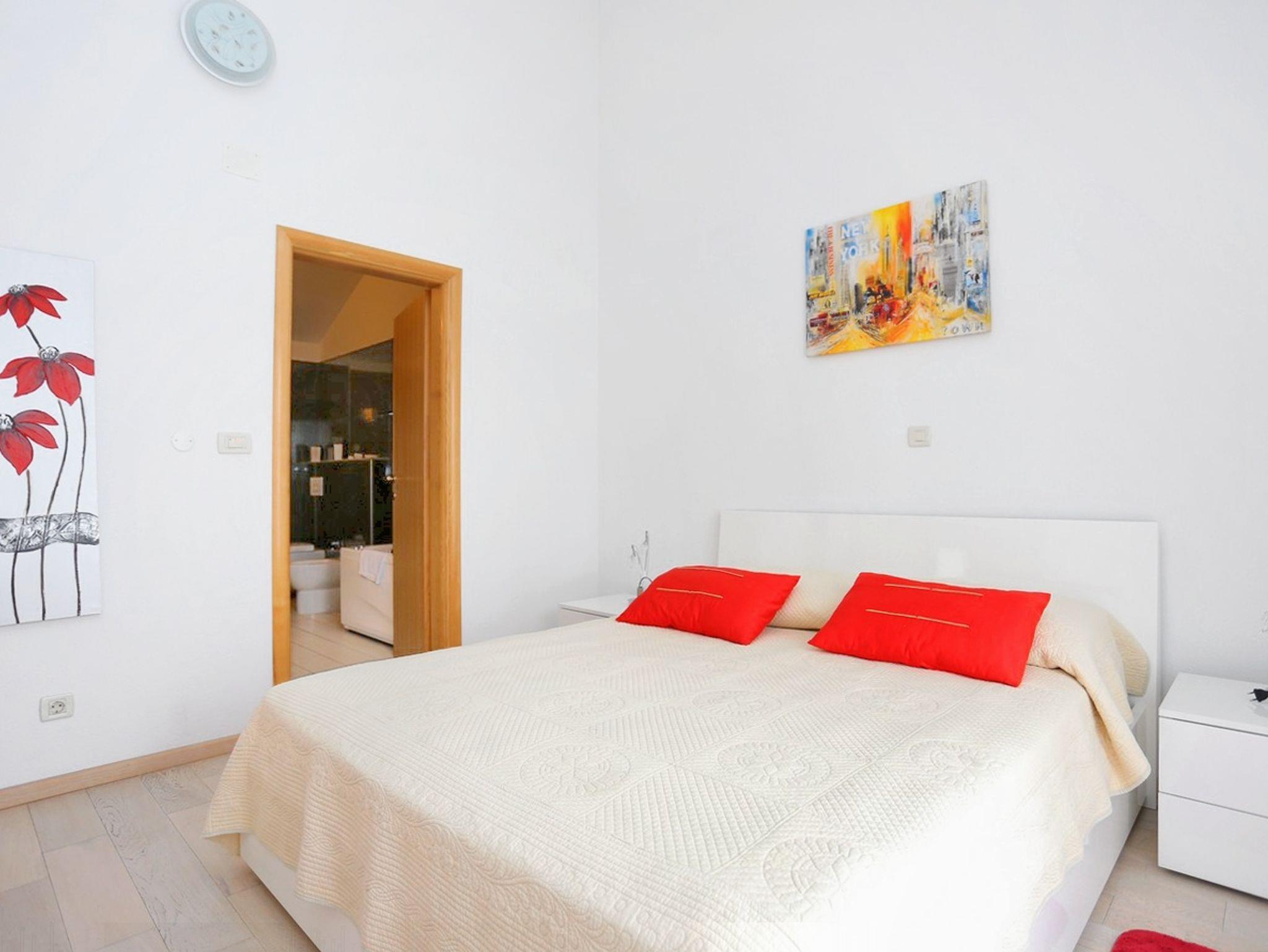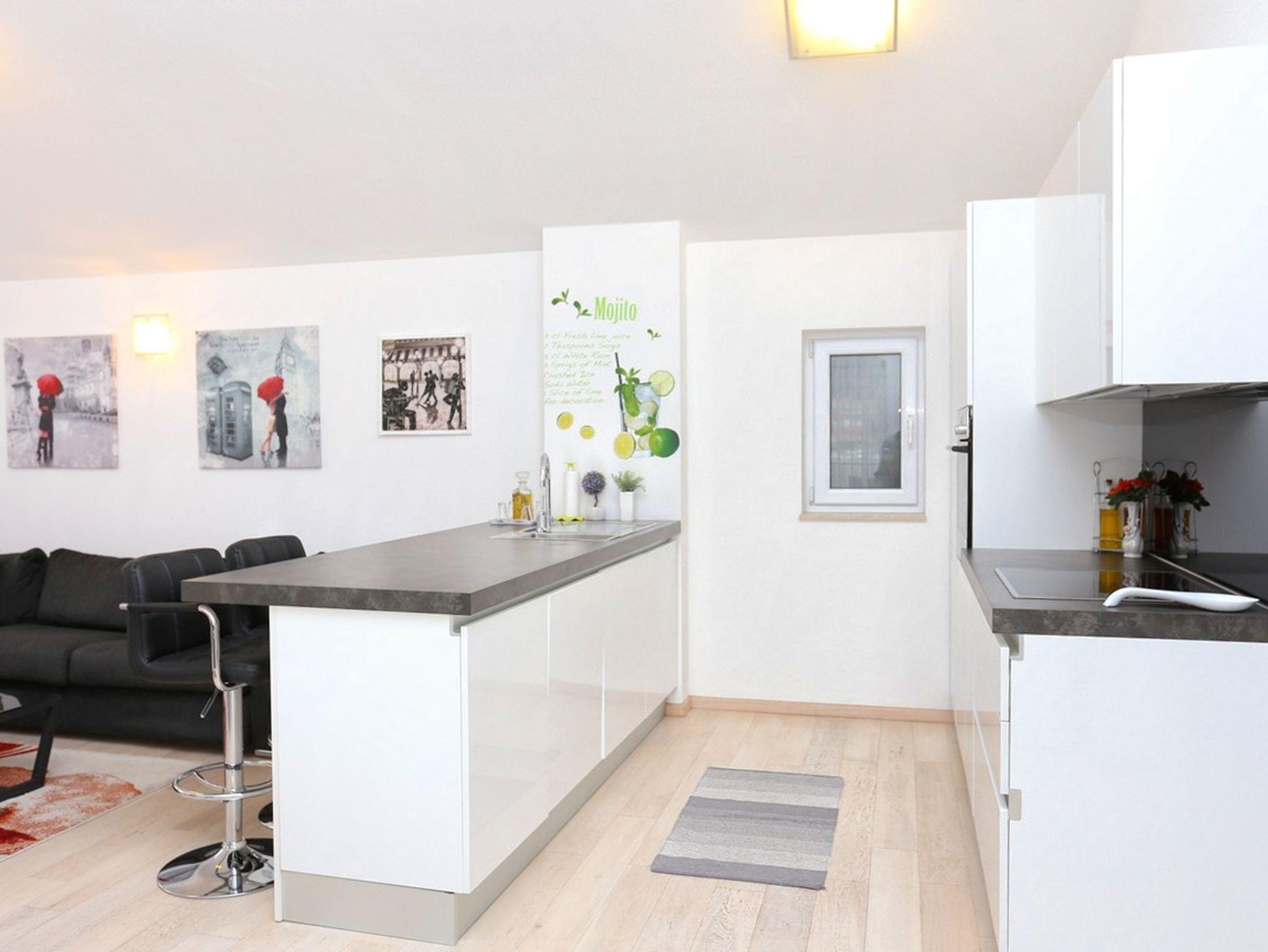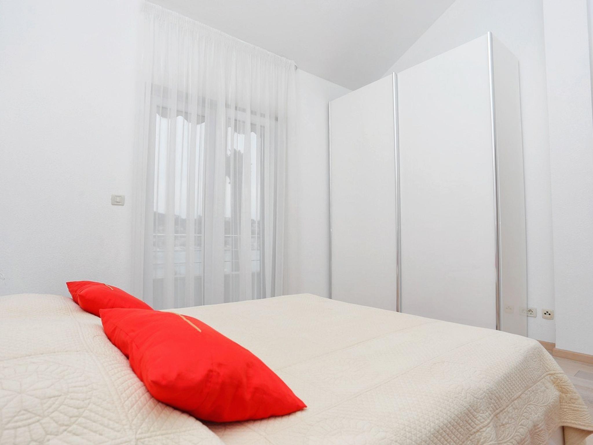 Ferienwohnung bietet Platz für 6 Gäste. Die Betten sind in Schlafzimmern, die es 2 gibt, und in Wohnzimmer, innerhalb einer Gesamtfläche von 81m2, angeordnet. Die Gäste haben eine eigene Terrasse zur Verfügung, auf der sie in warmen Sommernächten genießen können. Das Apartment bietet Meerblick. IM PREIS INBEGRIFFEN: Kurtaxe, Endreinigung, Klimatisierung, Parkplatz, Internet, Kinderbett, Bügeleisen, Bügelbrett, Föhn. VERBINDLICHE ZUSÄTZLICHE KOSTEN: Aufzahlung für Kurzaufenthalte (prozentualer Zuschlag pro Nächtigungsanzahl: 30% - 1, 20% - 2, 10% - 3). Die Verfügbarkeit zusätzlicher Dienstleistungen in Ihrem reservierten Termin und die Preise derselben (falls nicht aufgeführt) müssen im Voraus überprüft werden. Zusätzliche Dienstleistungen die in der Zahlungsaufforderung nicht aufgeführt sind werden direkt beim Vermieter bezahlt, angenommen der Gast nutzt auch diese. Ermäßigung auf den Grundpreis: Gratistag 14=13 (bei einem Aufenthalt von 14 Tagen oder mehr erhalten Sie einen Gratistag für den Aufenthalt bis 31.12.26).