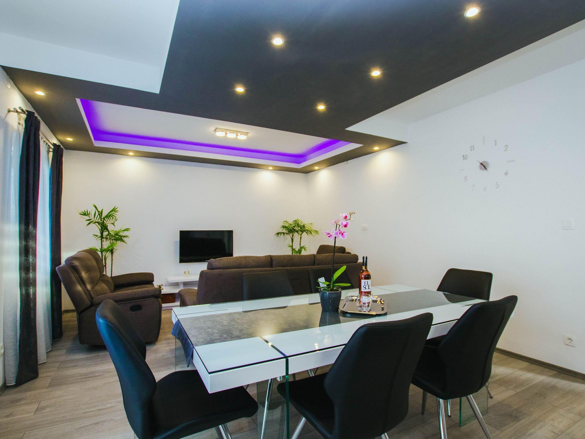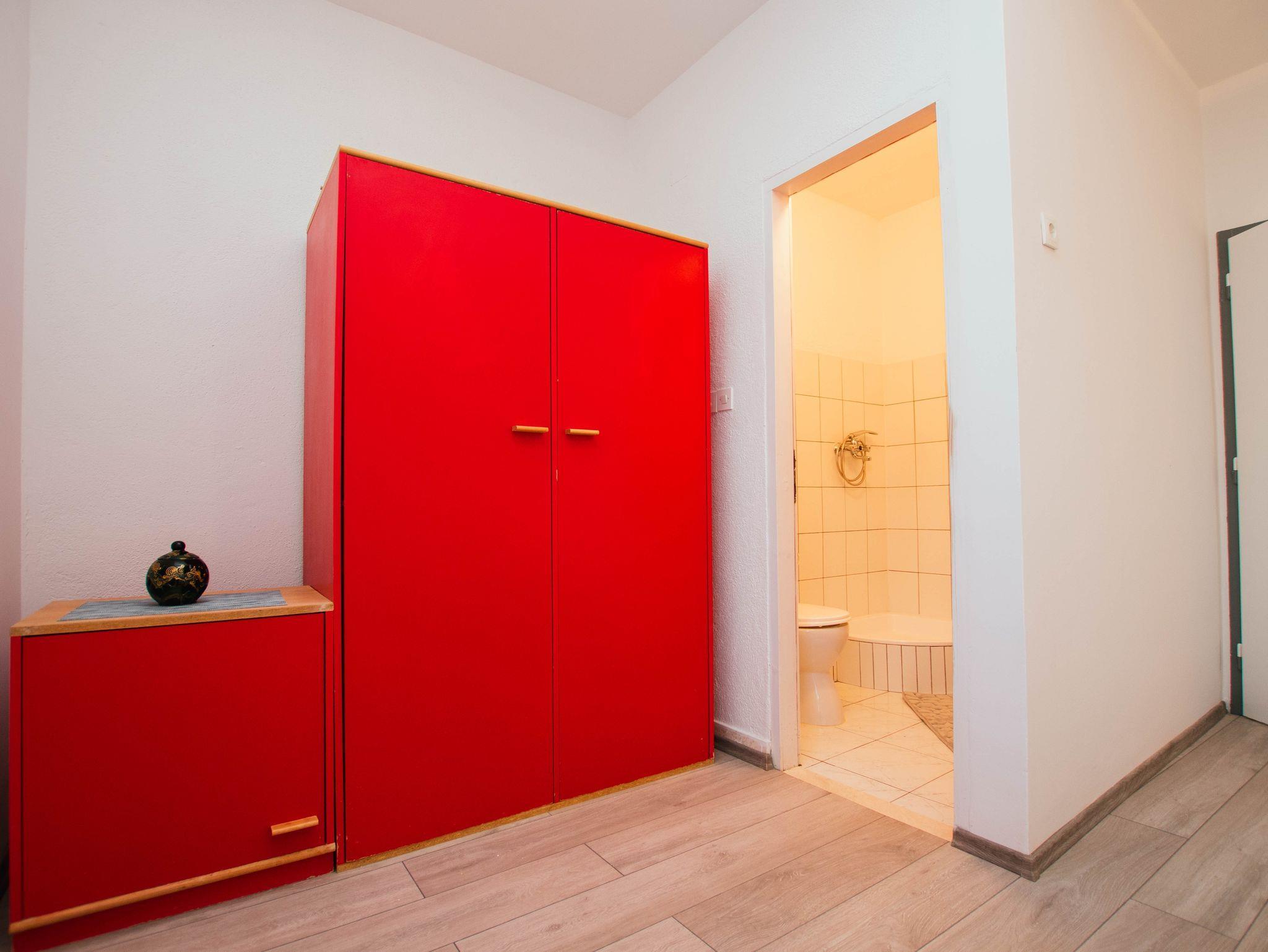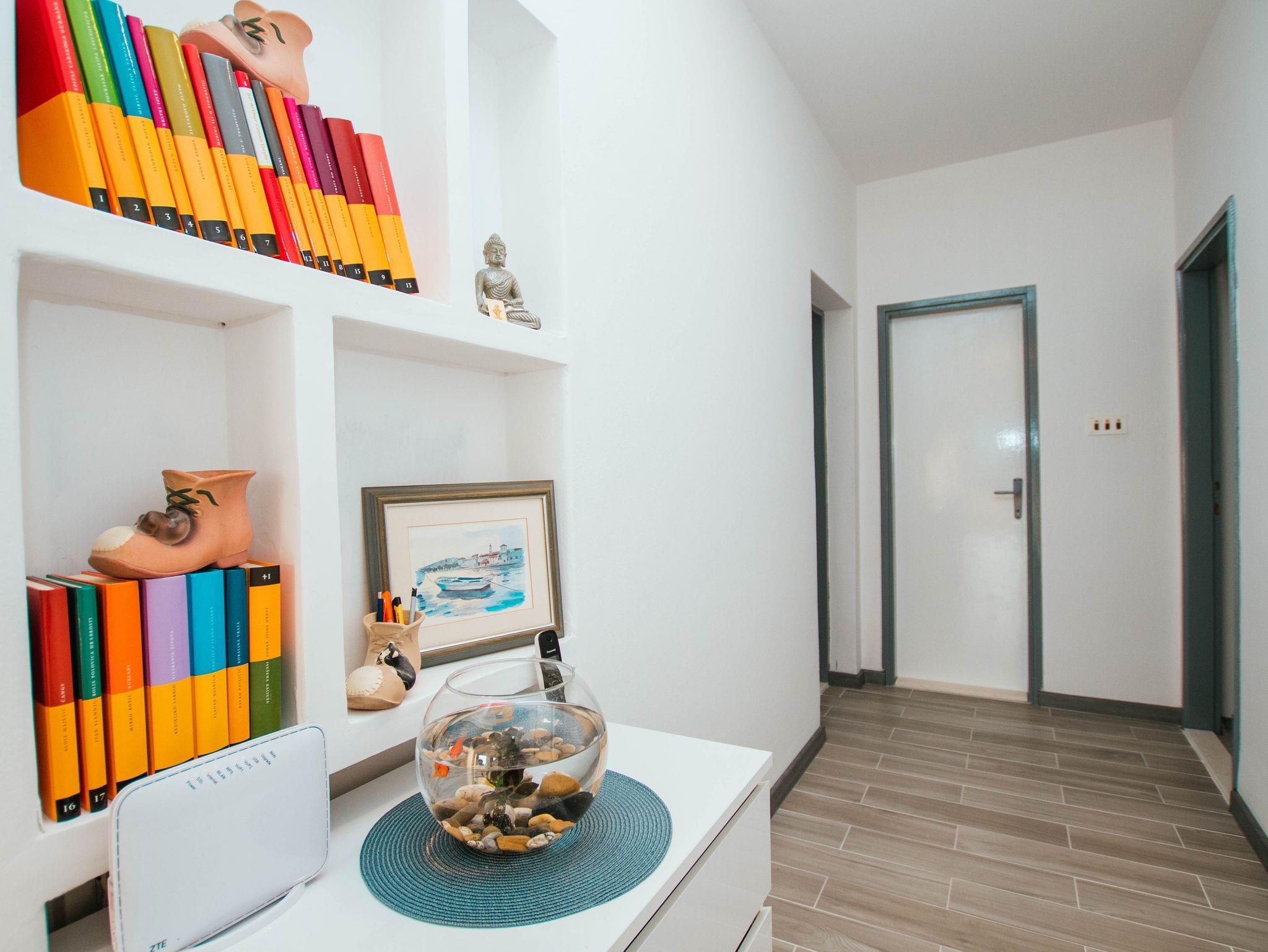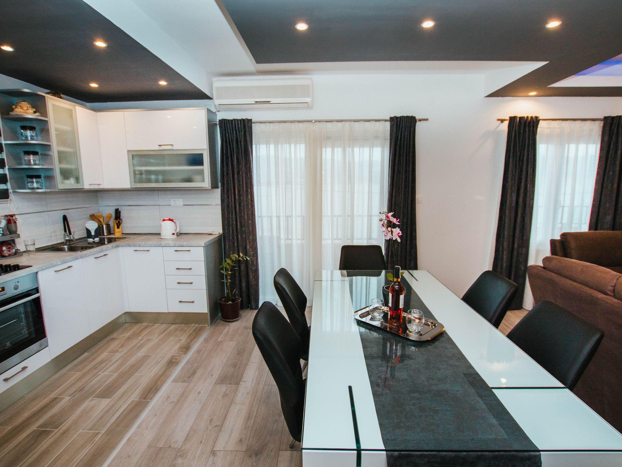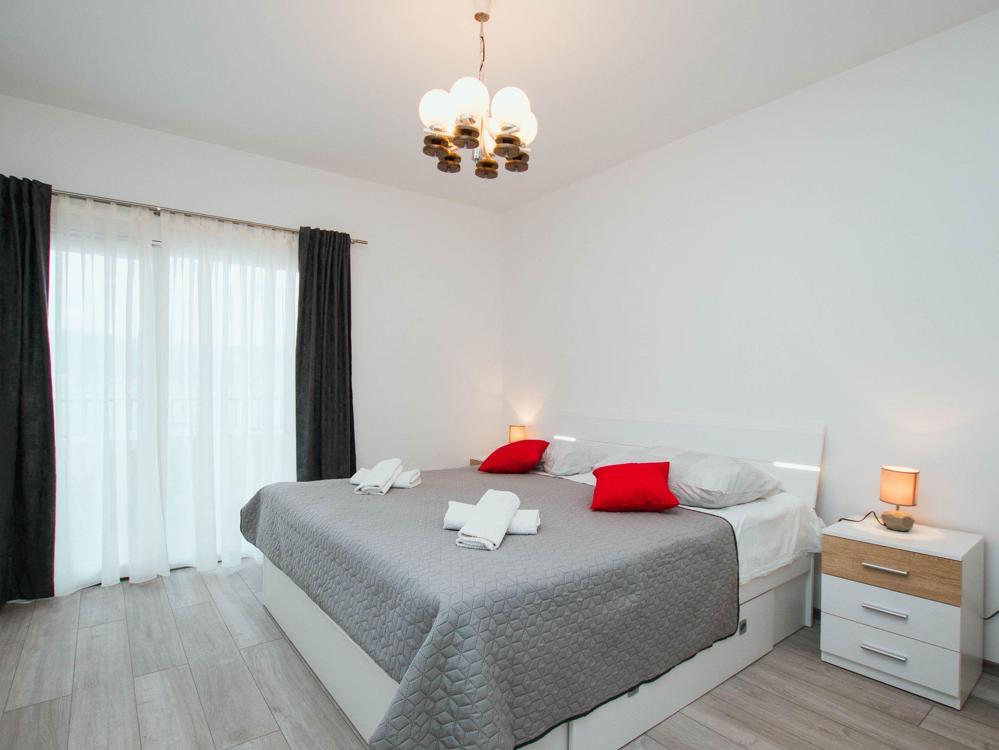 Ferienwohnung bietet Platz für 4 Gäste. Die Betten sind in Schlafzimmern, die es 2 gibt, innerhalb einer Gesamtfläche von 78m2, angeordnet. Die Gäste haben eine eigene Terrasse zur Verfügung, auf der sie in warmen Sommernächten genießen können. Das Apartment bietet Meerblick. Es ist erlaubt, Speisen auf dem Gemeinschafts-Grill vorzubereiten. IM PREIS INBEGRIFFEN: Kurtaxe, Endreinigung, Klimatisierung, Parkplatz, Garage, Internet, Bügeleisen, Bügelbrett. VERBINDLICHE ZUSÄTZLICHE KOSTEN: Aufzahlung für Kurzaufenthalte (prozentualer Zuschlag pro Nächtigungsanzahl: 30% - 1, 20% - 2, 10% - 3). Die Verfügbarkeit zusätzlicher Dienstleistungen in Ihrem reservierten Termin und die Preise derselben (falls nicht aufgeführt) müssen im Voraus überprüft werden. Zusätzliche Dienstleistungen die in der Zahlungsaufforderung nicht aufgeführt sind werden direkt beim Vermieter bezahlt, angenommen der Gast nutzt auch diese.