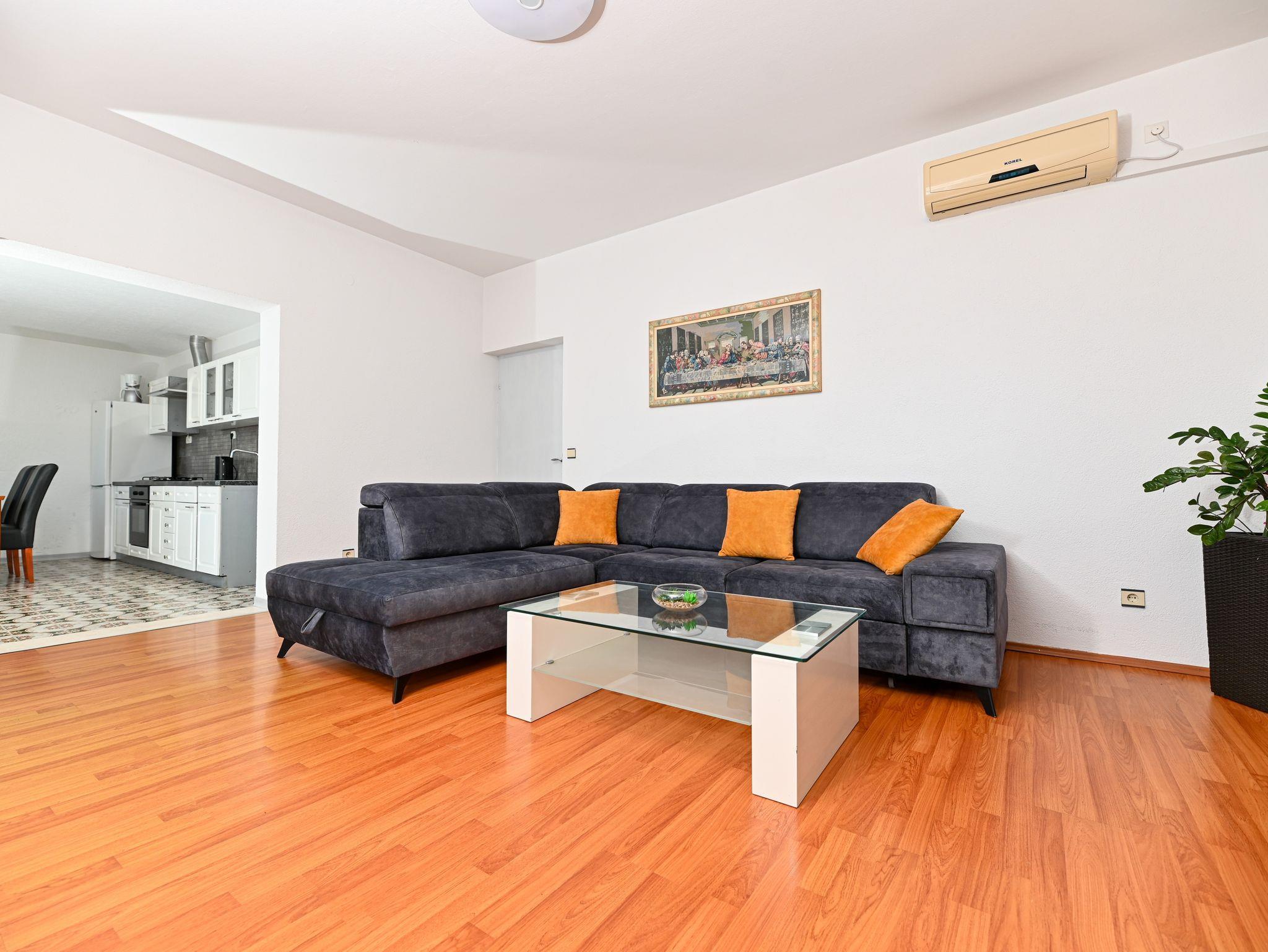 Ferienwohnung bietet Platz für 4 Gäste. Die Betten sind in Schlafzimmern, die es 2 gibt, innerhalb einer Gesamtfläche von 101m2, angeordnet. Die Gäste haben eine eigene Terrasse zur Verfügung, auf der sie in warmen Sommernächten genießen können. Das Apartment bietet Meerblick. Es ist erlaubt, Speisen auf dem Gemeinschafts-Grill vorzubereiten. IM PREIS INBEGRIFFEN: Kurtaxe, Endreinigung, Klimatisierung, Parkplatz, Internet, Kinderbett, Bügeleisen, Bügelbrett, Föhn. Die Verfügbarkeit zusätzlicher Dienstleistungen in Ihrem reservierten Termin und die Preise derselben (falls nicht aufgeführt) müssen im Voraus überprüft werden. Zusätzliche Dienstleistungen die in der Zahlungsaufforderung nicht aufgeführt sind werden direkt beim Vermieter bezahlt, angenommen der Gast nutzt auch diese. Ermäßigung auf den Grundpreis: Gratistag 14=13 (bei einem Aufenthalt von 14 Tagen oder mehr erhalten Sie einen Gratistag für den Aufenthalt bis 31.12.26).