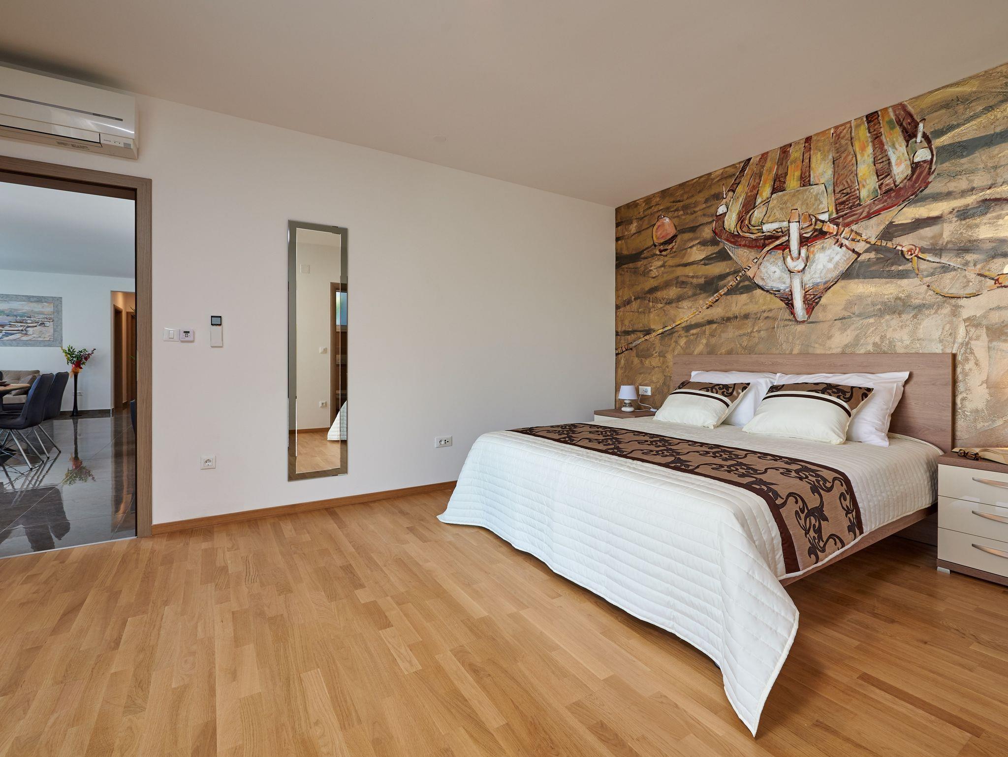 Ferienwohnung bietet Platz für 6 Gäste. Die Betten sind in Schlafzimmern, die es 3 gibt, innerhalb einer Gesamtfläche von 215m2, angeordnet. Die Gäste haben eine eigene Terrasse zur Verfügung, auf der sie in warmen Sommernächten genießen können. Das Apartment bietet Meerblick. Für vollen Genuss und Entspannung gibt es einen privaten Grill für Gäste dieser Unterkunft. Während ihres Aufenthalts können sich Gäste im privaten Schwimmbad entspannen. IM PREIS INBEGRIFFEN: Kurtaxe, Endreinigung, Klimatisierung, Pool, Parkplatz, Internet, Kinderbett, Zusatzbett, Bügeleisen, Bügelbrett, Föhn. Die Verfügbarkeit zusätzlicher Dienstleistungen in Ihrem reservierten Termin und die Preise derselben (falls nicht aufgeführt) müssen im Voraus überprüft werden. Zusätzliche Dienstleistungen die in der Zahlungsaufforderung nicht aufgeführt sind werden direkt beim Vermieter bezahlt, angenommen der Gast nutzt auch diese.