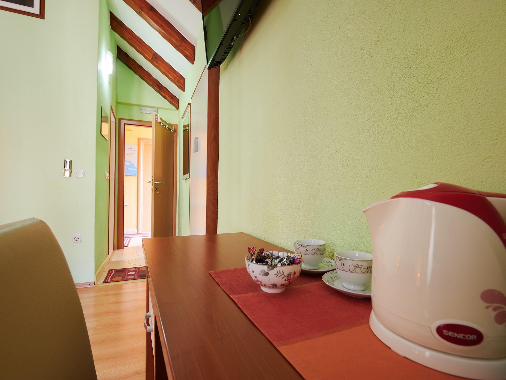 Zimmer bietet Platz für 2 Gäste. Die Betten sind in Schlafzimmern, die es 1 gibt, innerhalb einer Gesamtfläche von 16m2, angeordnet. Die reservierte Unterkunftseinheit ist ein Zimmer mit eigenem Badezimmer ohne die Möglichkeit der Nutzung einer Küche. Die reservierte Unterkunftseinheit verfügt über einen gemeinsame Terrasse. IM PREIS INBEGRIFFEN: Kurtaxe, Endreinigung, Klimatisierung, Internet, Bügeleisen, Bügelbrett, Föhn. VERBINDLICHE ZUSÄTZLICHE KOSTEN: Aufzahlung für Kurzaufenthalte (prozentualer Zuschlag pro Nächtigungsanzahl: 30% - 1, 20% - 2, 10% - 3). Die Verfügbarkeit zusätzlicher Dienstleistungen in Ihrem reservierten Termin und die Preise derselben (falls nicht aufgeführt) müssen im Voraus überprüft werden. Zusätzliche Dienstleistungen die in der Zahlungsaufforderung nicht aufgeführt sind werden direkt beim Vermieter bezahlt, angenommen der Gast nutzt auch diese.