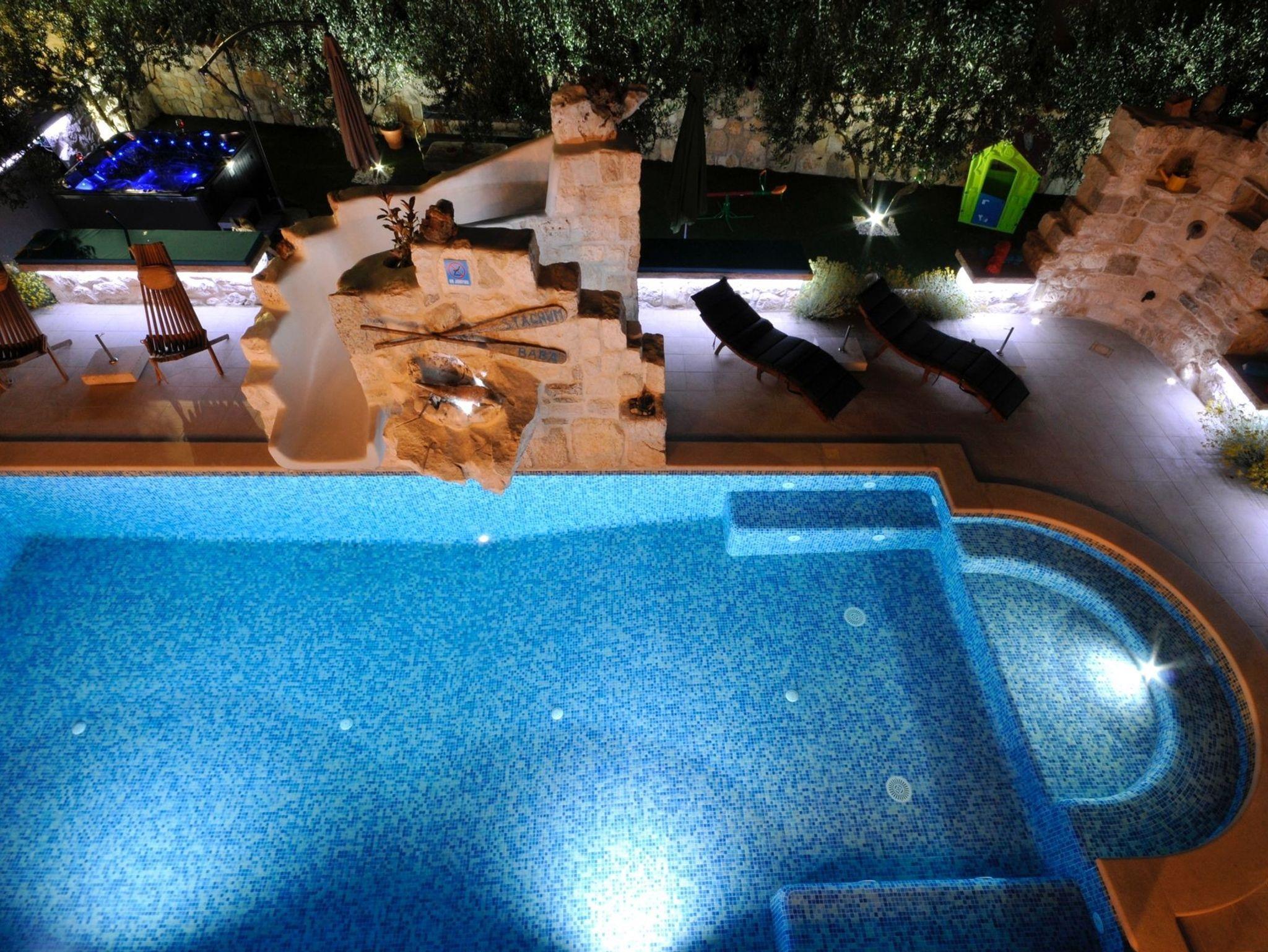 Umgebung des Objekts (Eingerichtet), Hof (300m2, Kinderbereich, Sitzbereich), Parkplatz (Anzahl der Parkplätze: 5, Entfernung vom Objekt: im Hof), Pool: privat, Dimensionen: 10.5m x 3.8m x 1.45m, Wassertyp: Salzwasser, Heizung: Ja, WiFi Internet, Fahrrad (Anzahl: 8), Föhn, Bügeleisen, Bügelbrett, Kinderbett