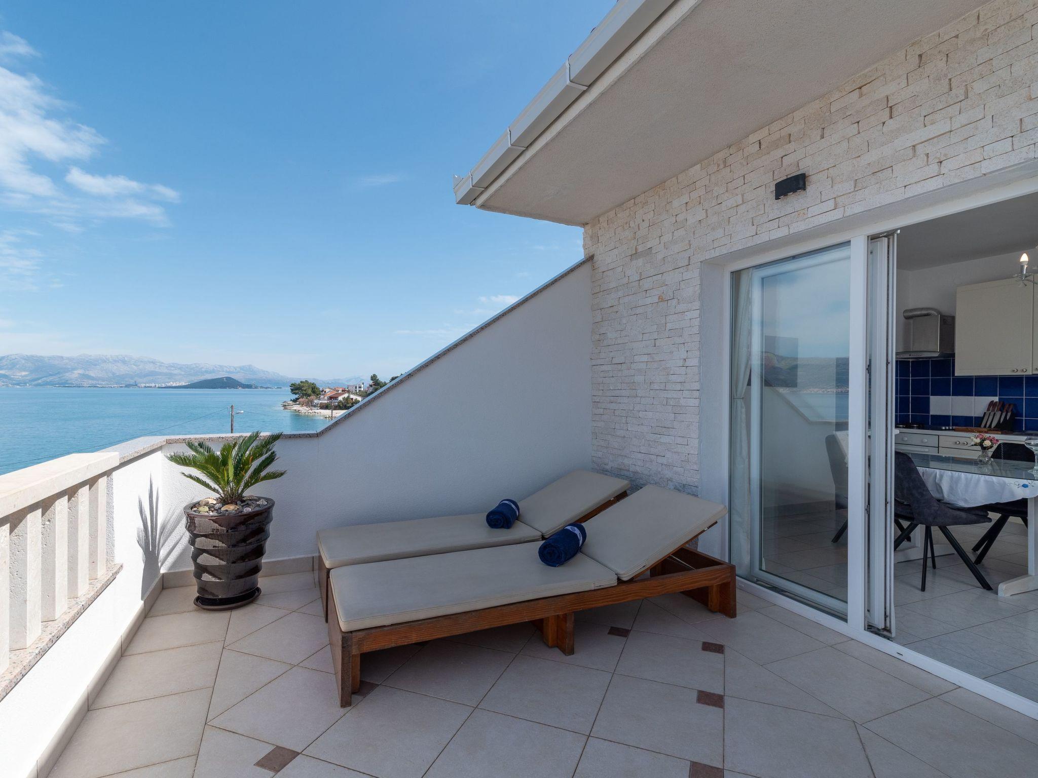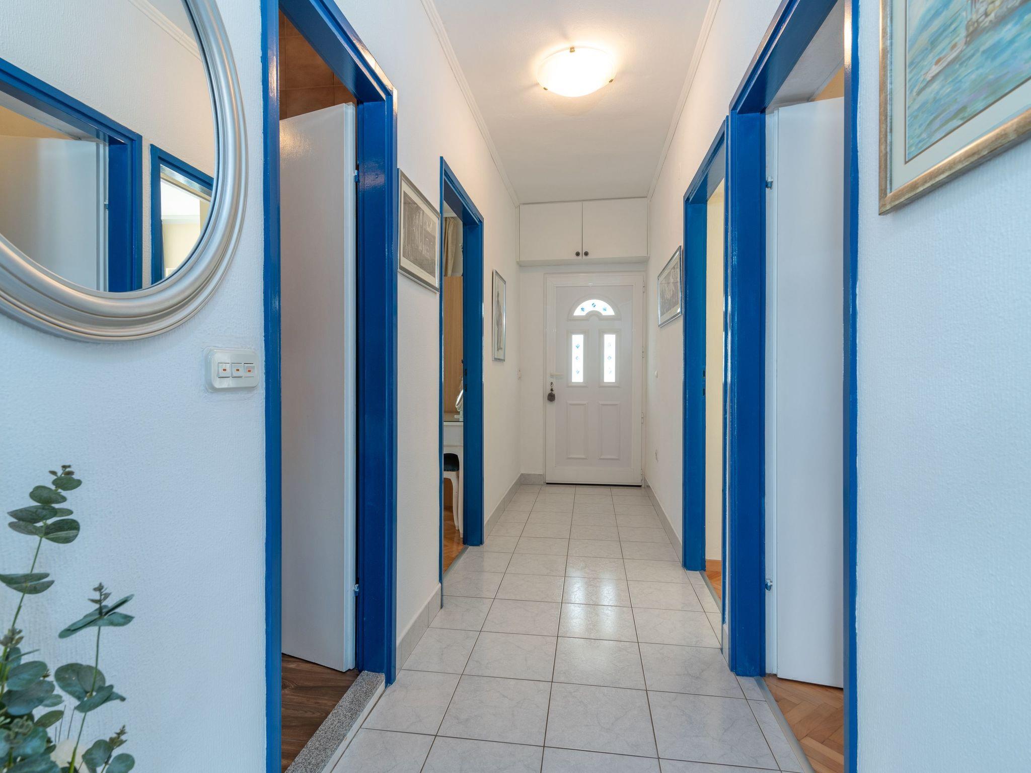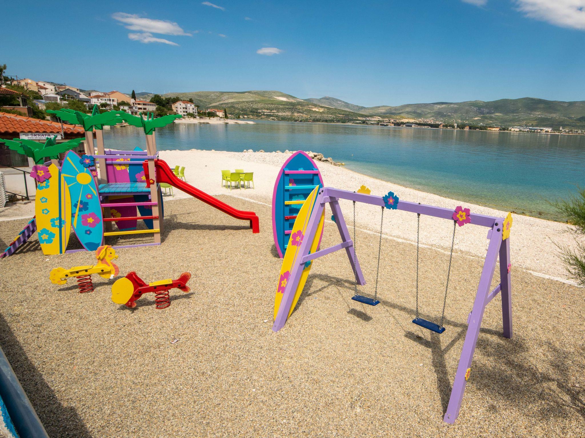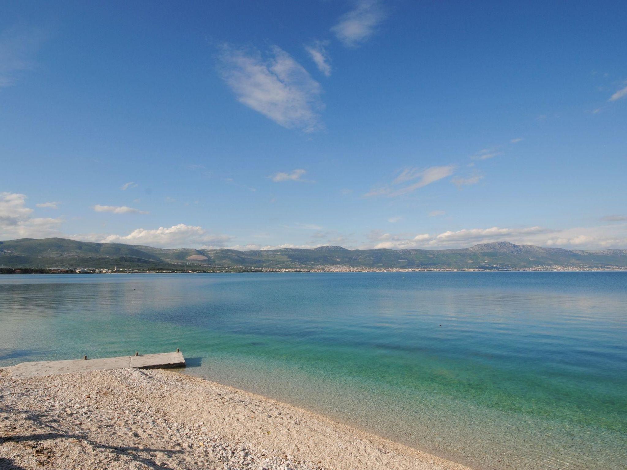 Das Stadtzentrum von Trogir ist 4km entgernt und der nächste Flughafen Split-Resnik ca. 12km entfernt. Die Wohnung befindet sich südwestlich von Trogir und Mastrinka auf Ciovo und nordöstlich von Slatine. Die Arbanija Region ist bekannt für ihre schönen Strände, die waldbedeckten Küsten und viele kleine Buchten. Die nächste Autobahnauffahrt (Prgomet) liegt 25km entfernt.